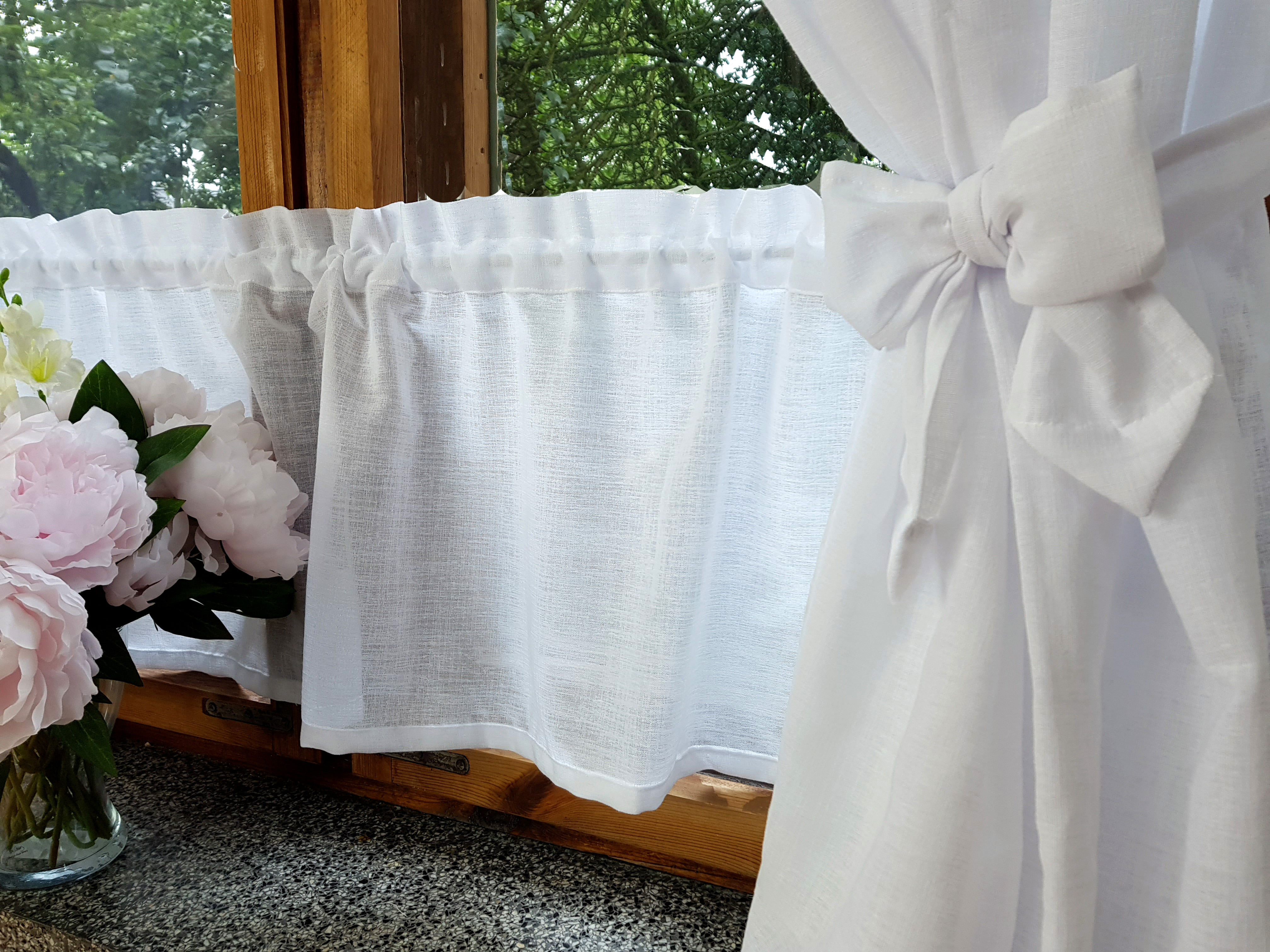 Szerokośc zazdrostki podana na prosto przed zmarszczeniem. Na marszczenie dodajesz od 50% do 100% szerokości okna/patyczka (przykład; okno ma 50cm szerokości - zamawiasz od 70cm do 100cm zazdrostki).