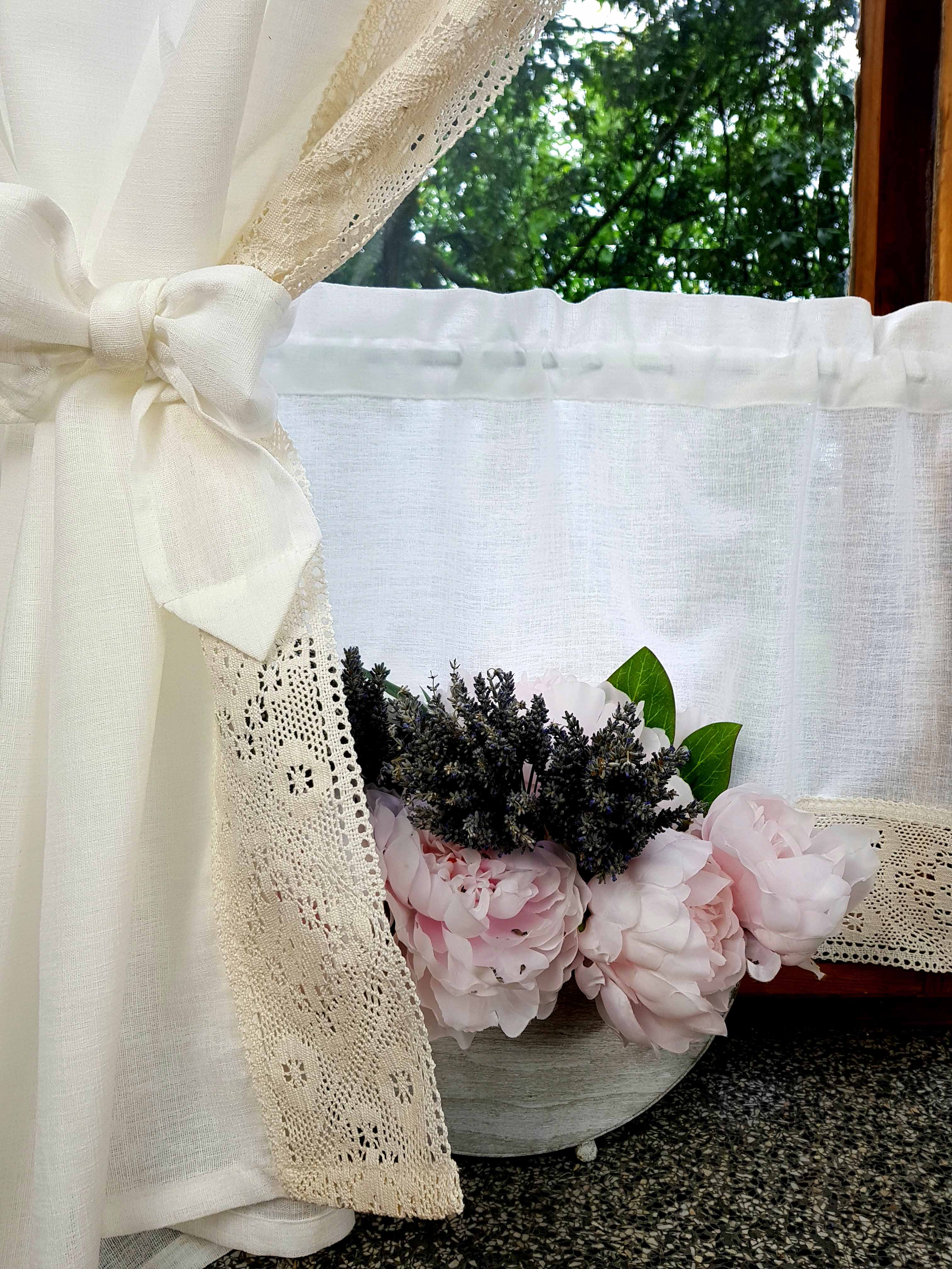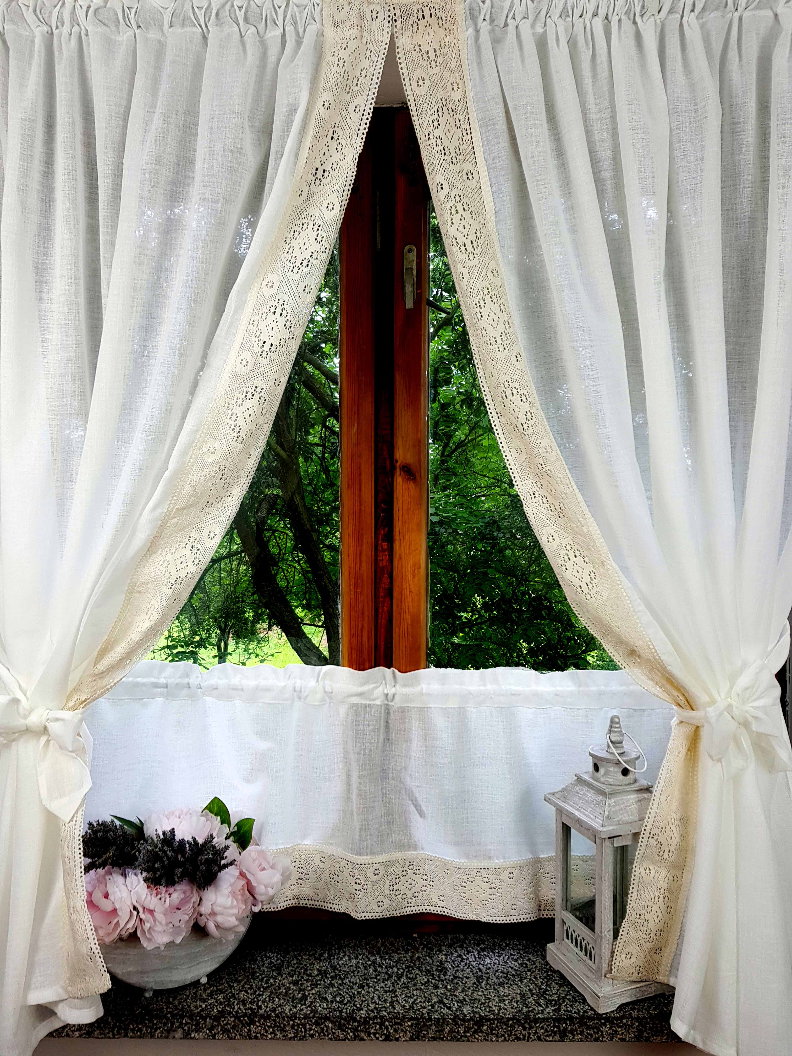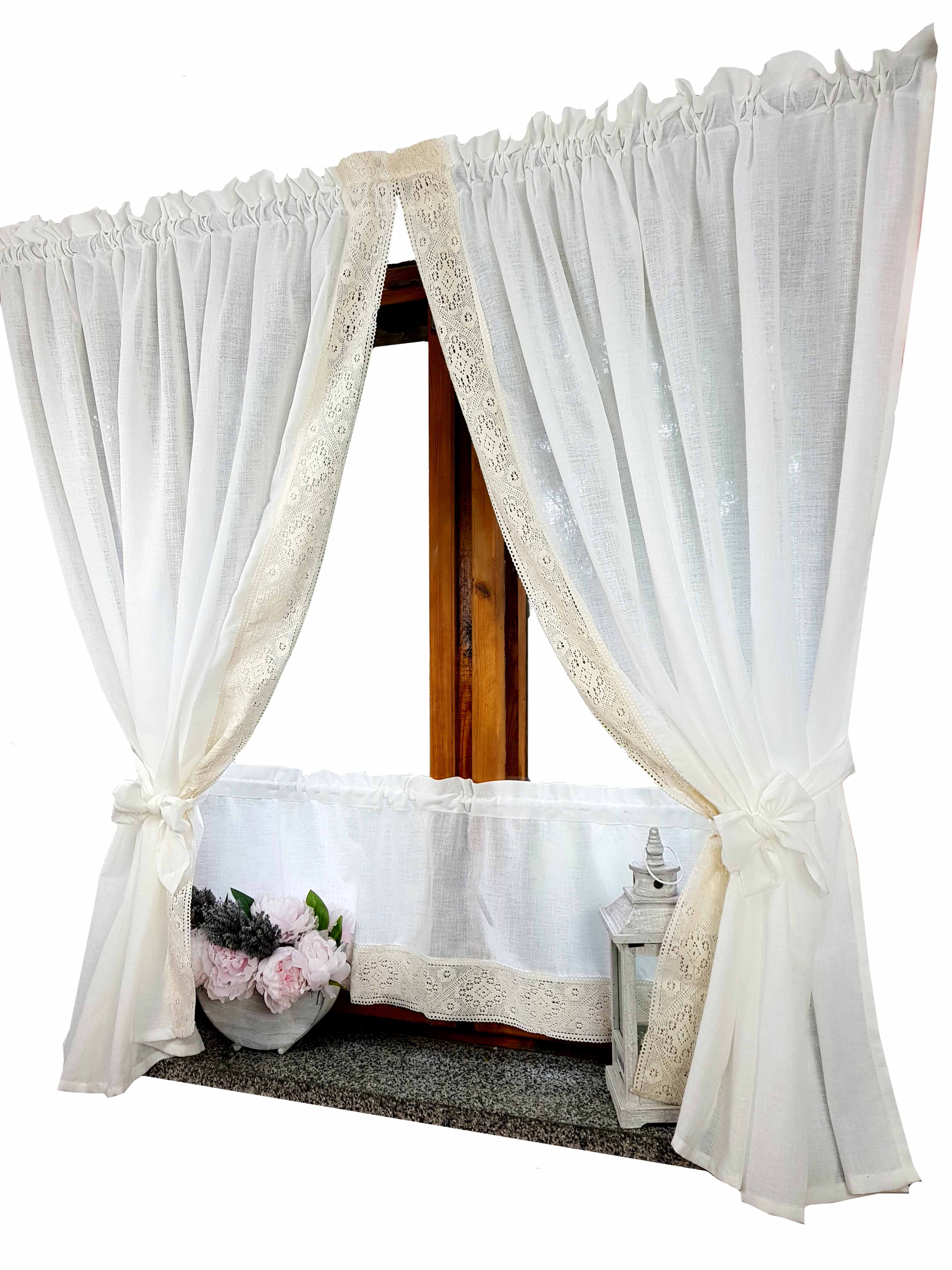 Zestaw zasłon+zazdrostka kremowa koronka len shabby