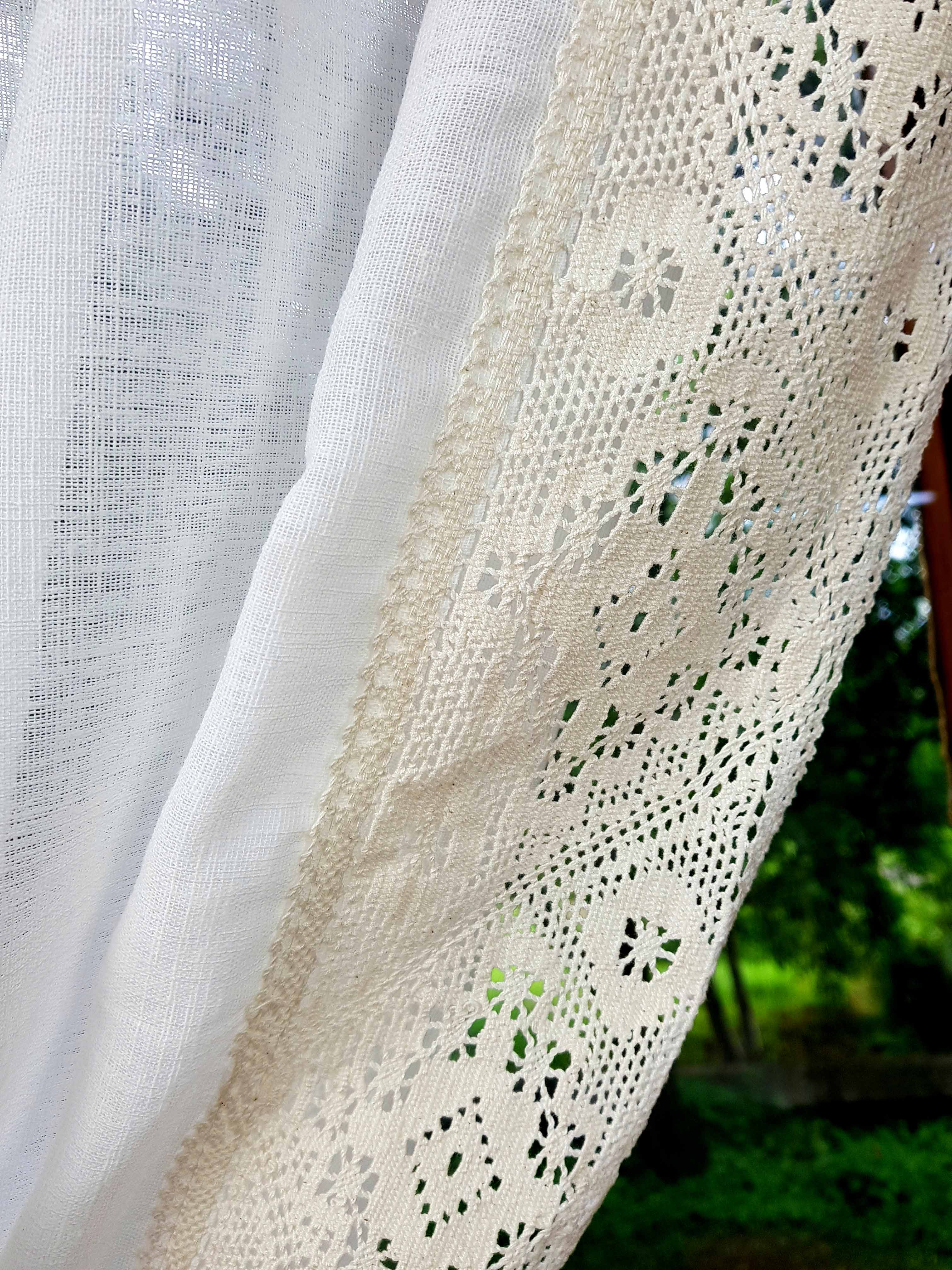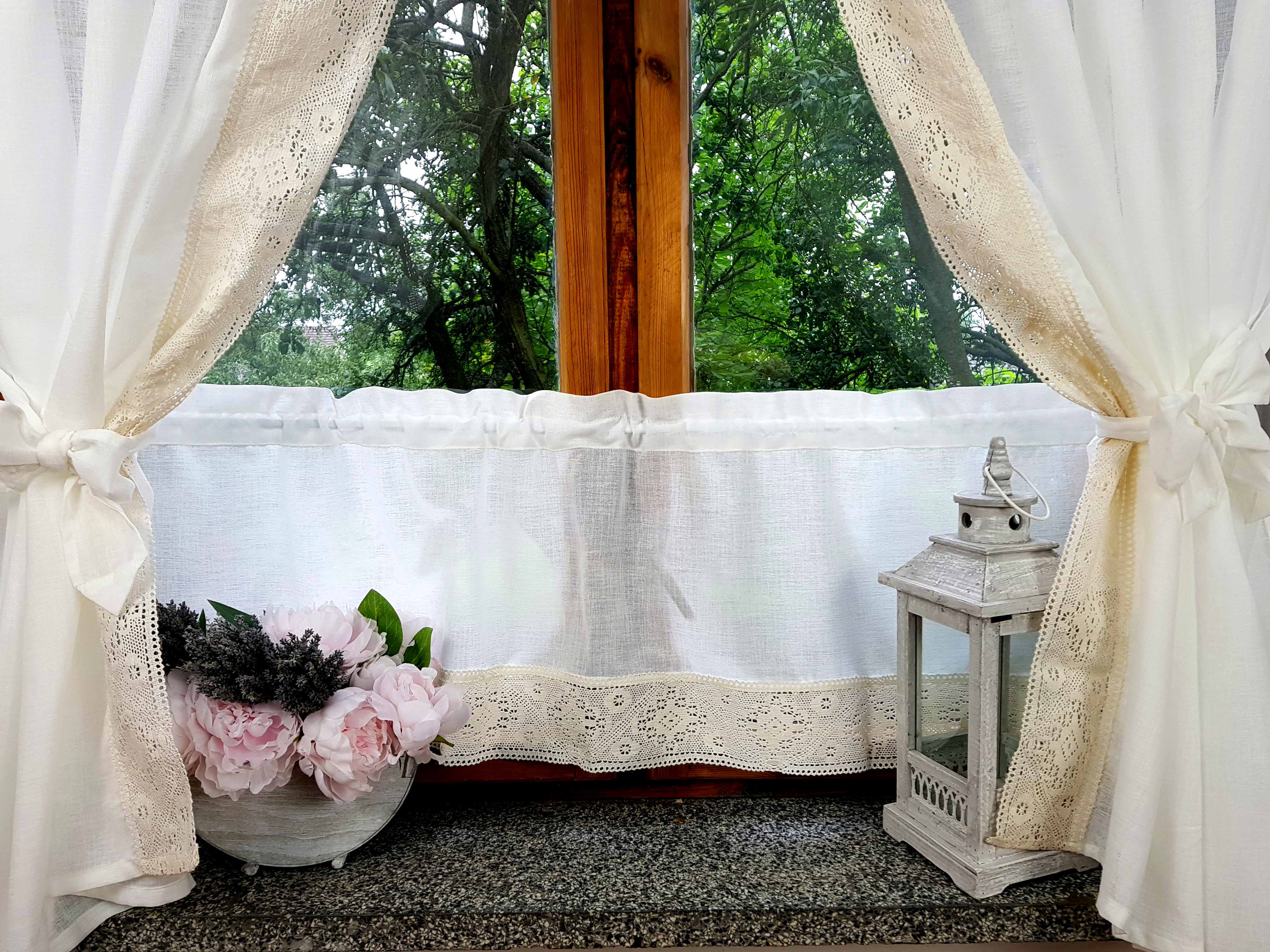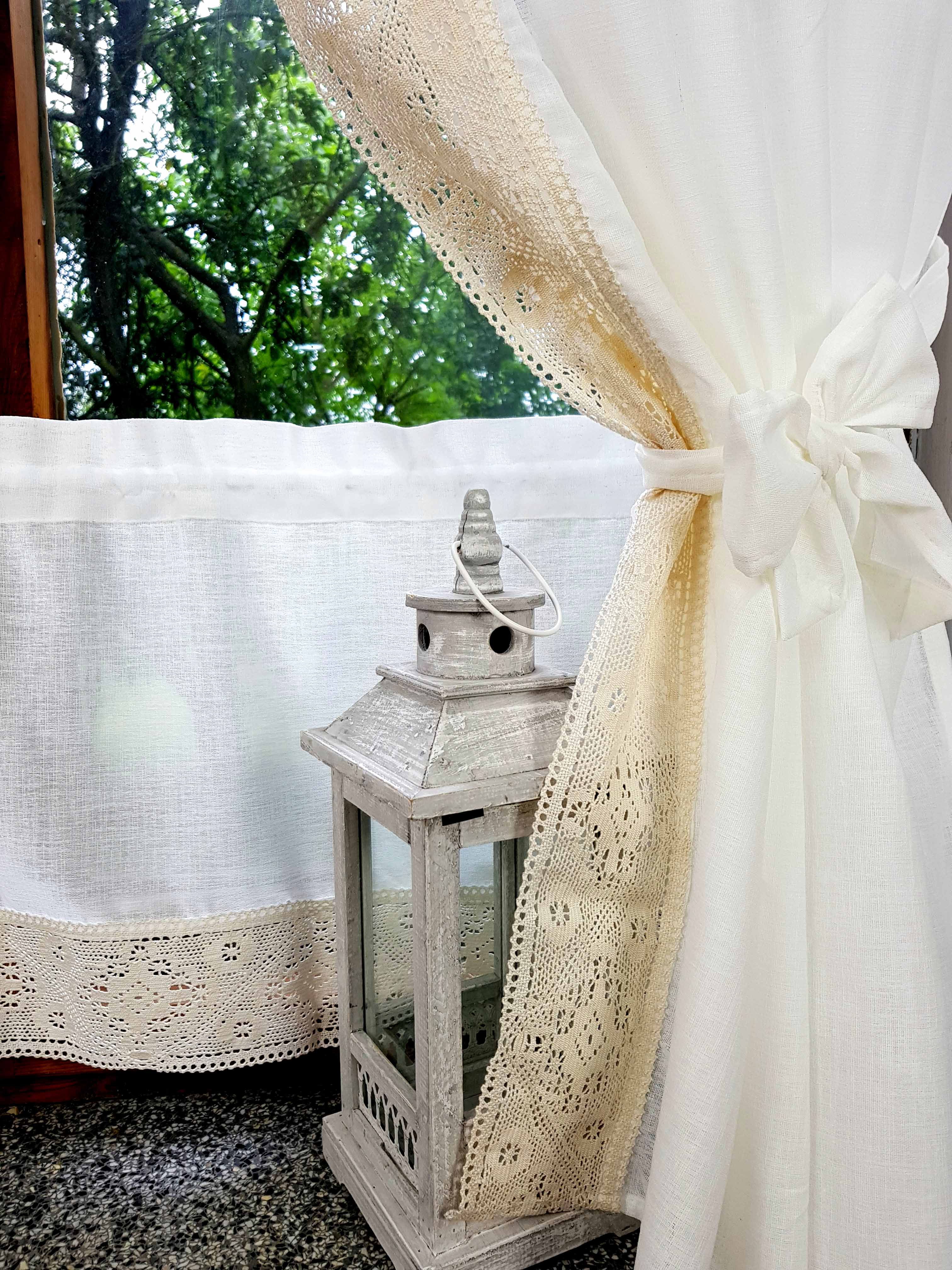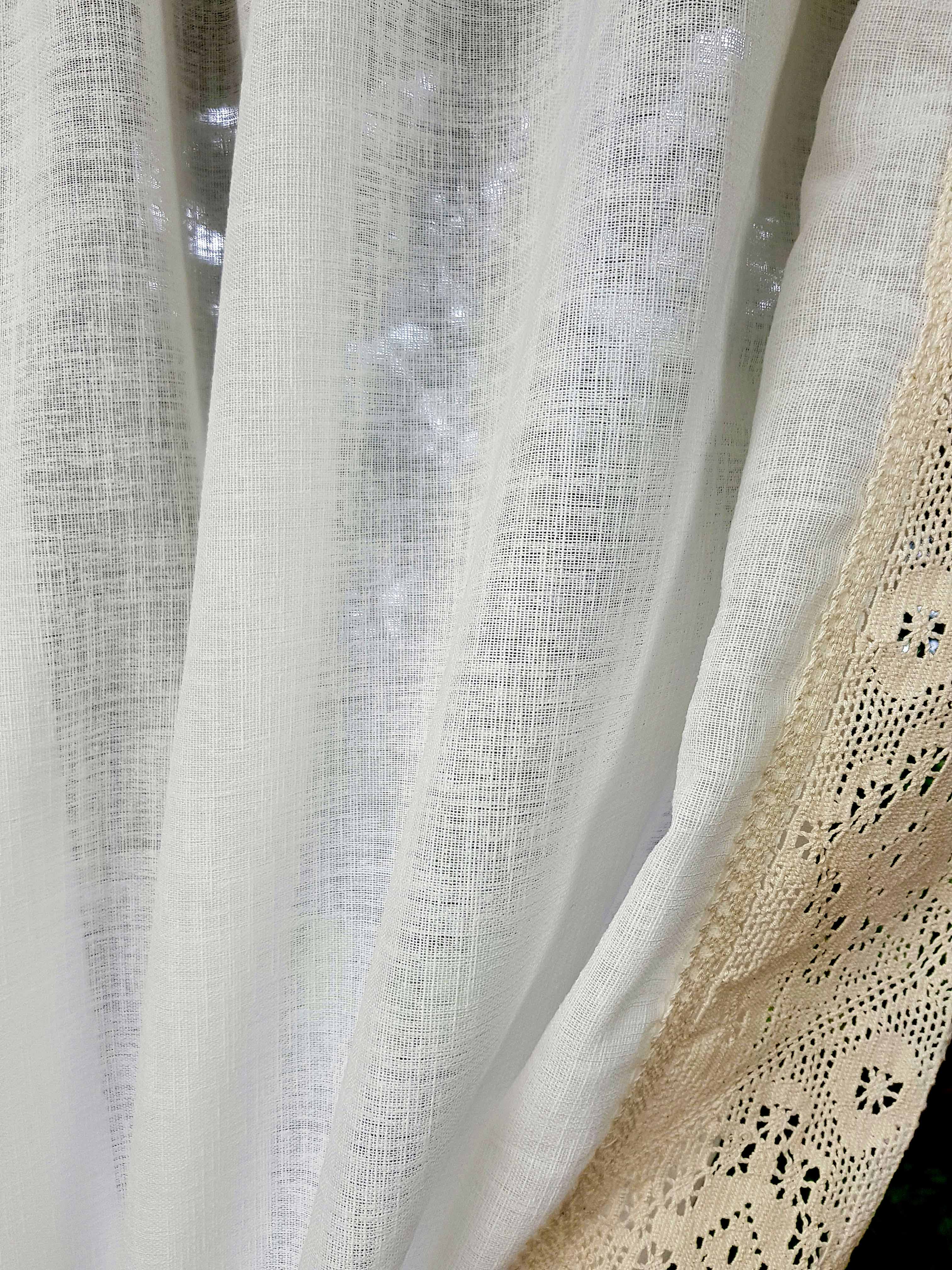 Zestaw zasłon+zazdrostka kremowa koronka len shabby