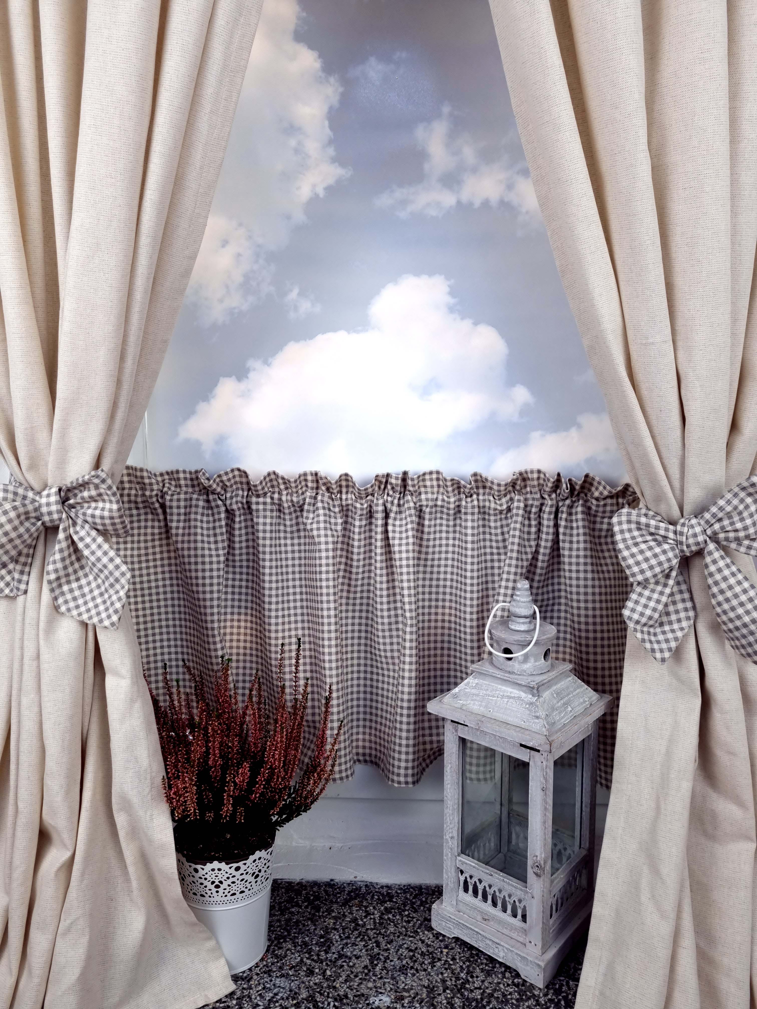 Zakostyl zasłony krem + zazdrostka vintage krata