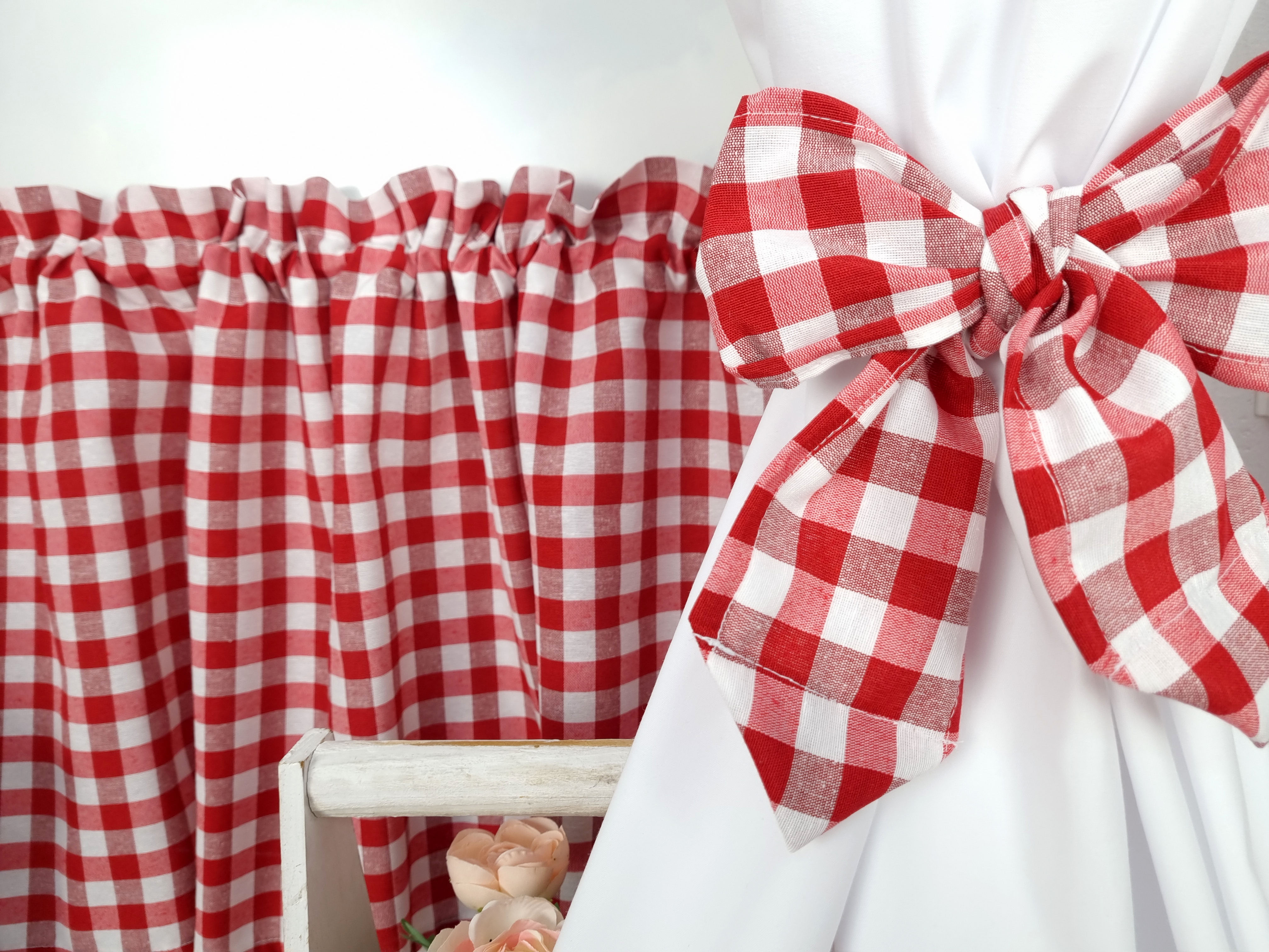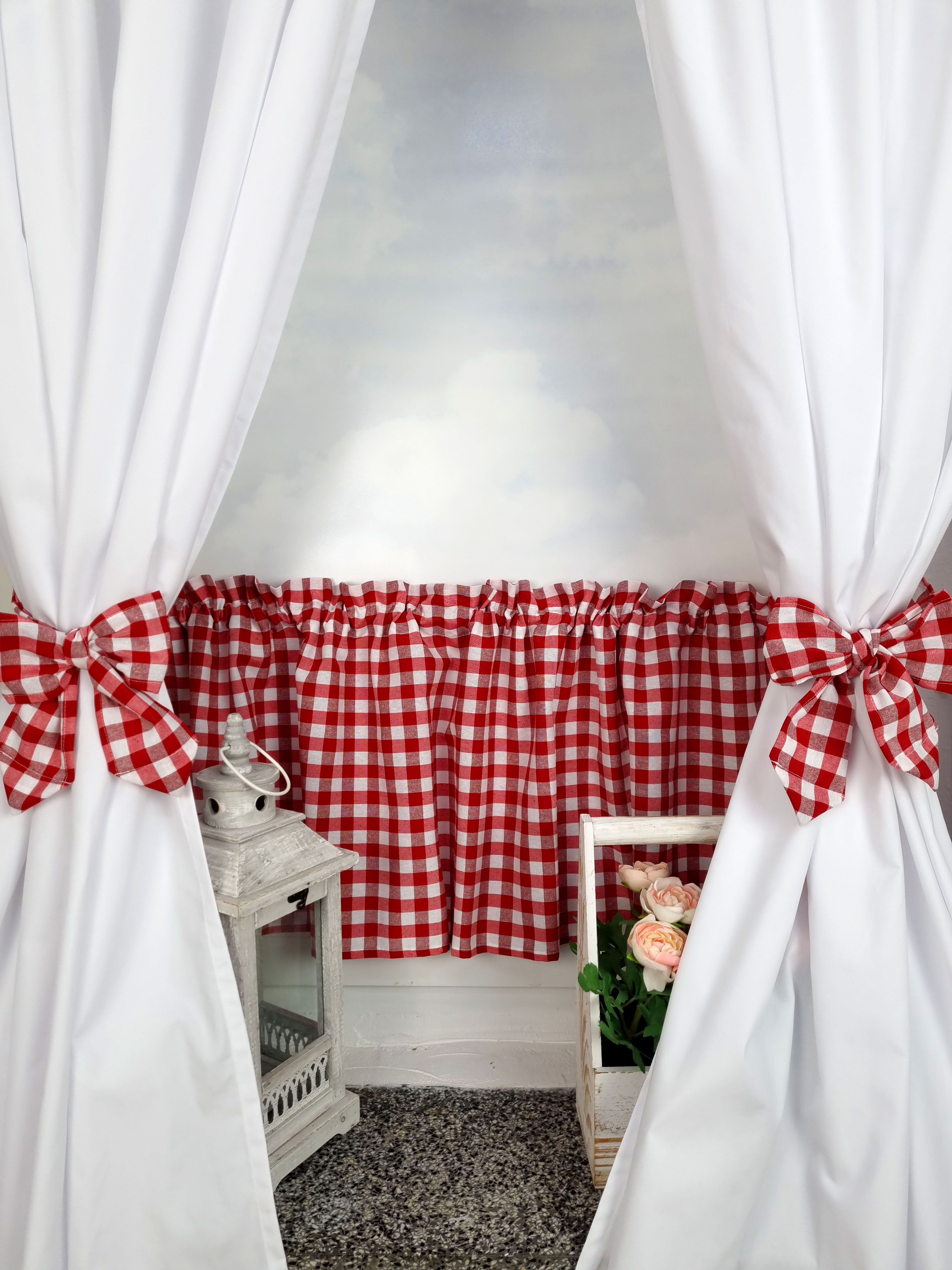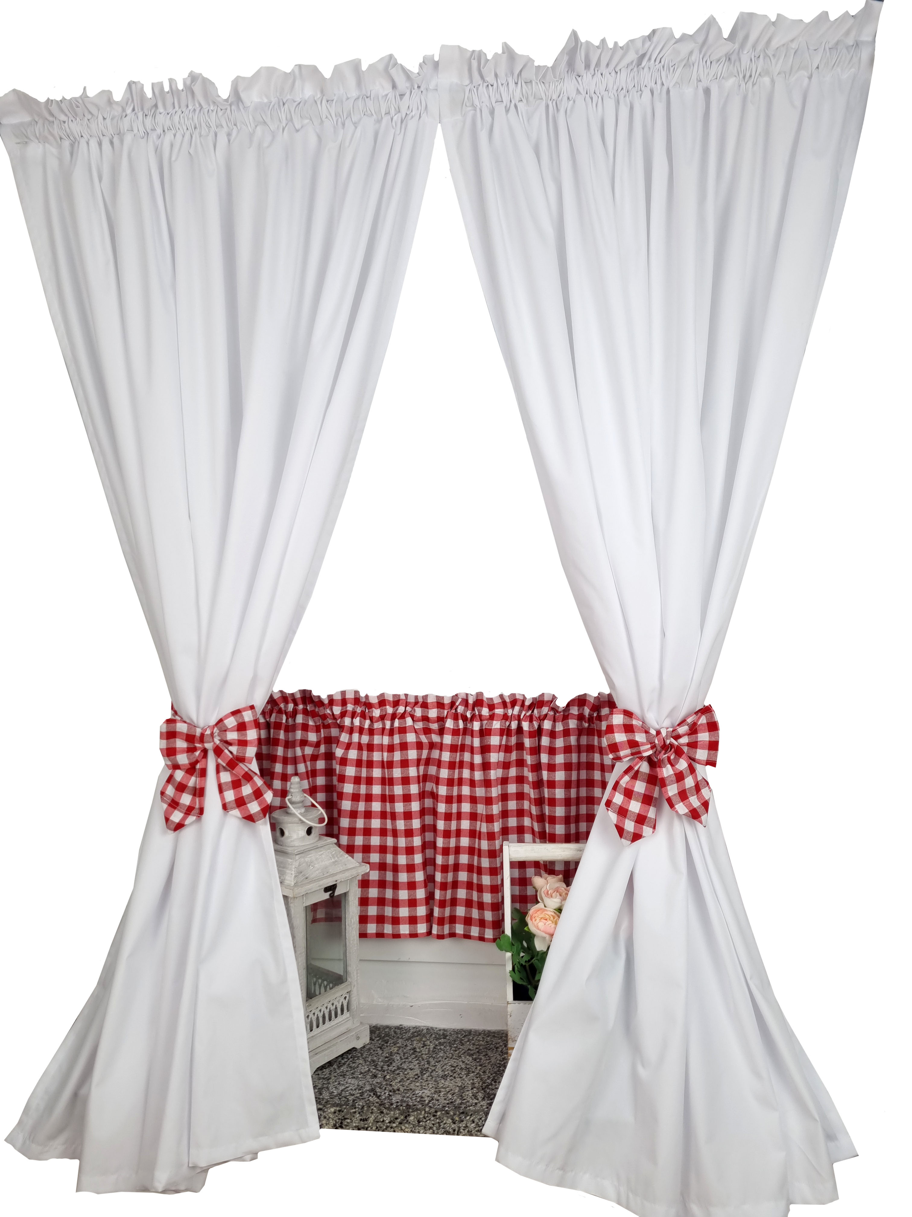 Zakostyl zasłony + zazdrostka krata czerwona z białym
