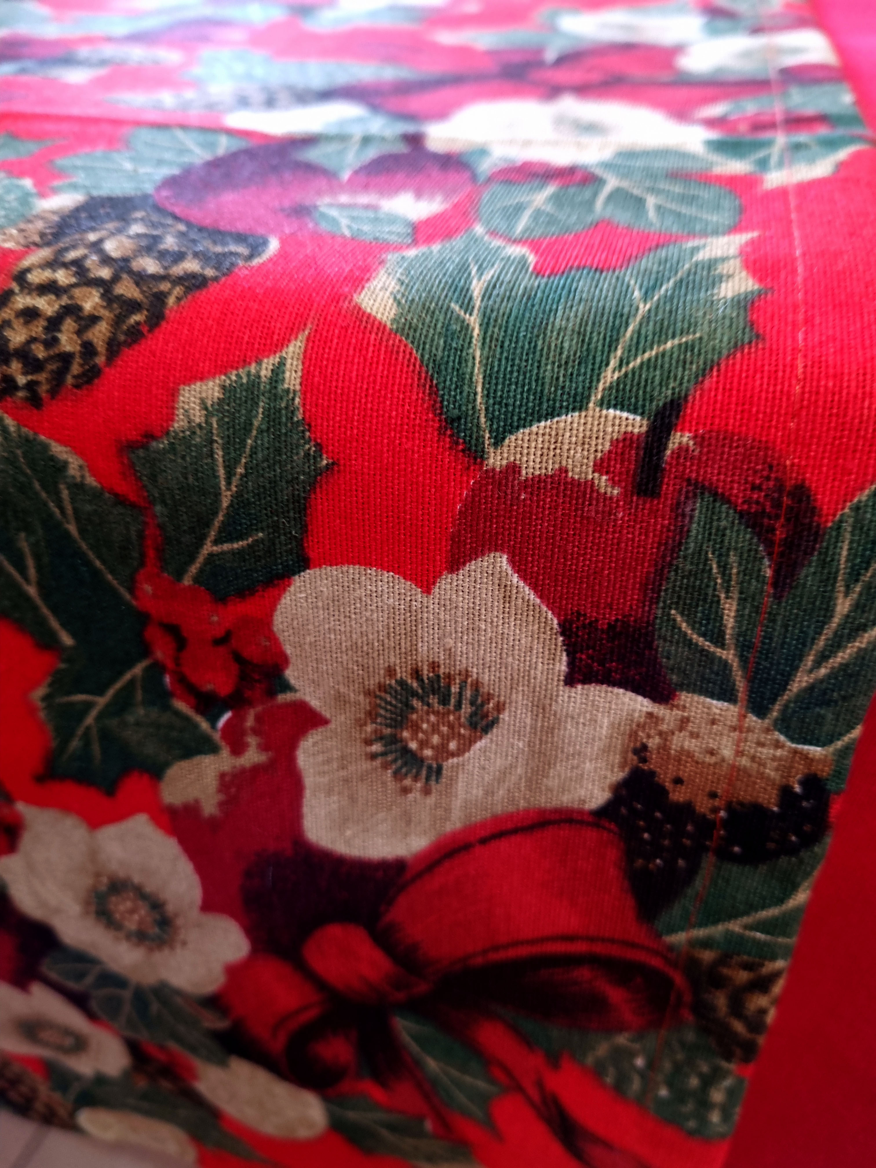 Jest wykonana z tkaniny wysokiej jakości. Do obrusu można dobrać wzorzysty bieżnik lub podkładki pod talerze.