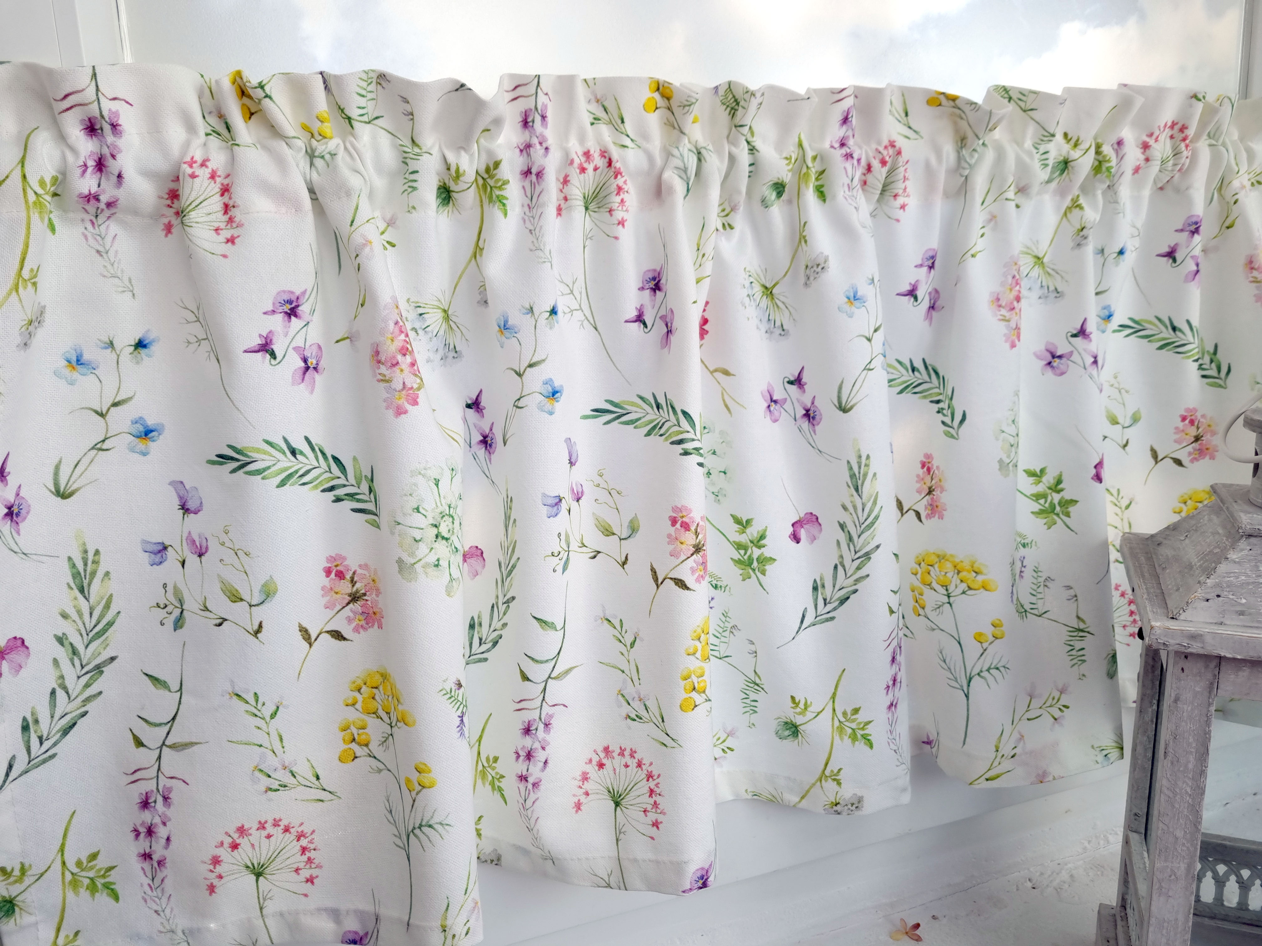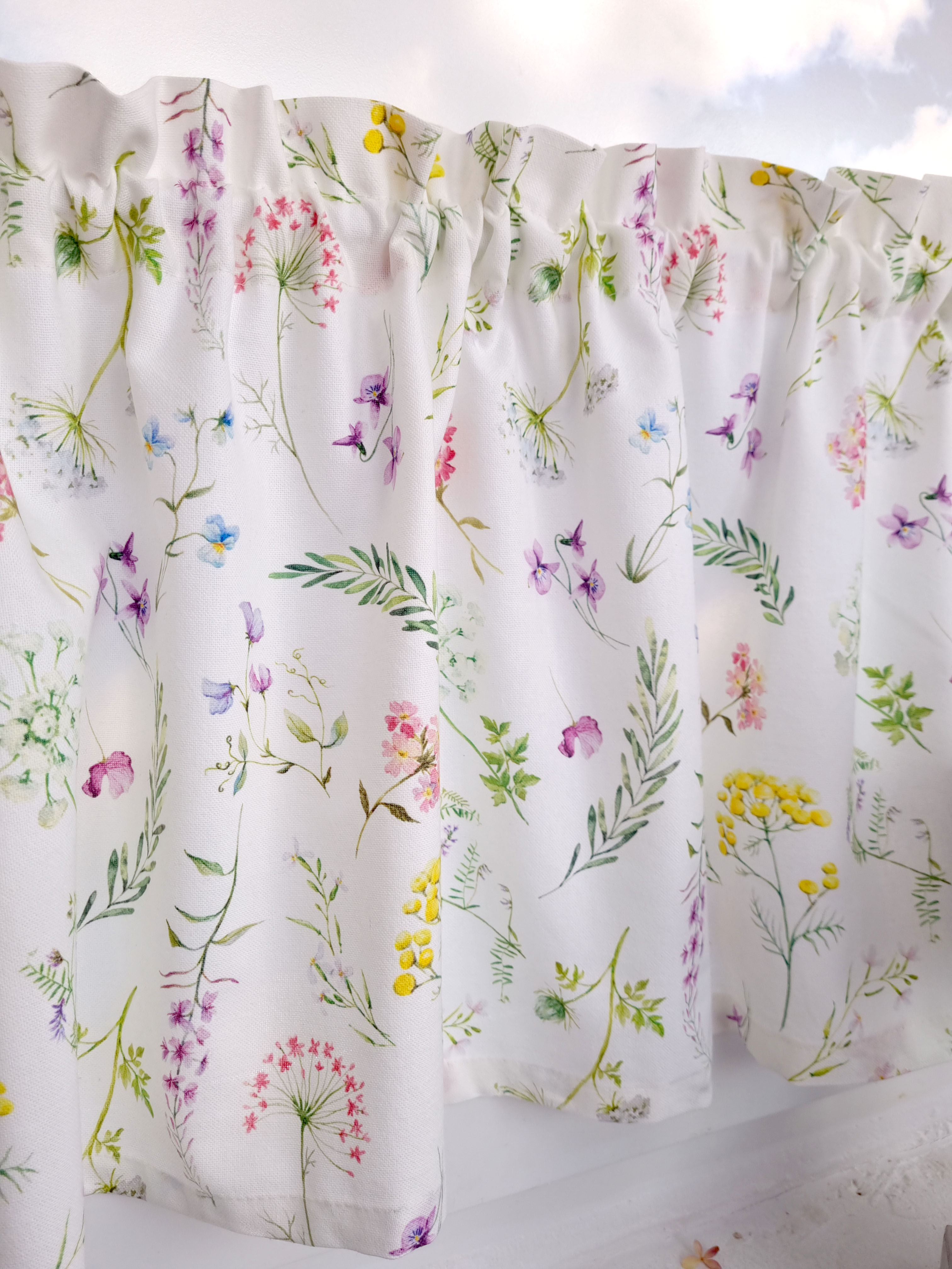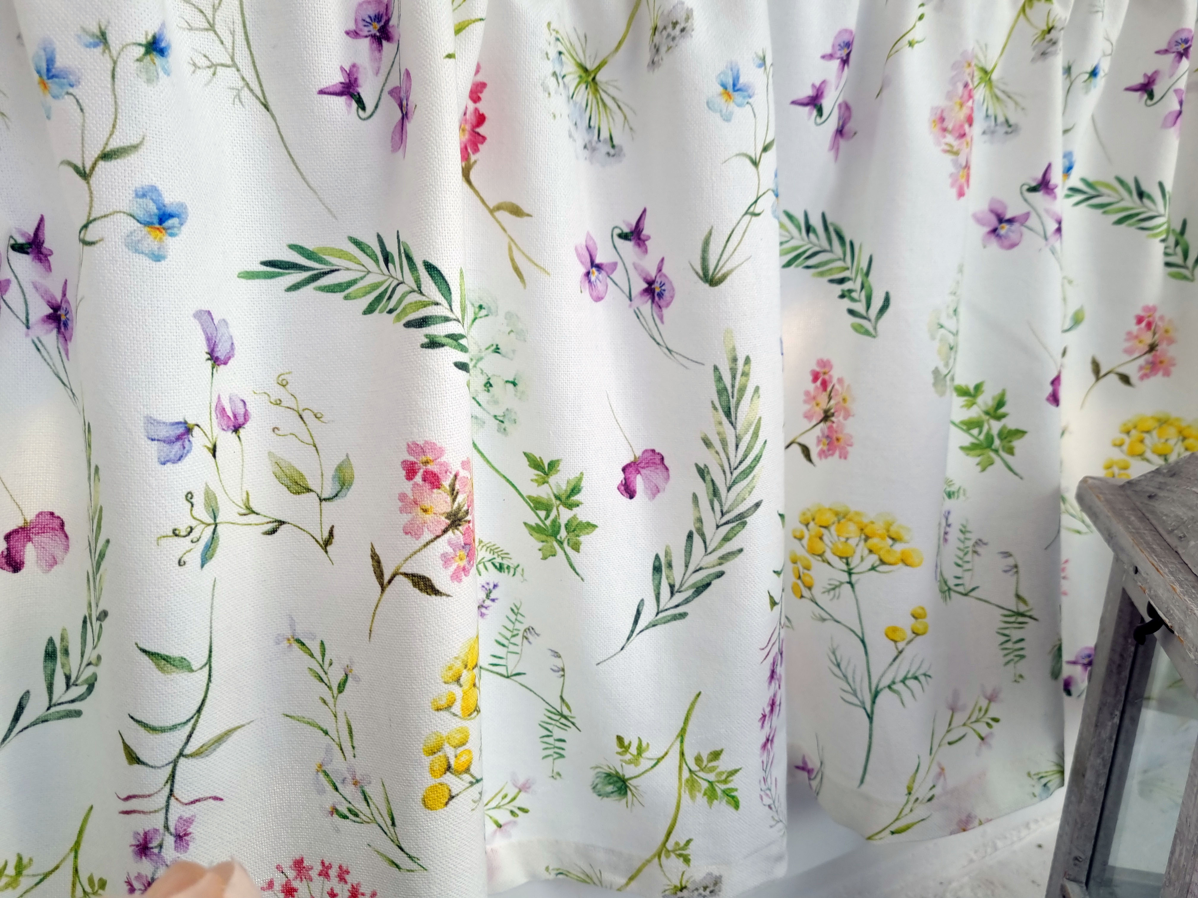 Zapraszam do zakupu zazdrostek pięknym wzorze wiosennych kwiatuszków na białym tle. Szyte z tunelem na patyczek. Bardzo wdzięczny wzór prowansalski. Wzór zazdrostki jednostronny.