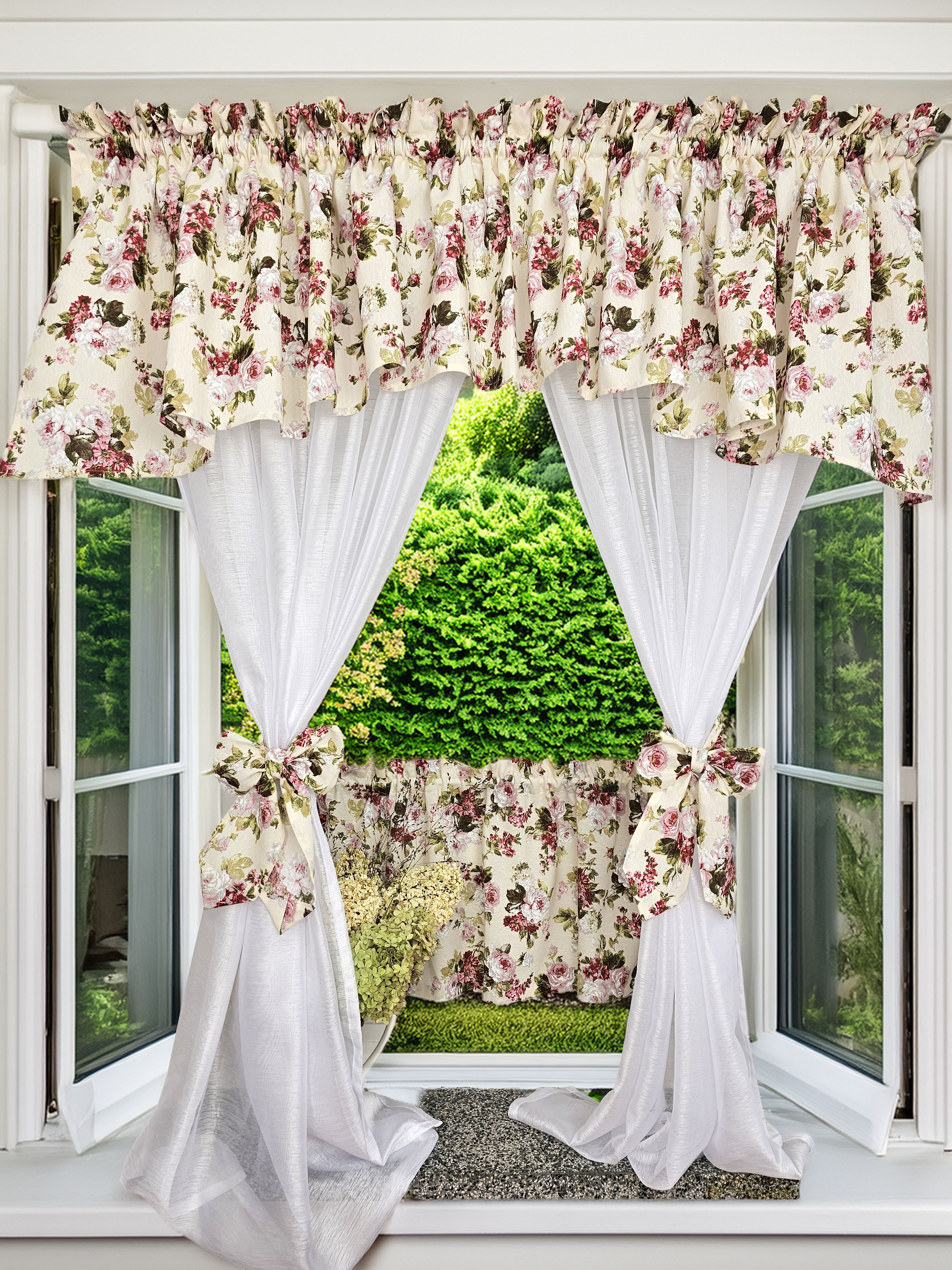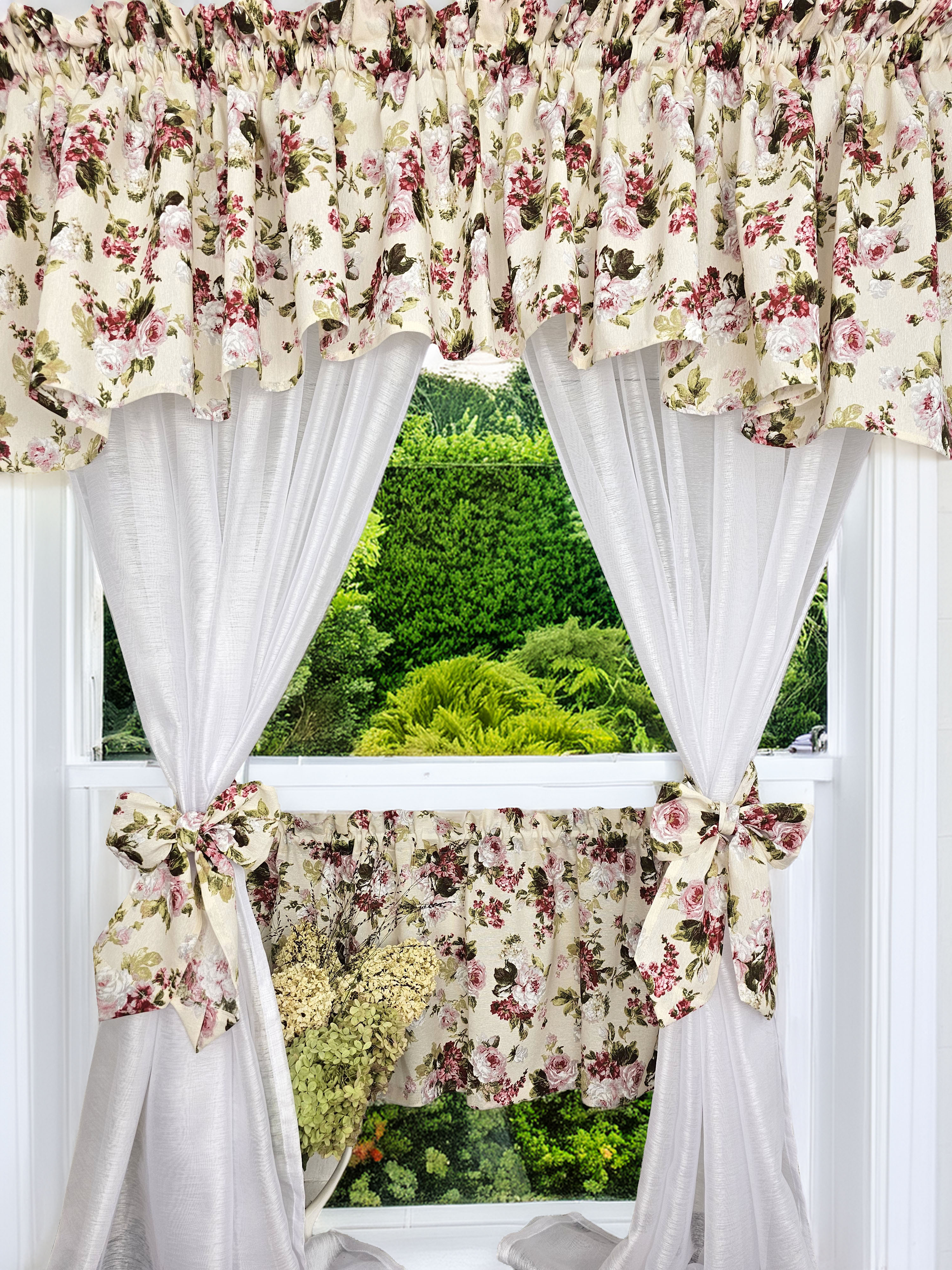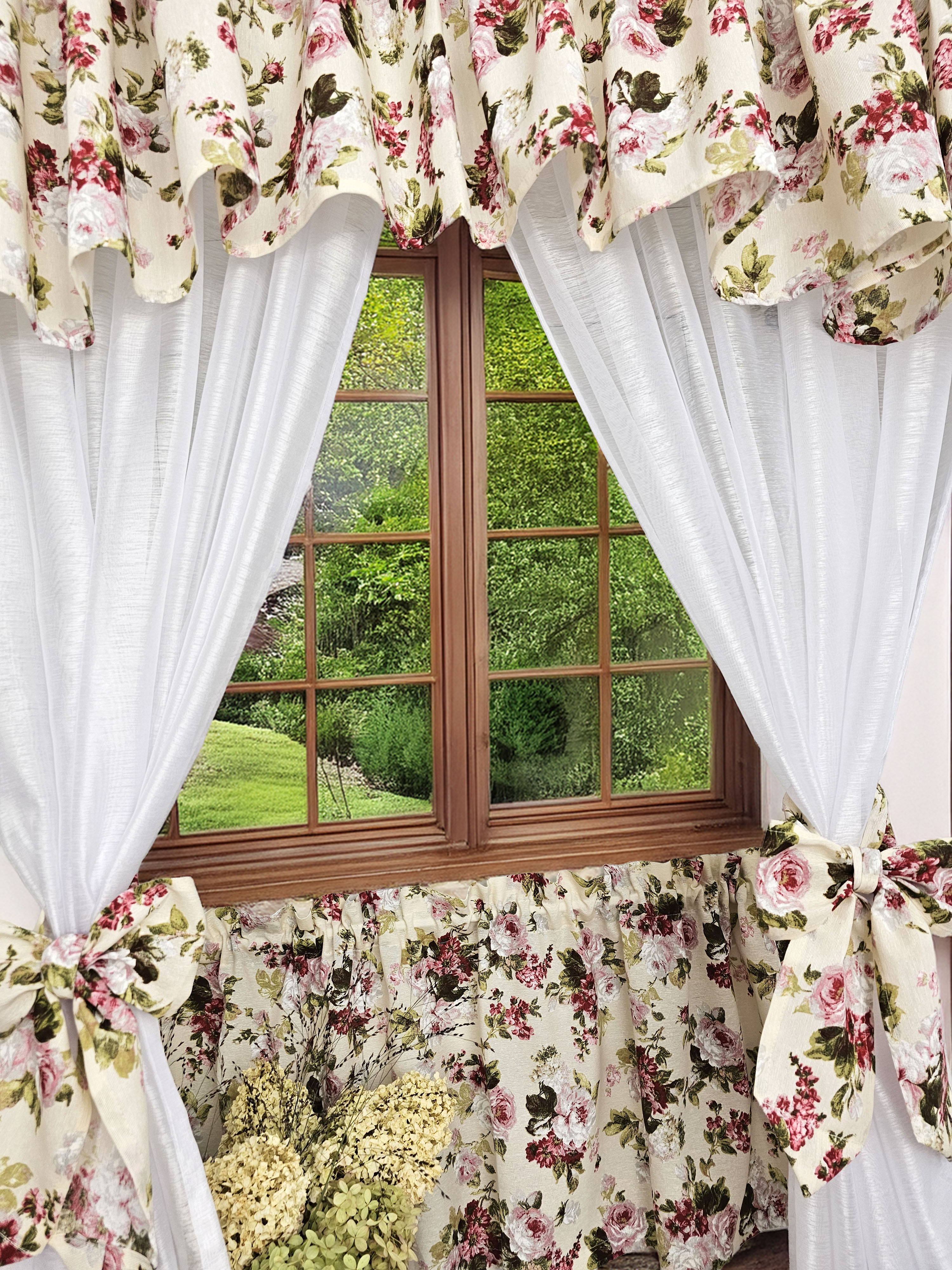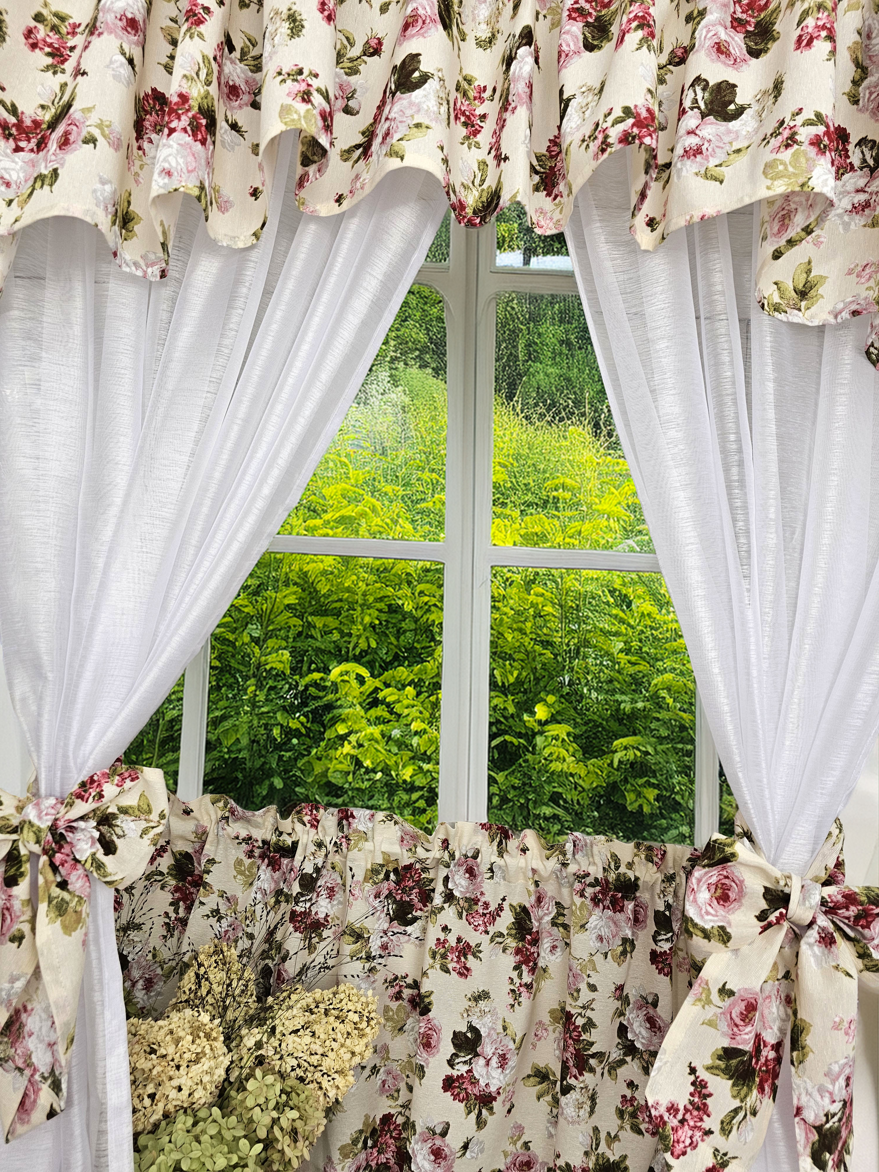 Zapraszam Państwa do zakupu kompletu dwóch firan na boki , wiązań i lambrekinu plus zazdrostka. Komplet z firankami jest bardzo praktyczny i oszczędny gdyż przy chęci zmiany dekoracji, wystarczy dokupić zazdrostkę i paski w innym wzorze... i gotowe. Wzór tkaniny jednostronny .