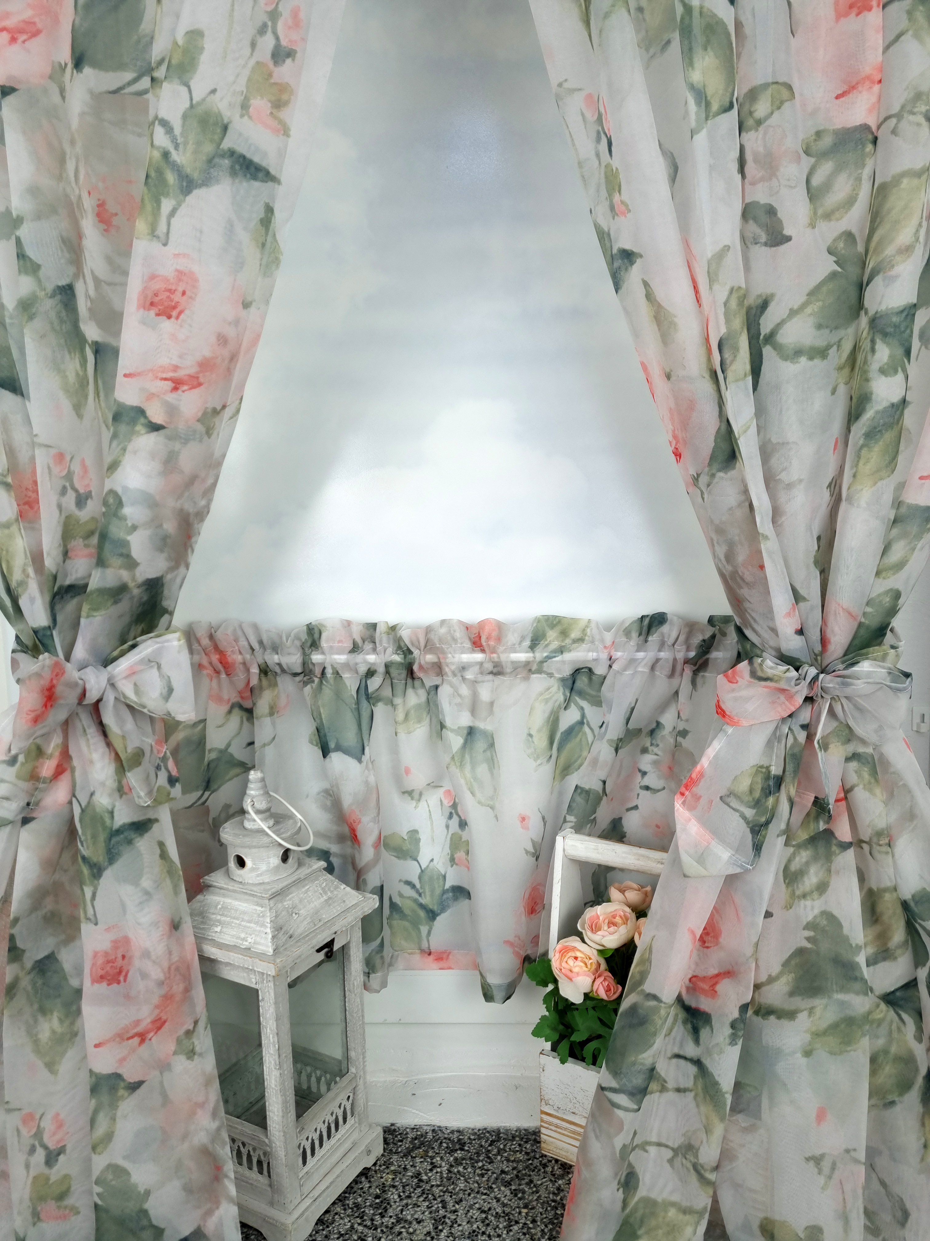 Zakostyl zasłony + zazdrostka jasny kwiat woal