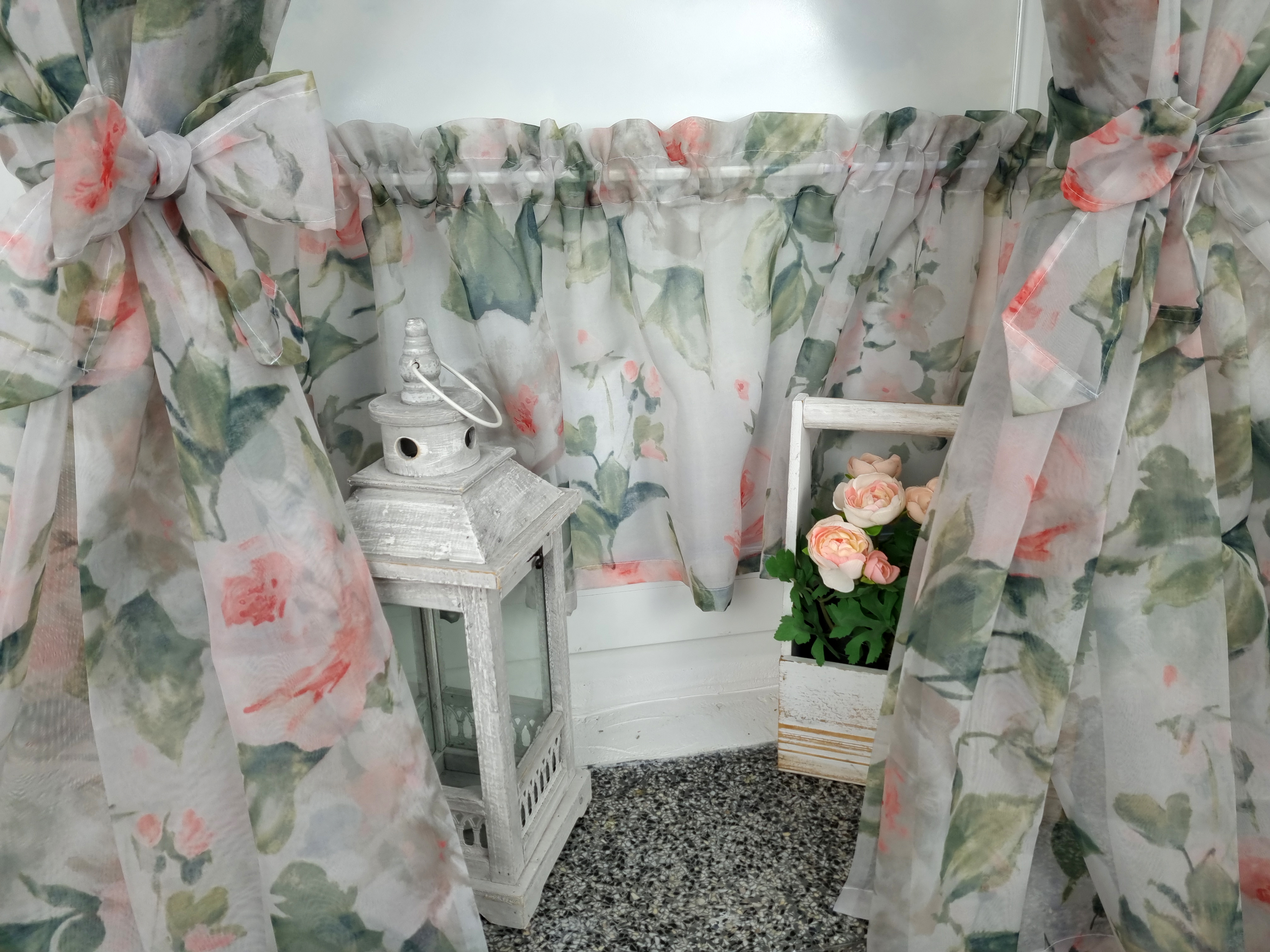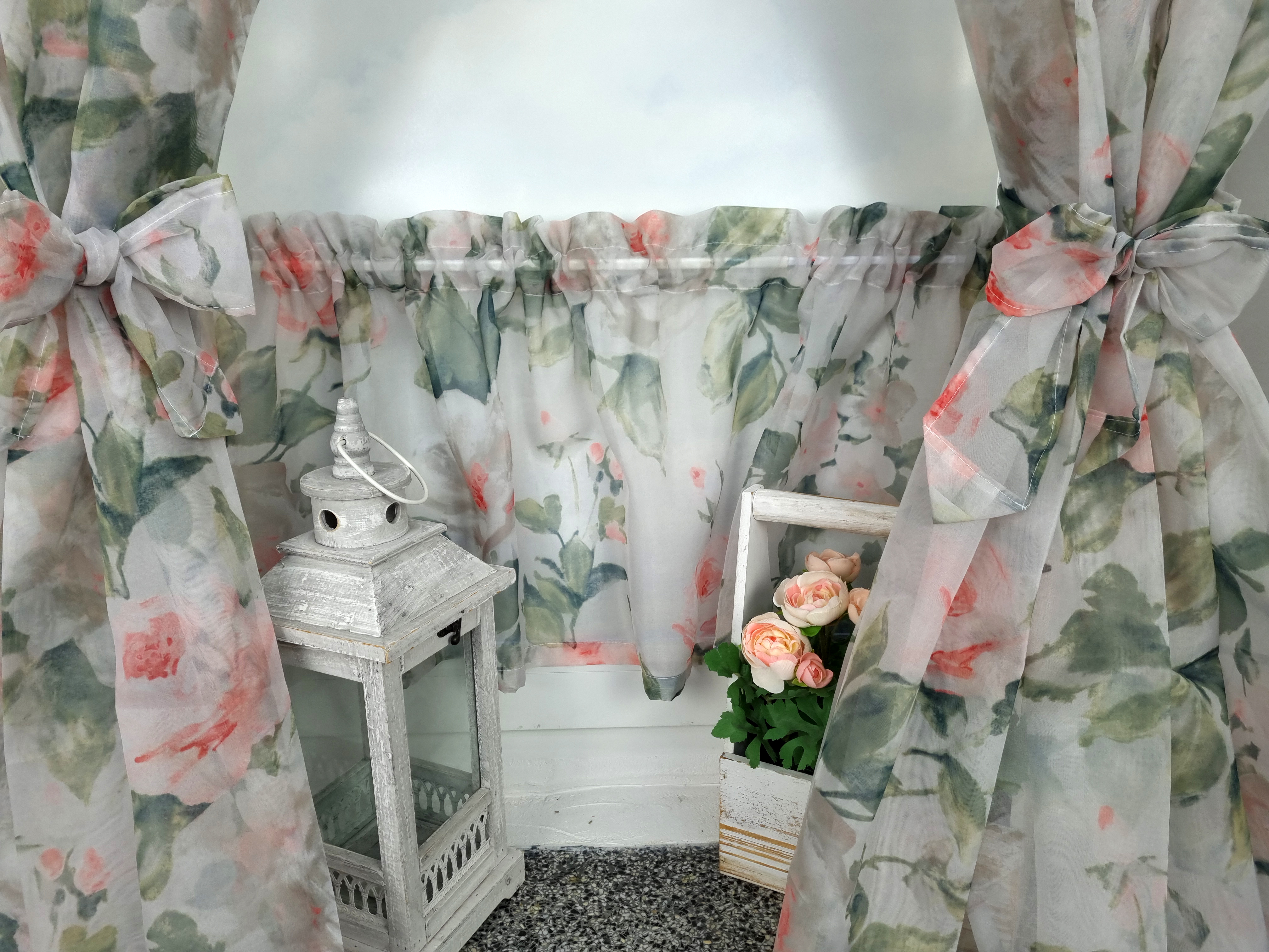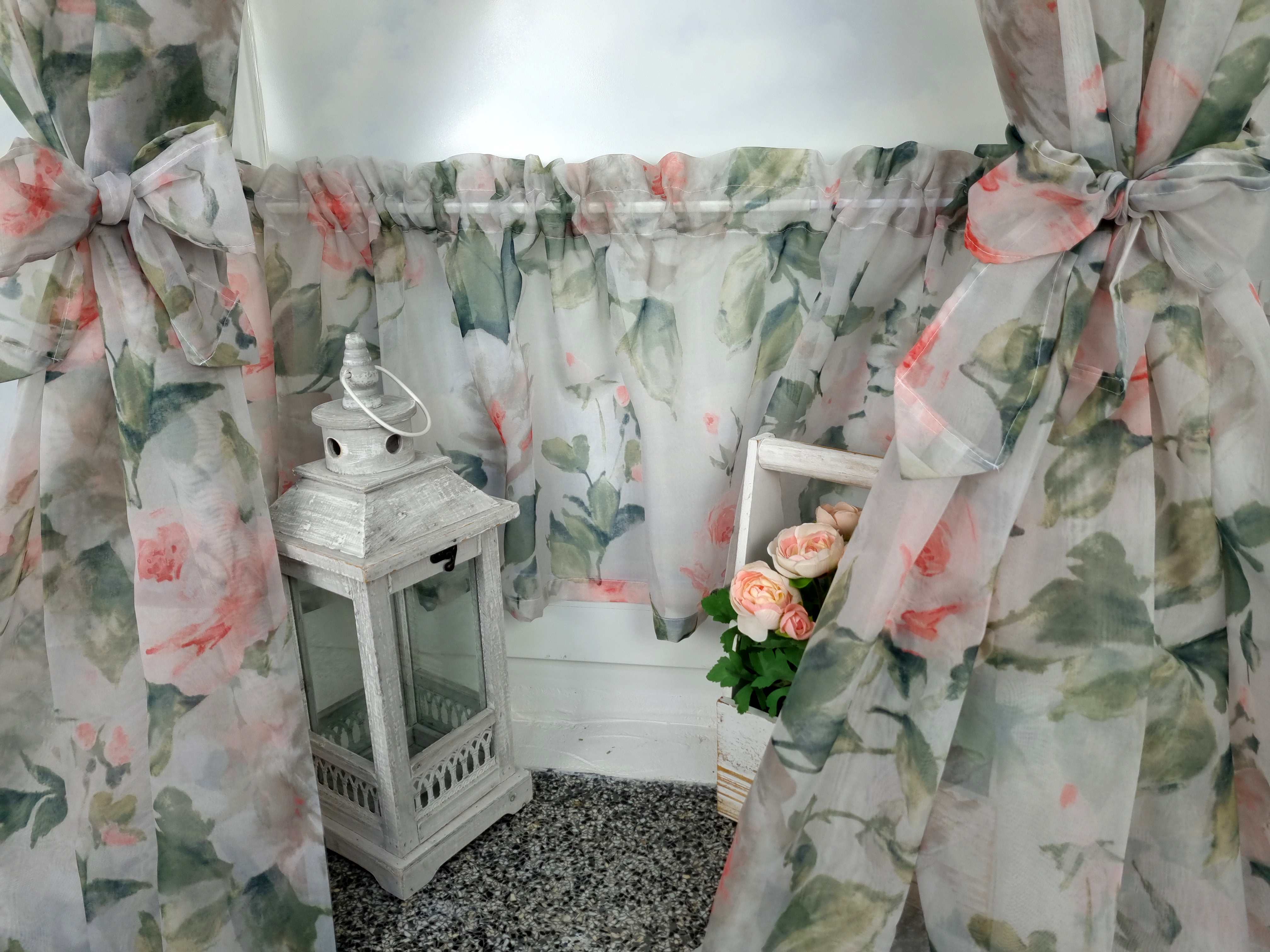 Zapraszam Państwa do zakupu kompletu do kuchni w pięknym wzorze . Jasny kwiat na woalu.