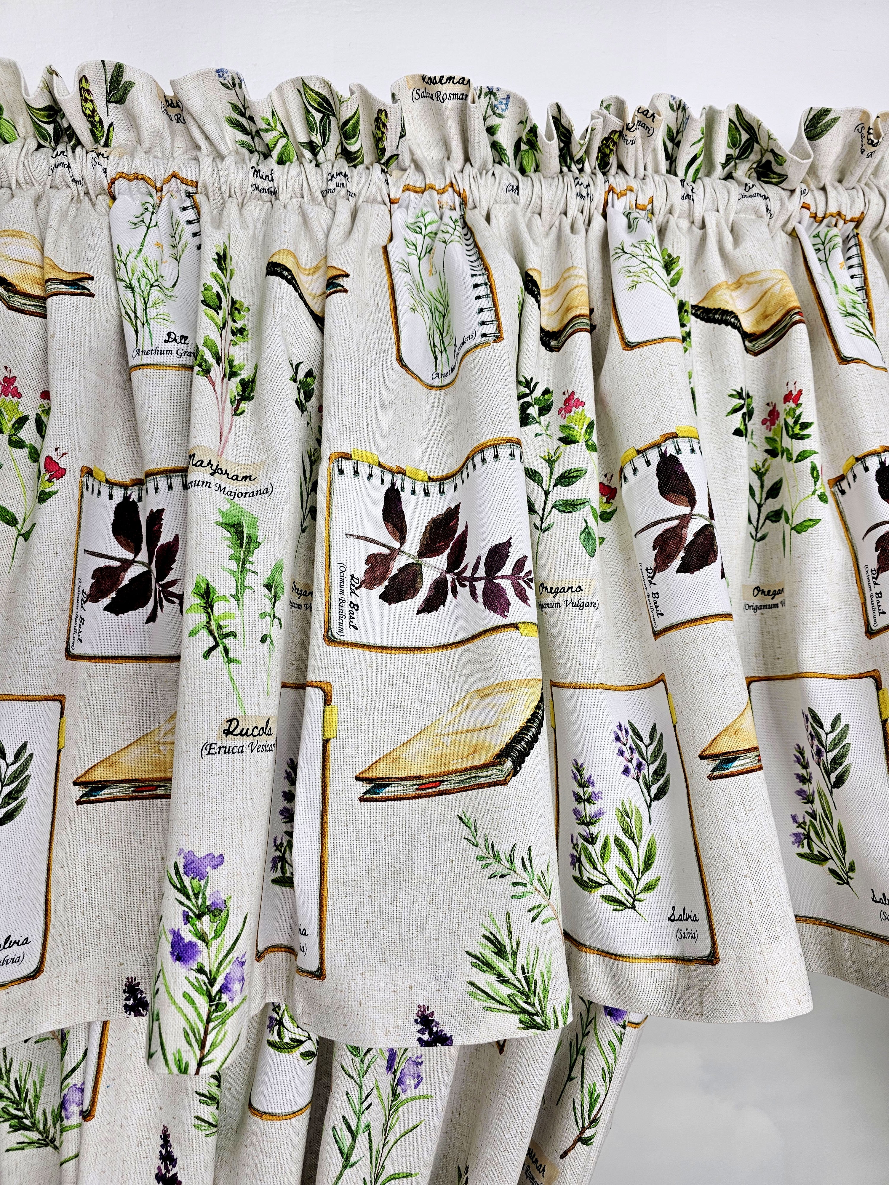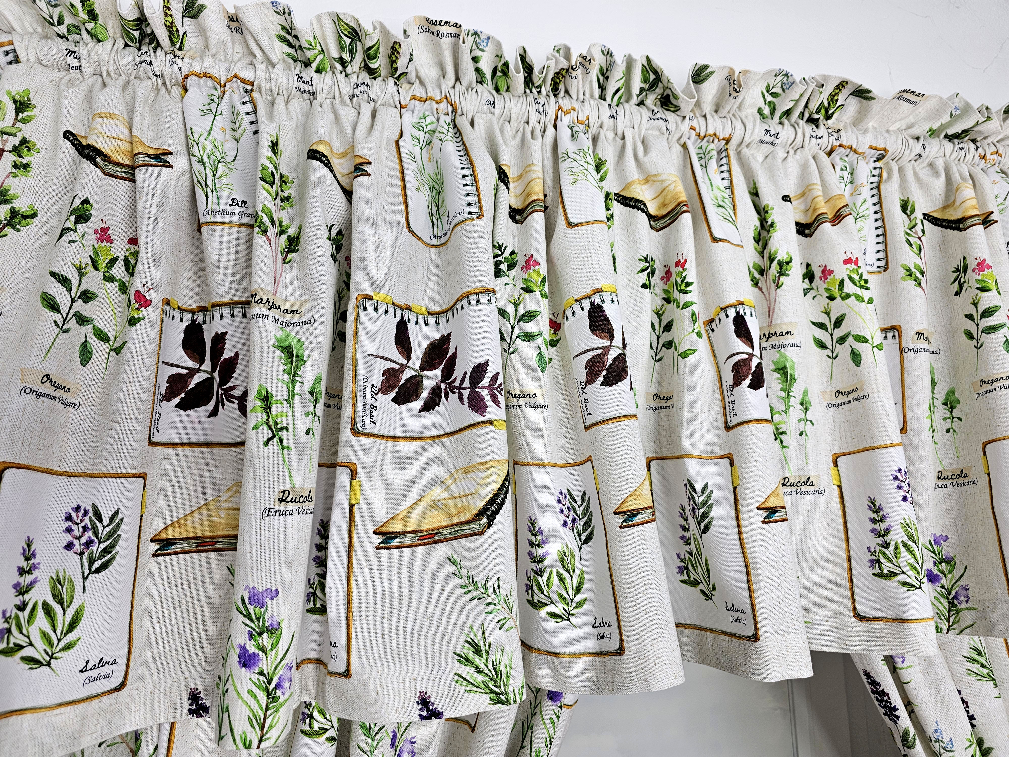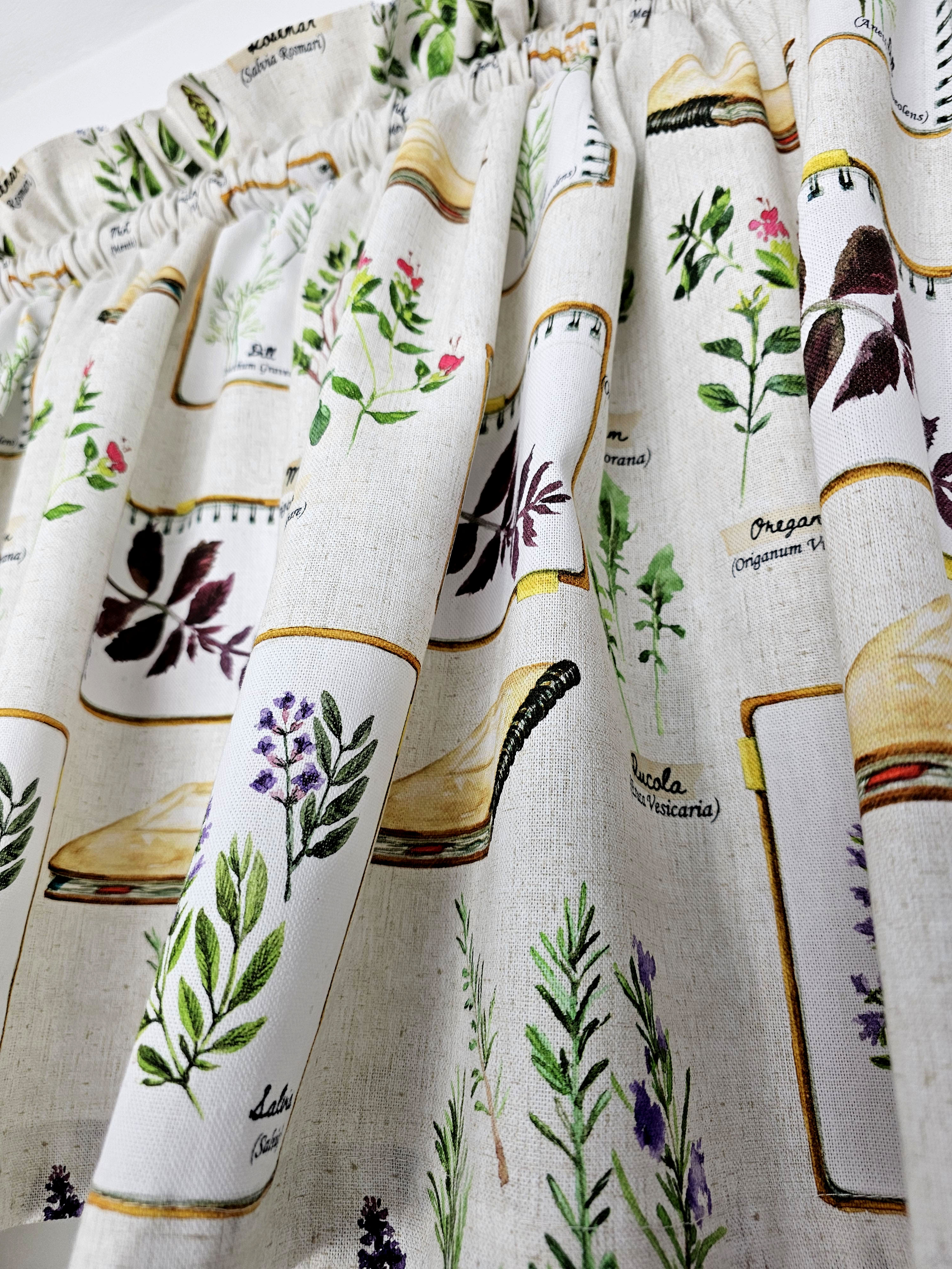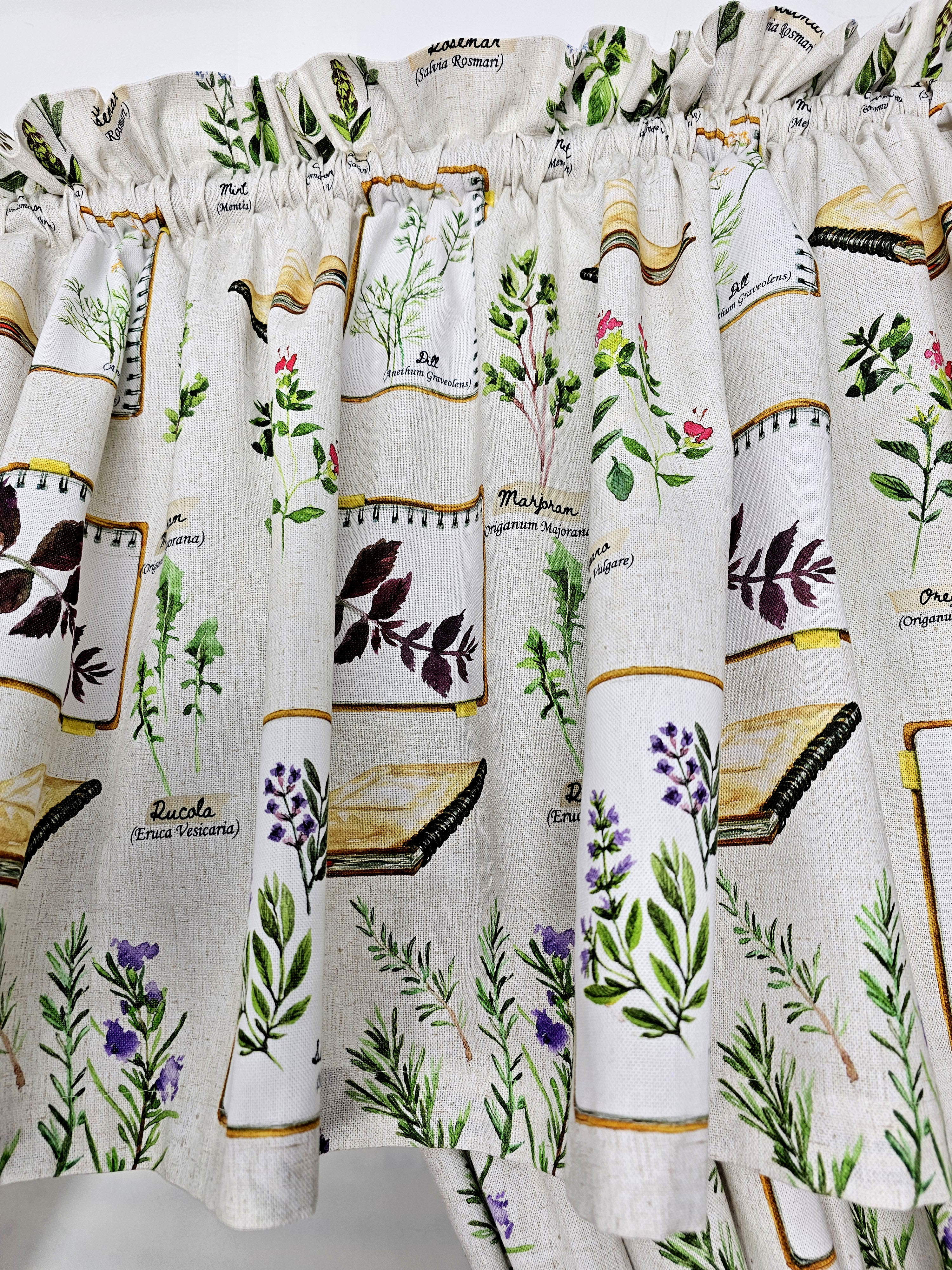 Komplet to 2 sztuki zasłonek oraz wstążki do wiązania zasłonek plus lambrekin i zazdrostka.