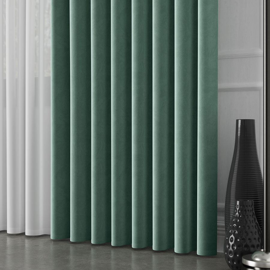 Zasłona velvetowa półzaciemniająca z bardzo przyjemnym w dotyku meszkiem.