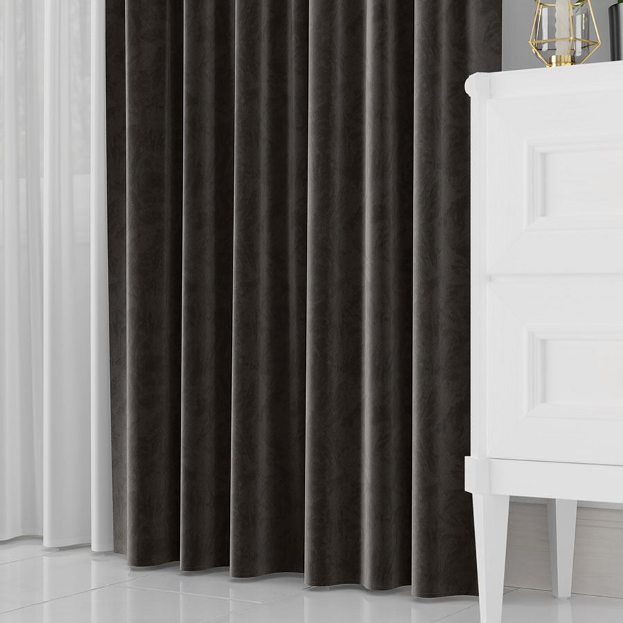Zasłona velvetowa półzaciemniająca z bardzo przyjemnym w dotyku meszkiem.