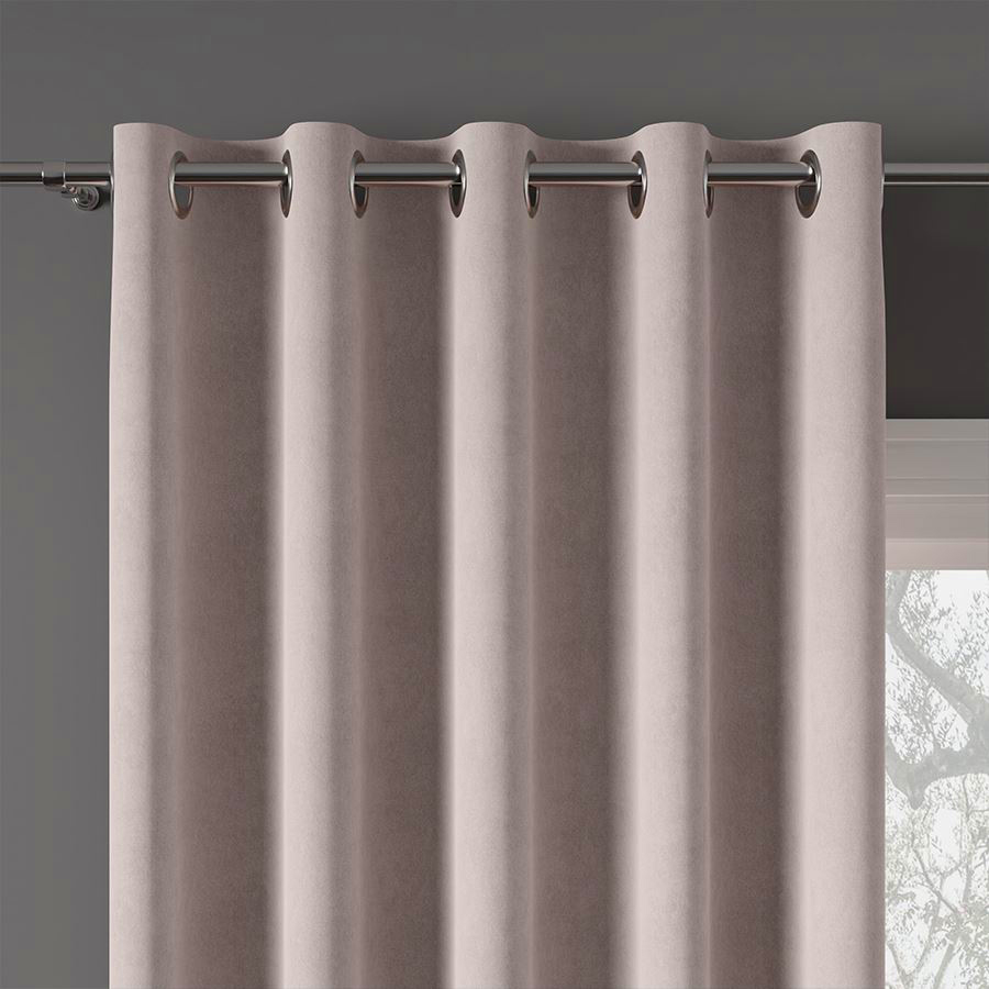 Zasłona z miękkiej tkaniny półzaciemniającej. Tkanina jest dość ciężka przez co bardzo fajnie się układa, jej dodatkową zaletą jest to że prawie sie nie gniecie. Bardzo przyjemna w dotyku więc nadaje sie też na poszewki i inne dekoracje.