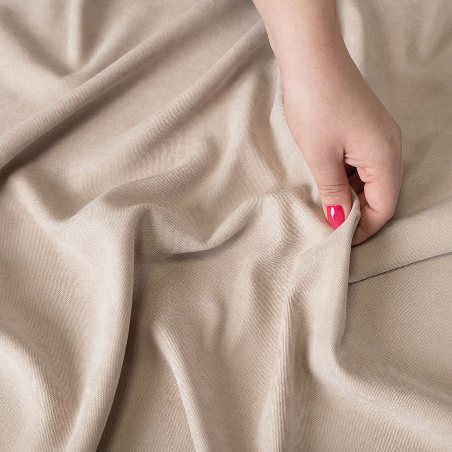 Tkaninę z włosiem prasujemy po lewej stronie materiału z podłożonym ręcznikiem, lekko rozgrzanym żelazkiem z użyciem pary. Prasowanie bez pary może spowodować utratę połysku.