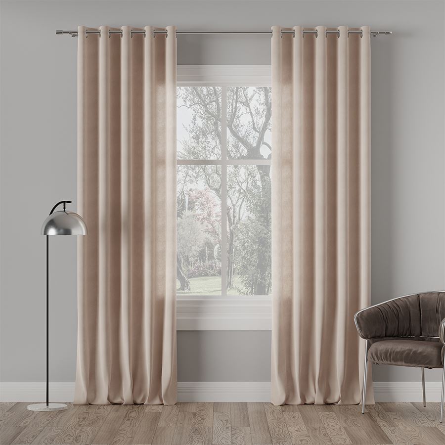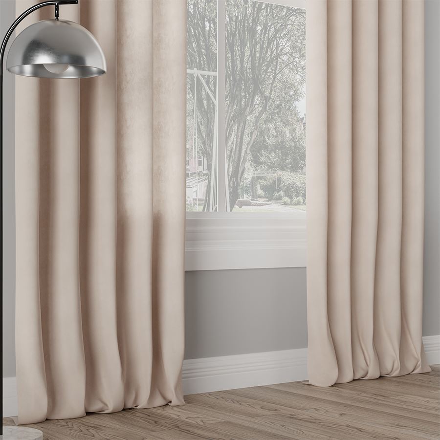Zasłona z miękkiej tkaniny półzaciemniającej. Tkanina jest dość ciężka przez co bardzo fajnie się układa, jej dodatkową zaletą jest to że prawie sie nie gniecie. Bardzo przyjemna w dotyku więc nadaje sie też na poszewki i inne dekoracje.