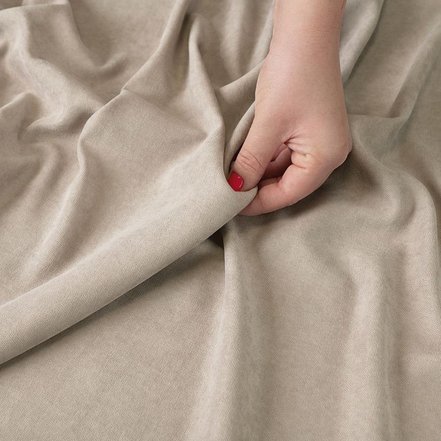 Zasłona z miękkiej tkaniny półzaciemniającej. Tkanina jest dość ciężka przez co bardzo fajnie się układa, jej dodatkową zaletą jest to że prawie sie nie gniecie. Bardzo przyjemna w dotyku więc nadaje sie też na poszewki i inne dekoracje.