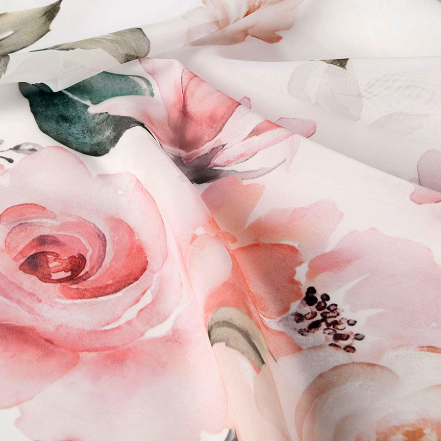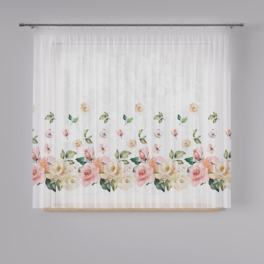 Firana przezroczysta woalowa z kwiatowym nadrukiem.