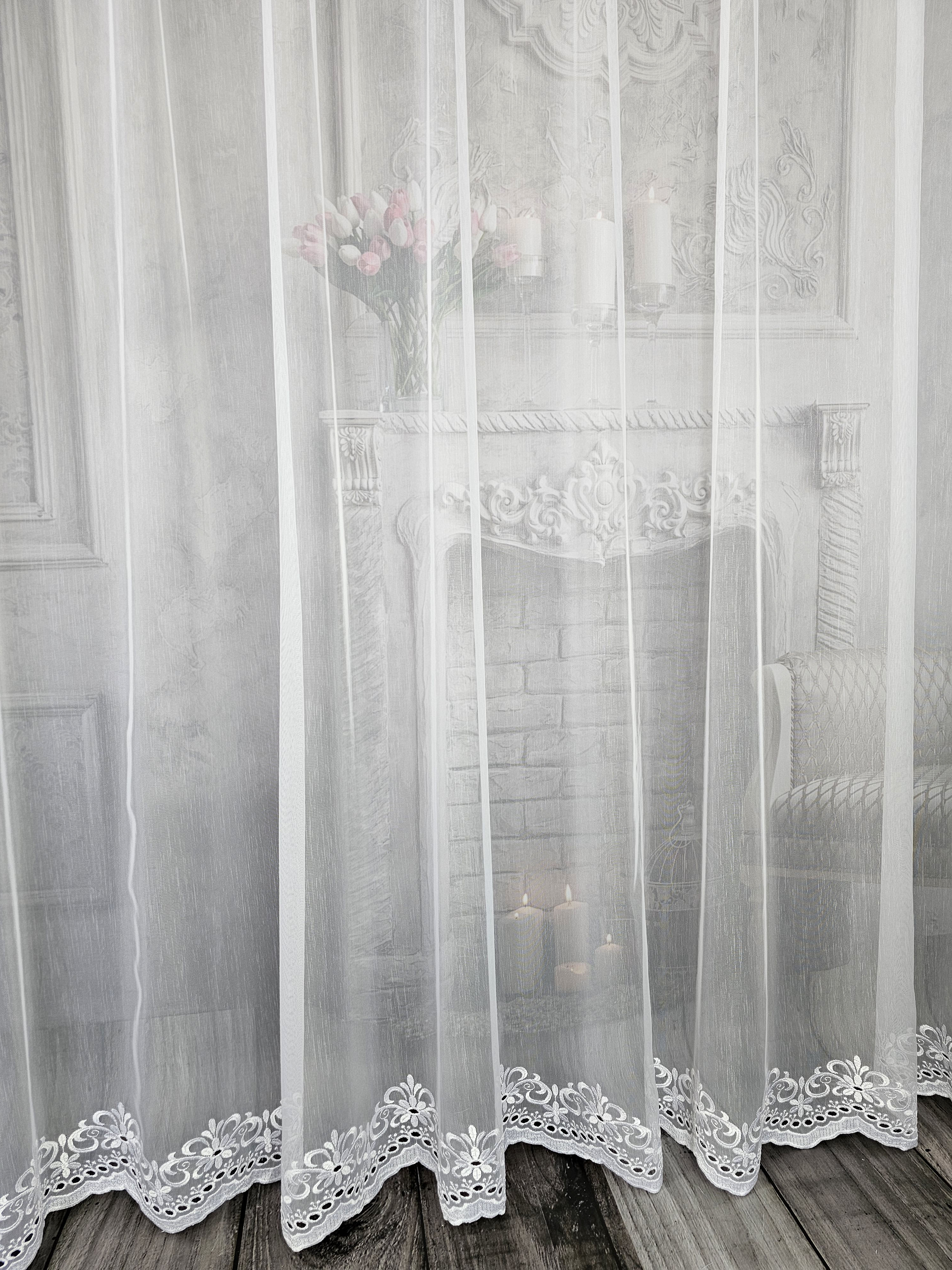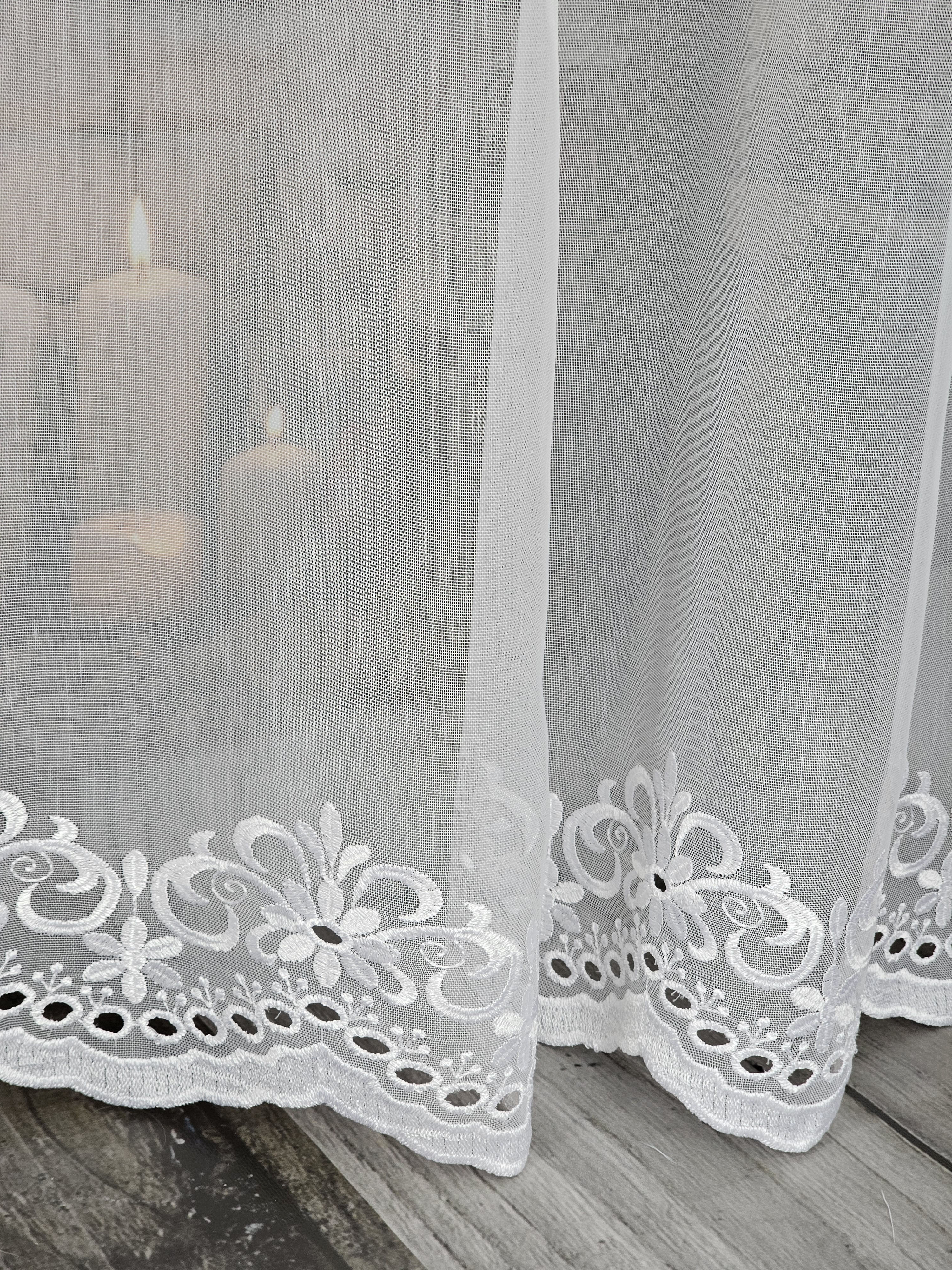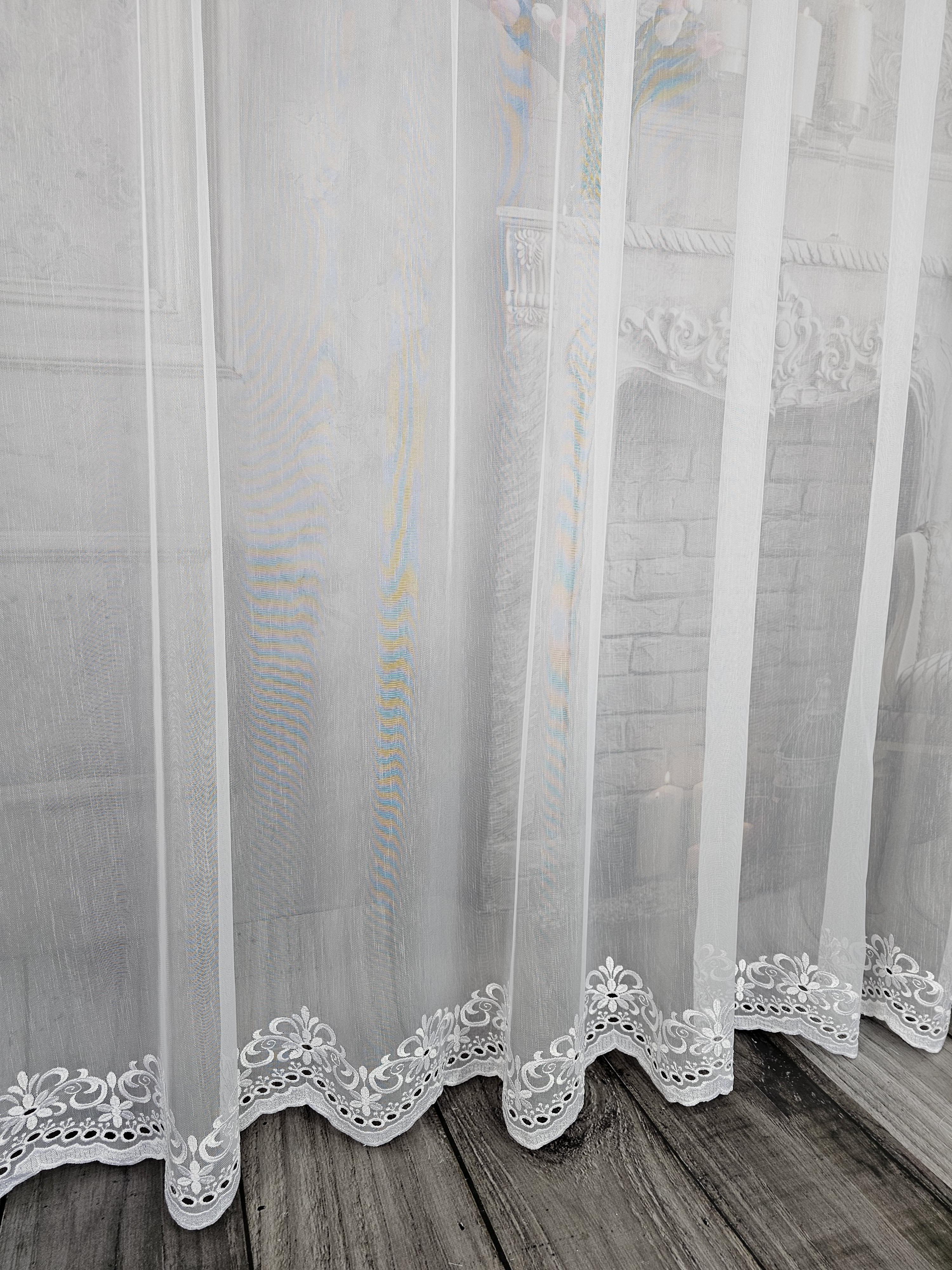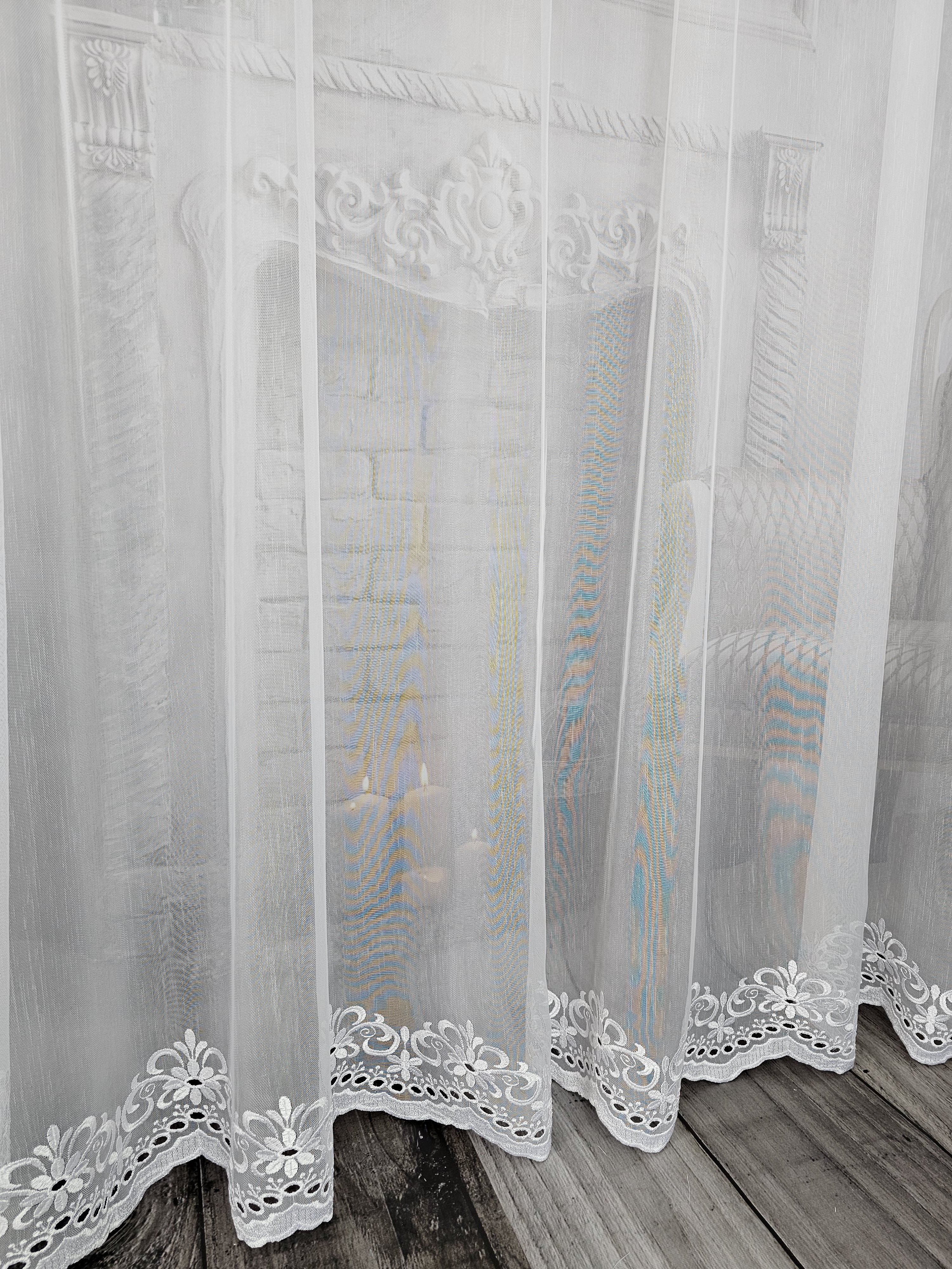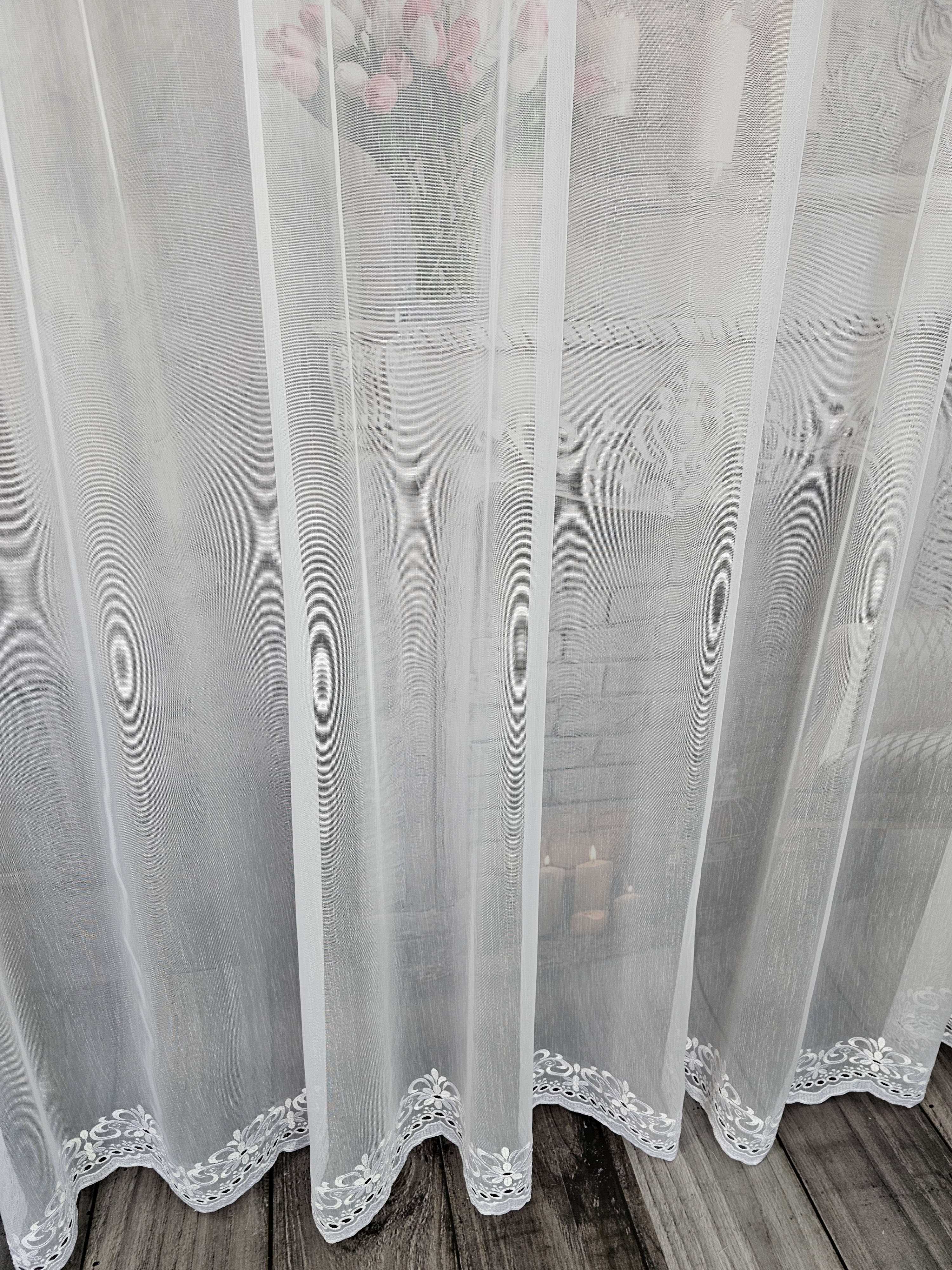 Firana przezroczysta naturalna markizeta z haftem dołem.