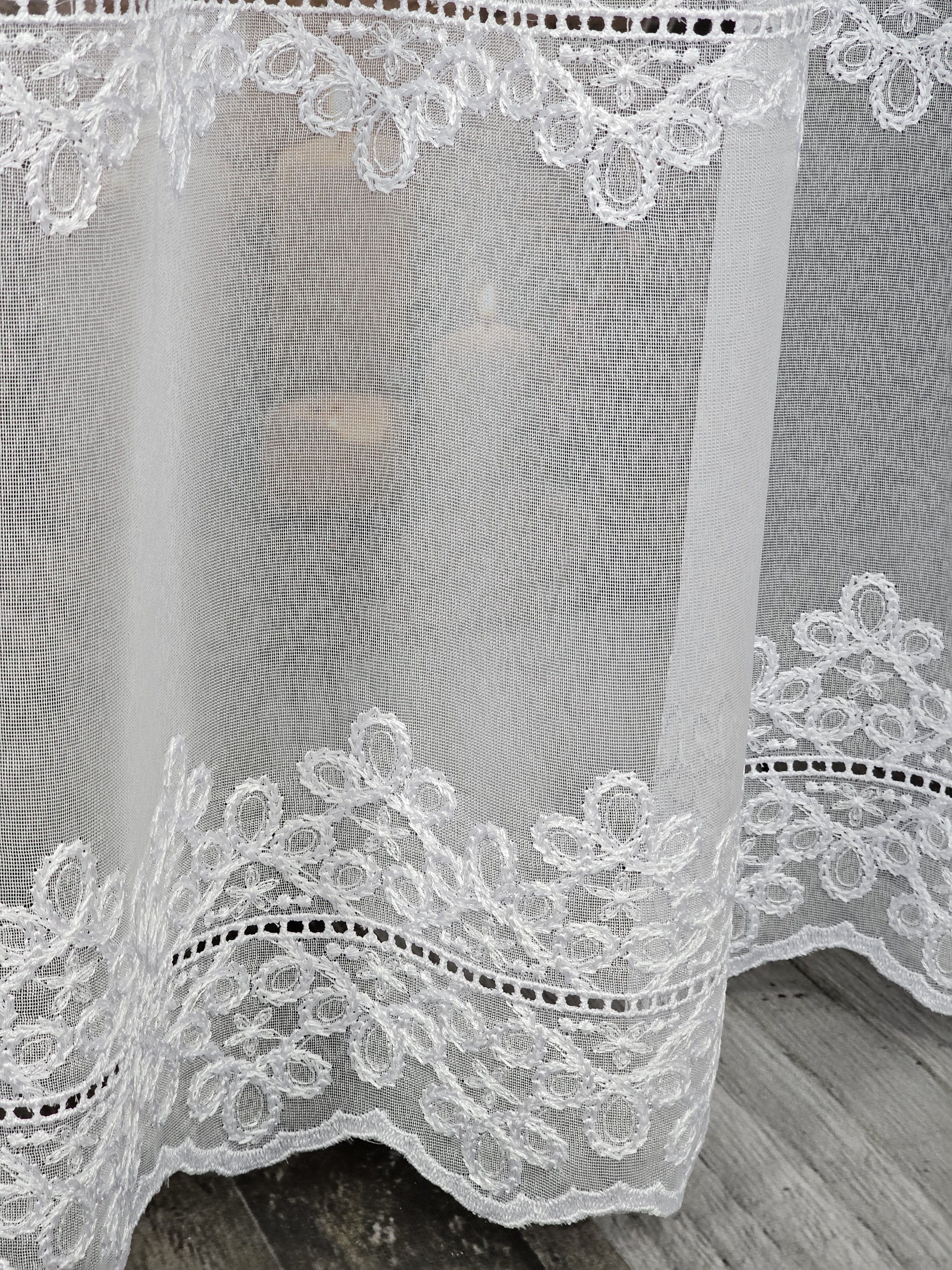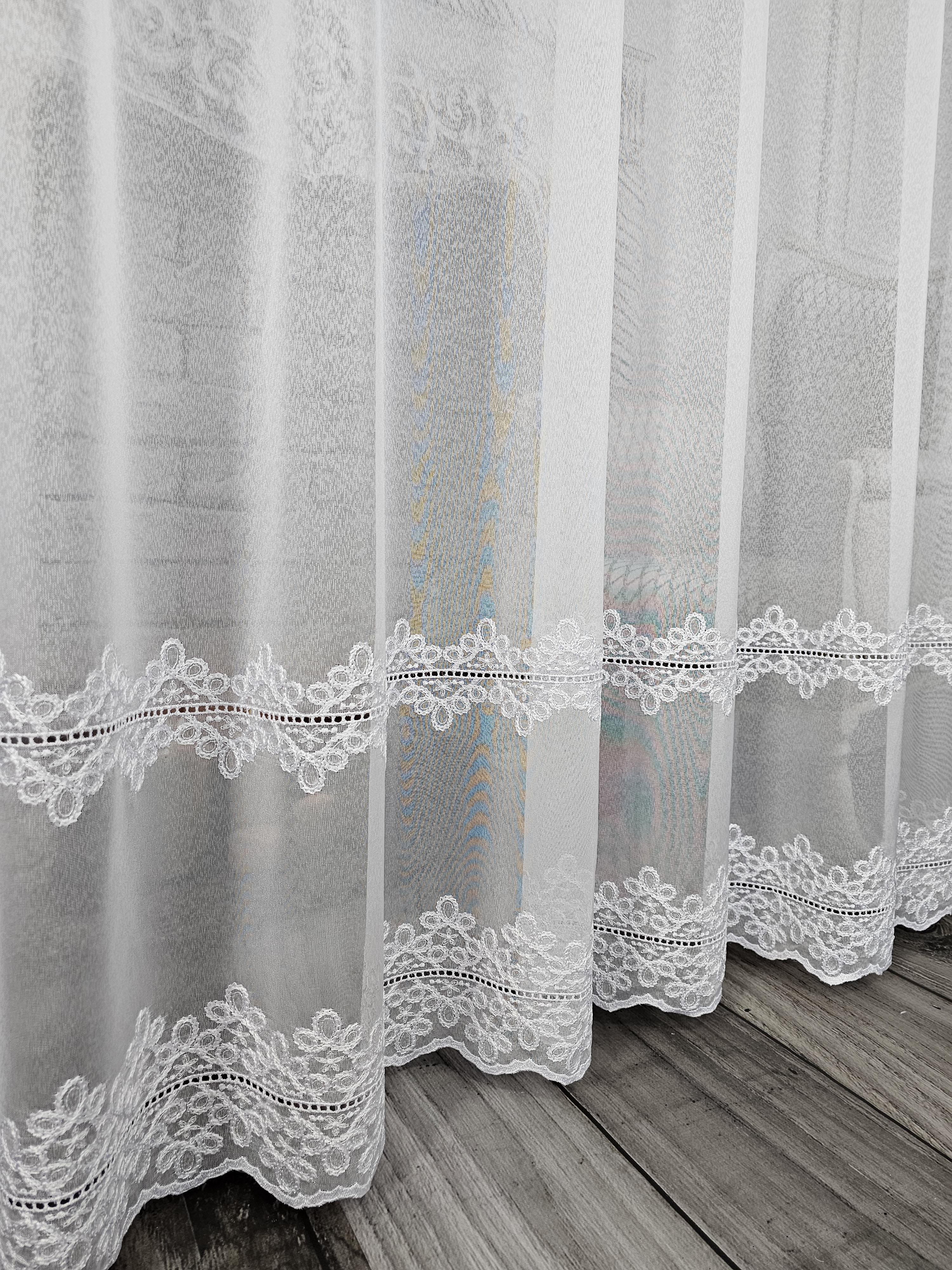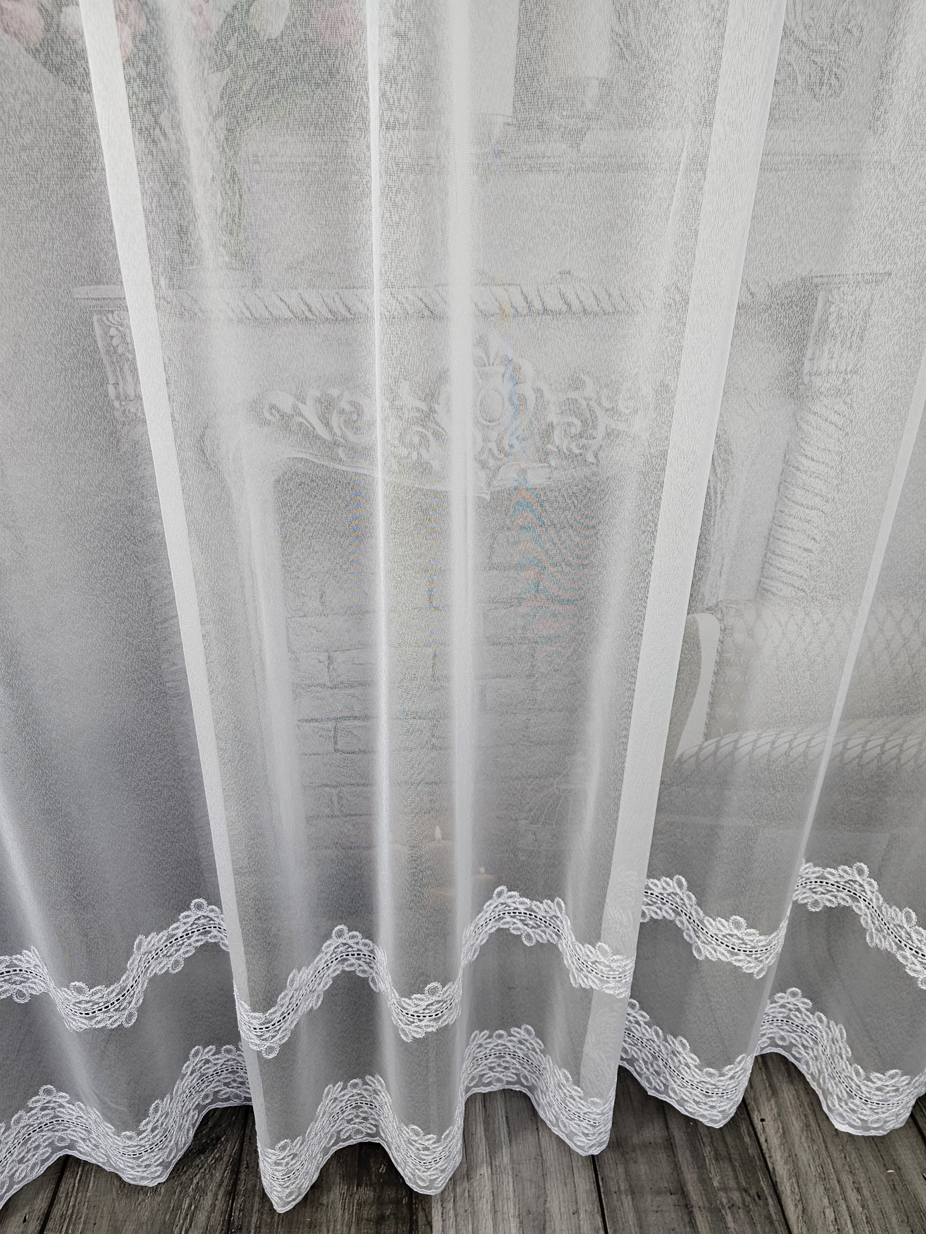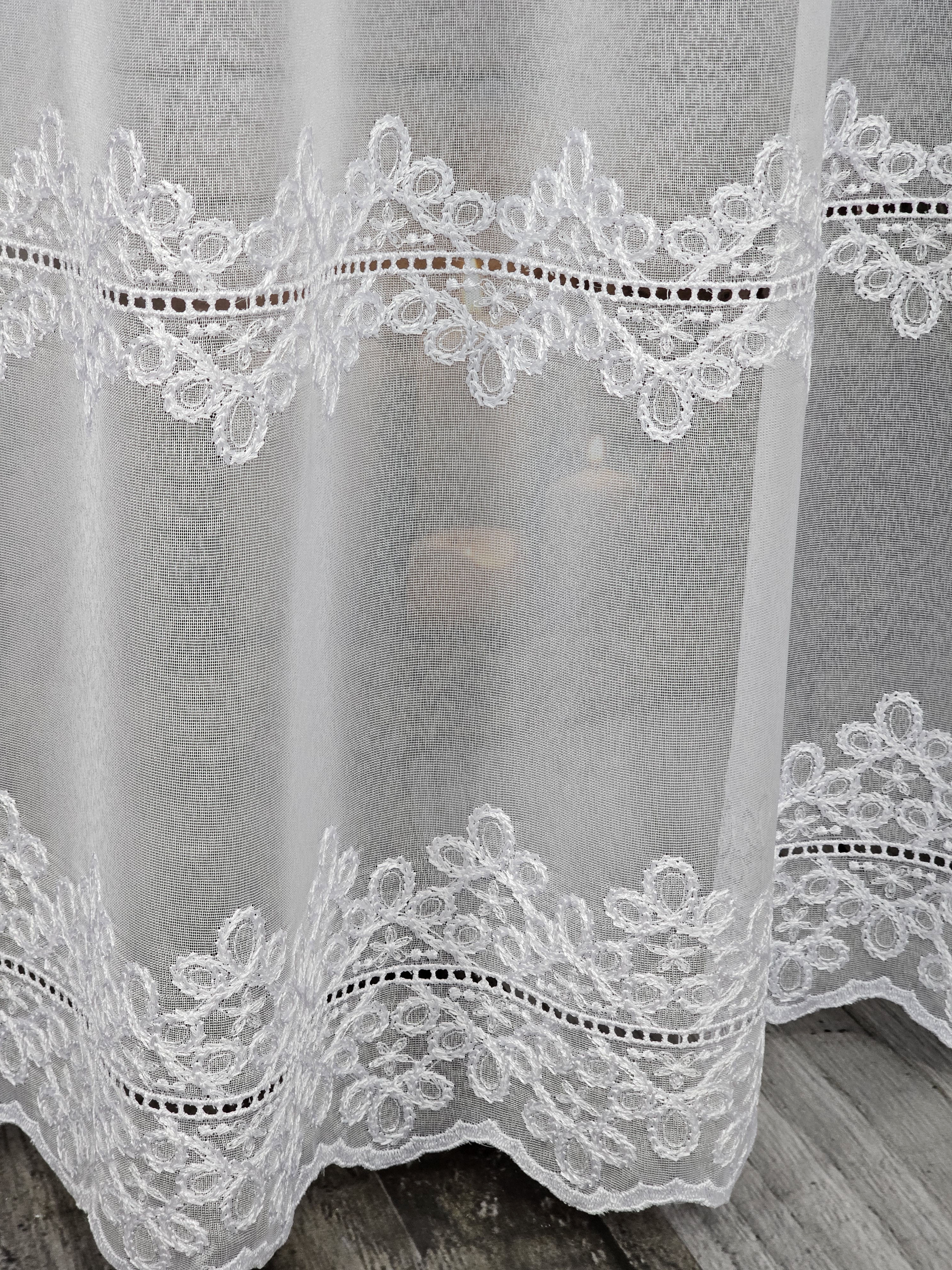 Firana przezroczysta naturalna markizeta z haftem dołem.