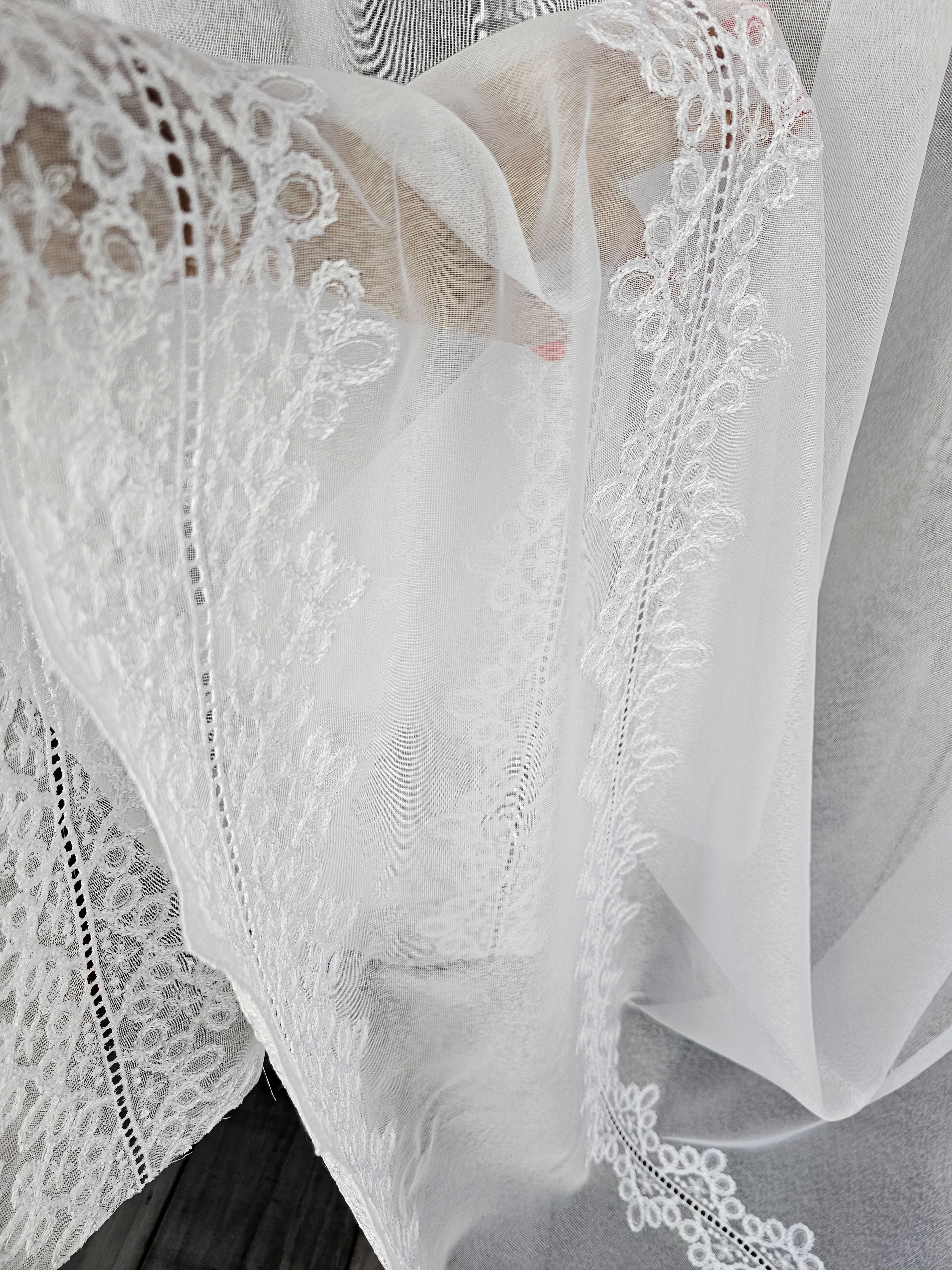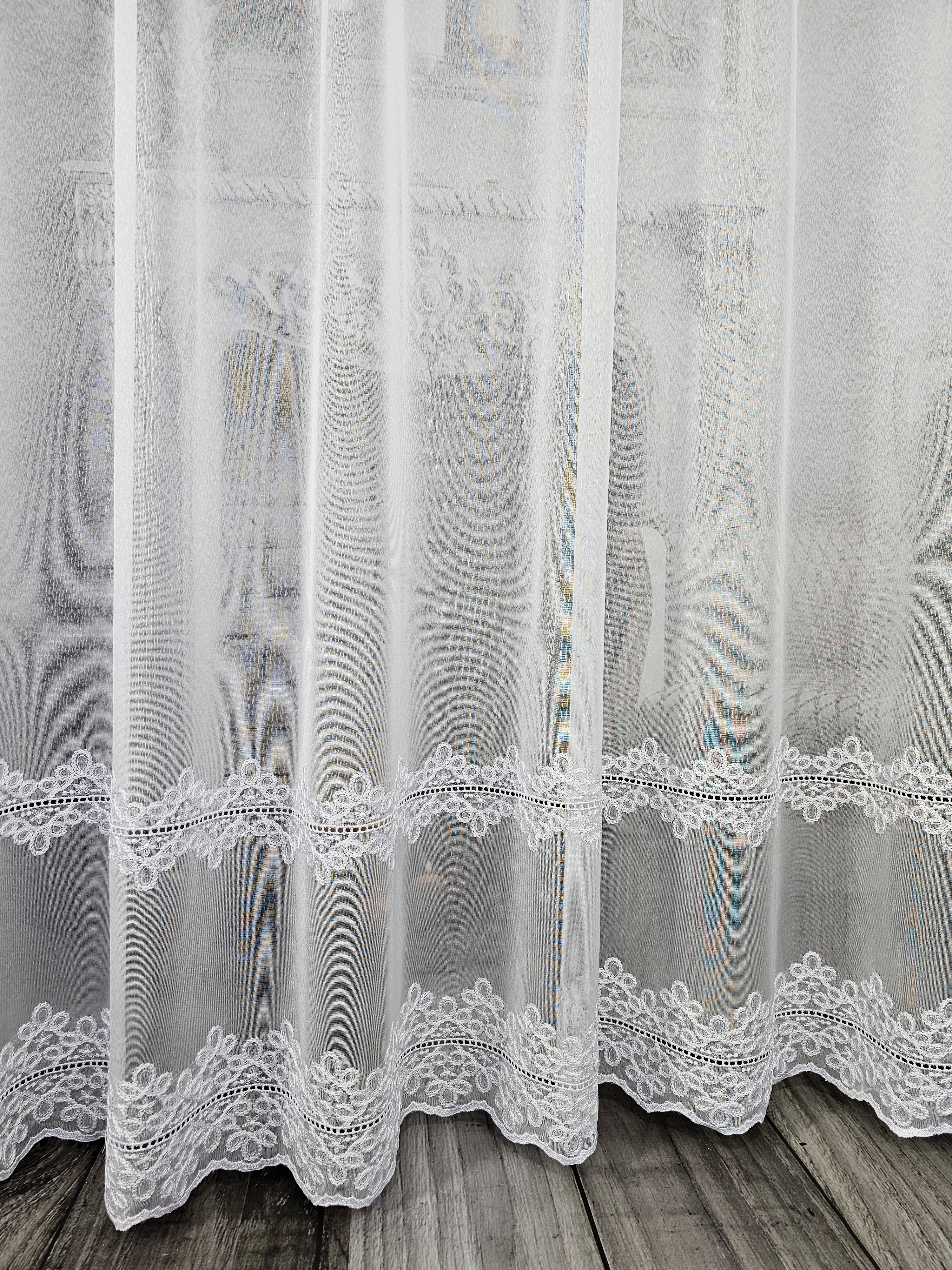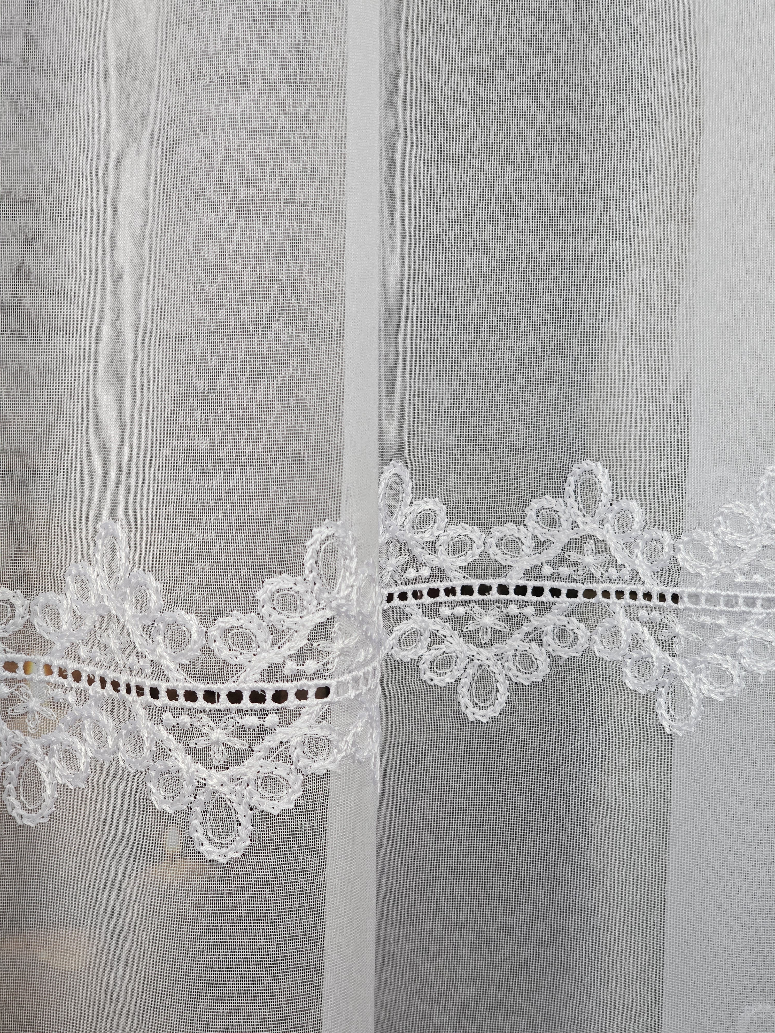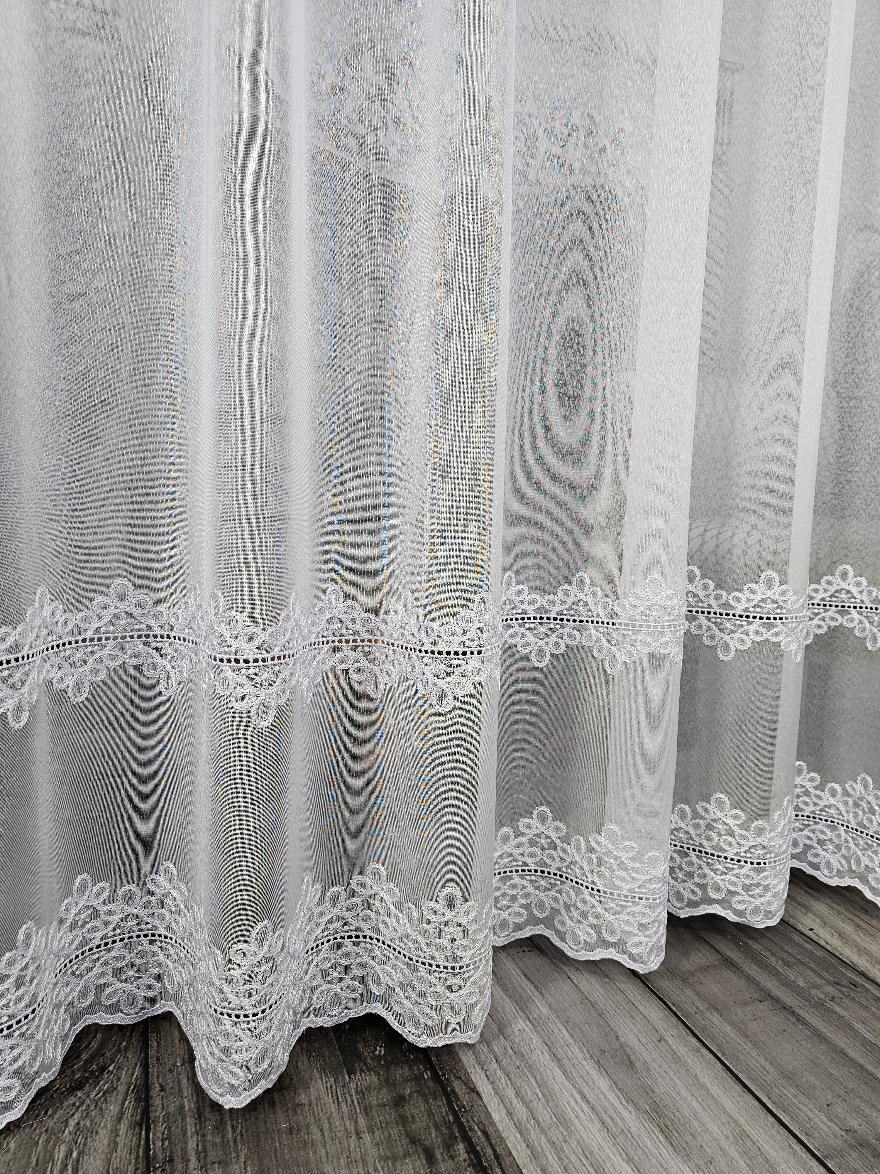 Firana przezroczysta naturalna markizeta z haftem dołem.