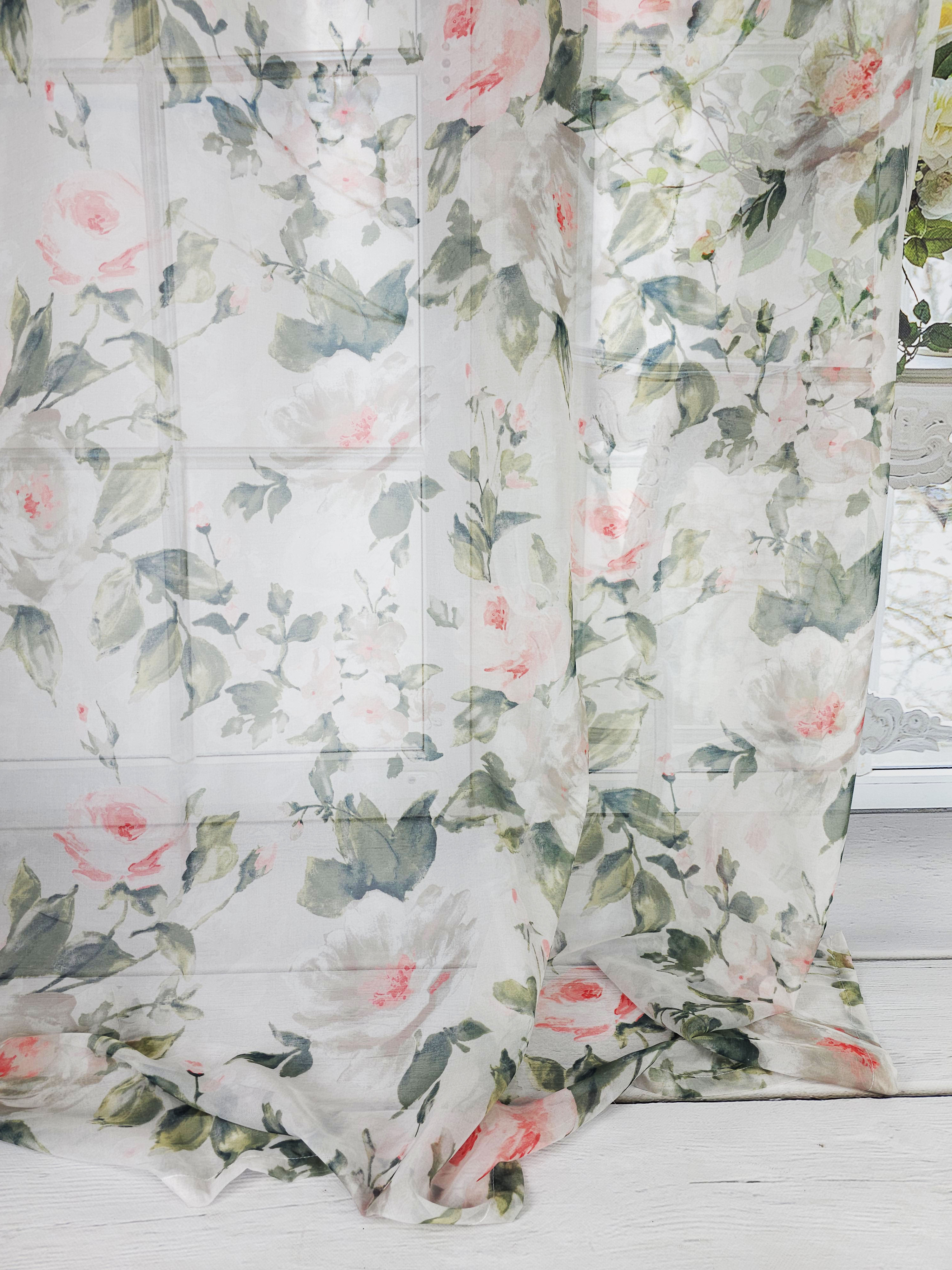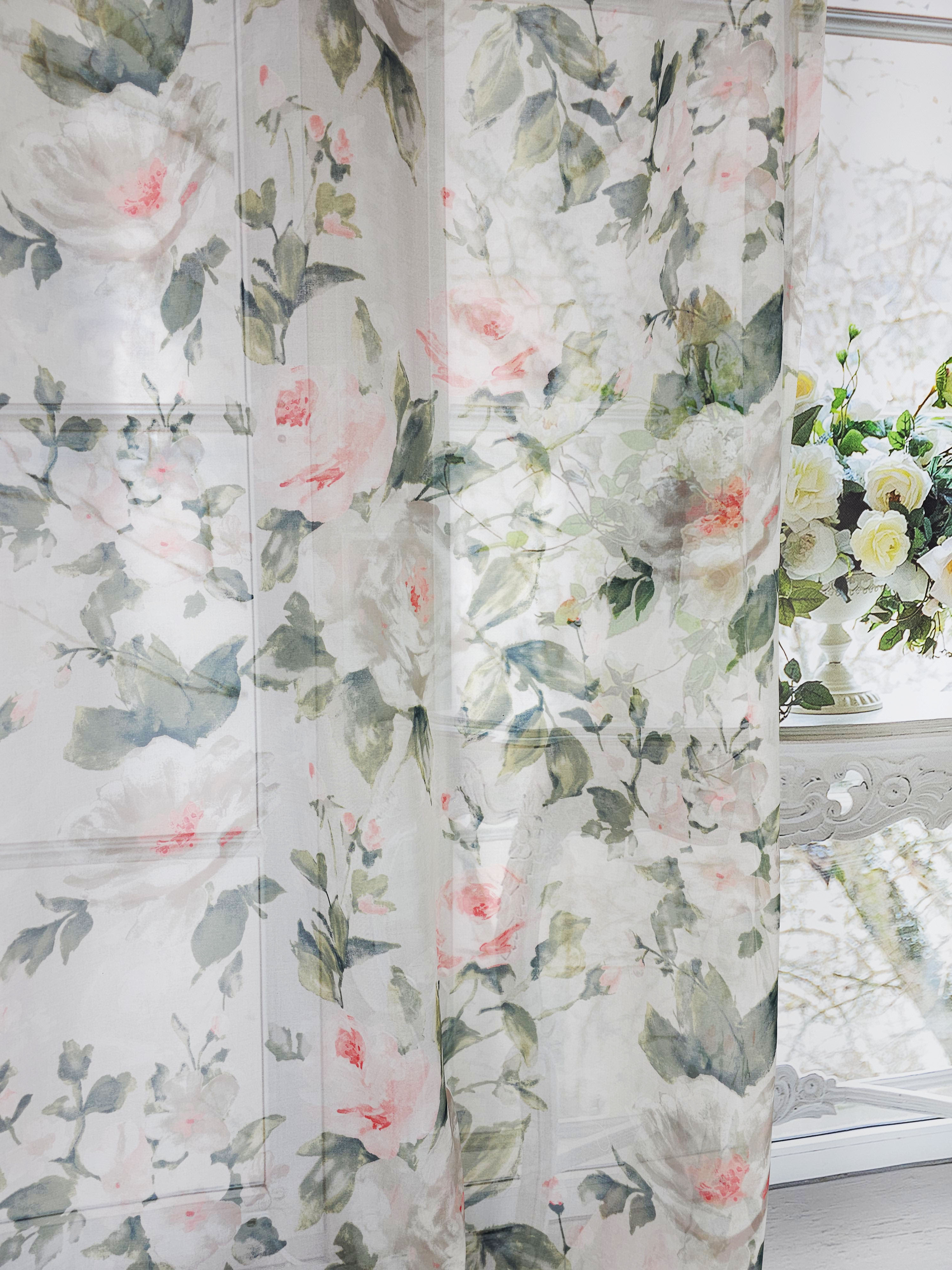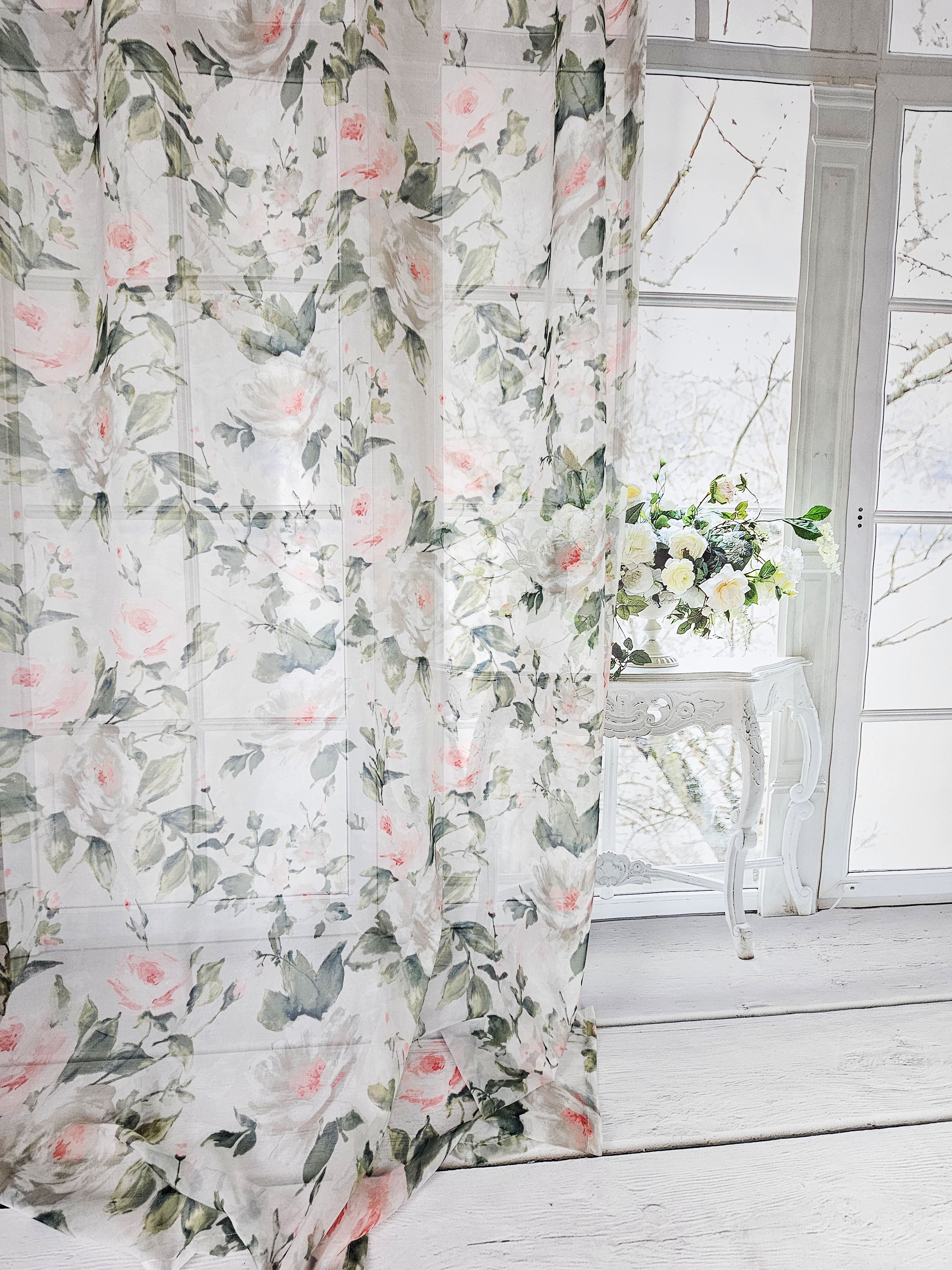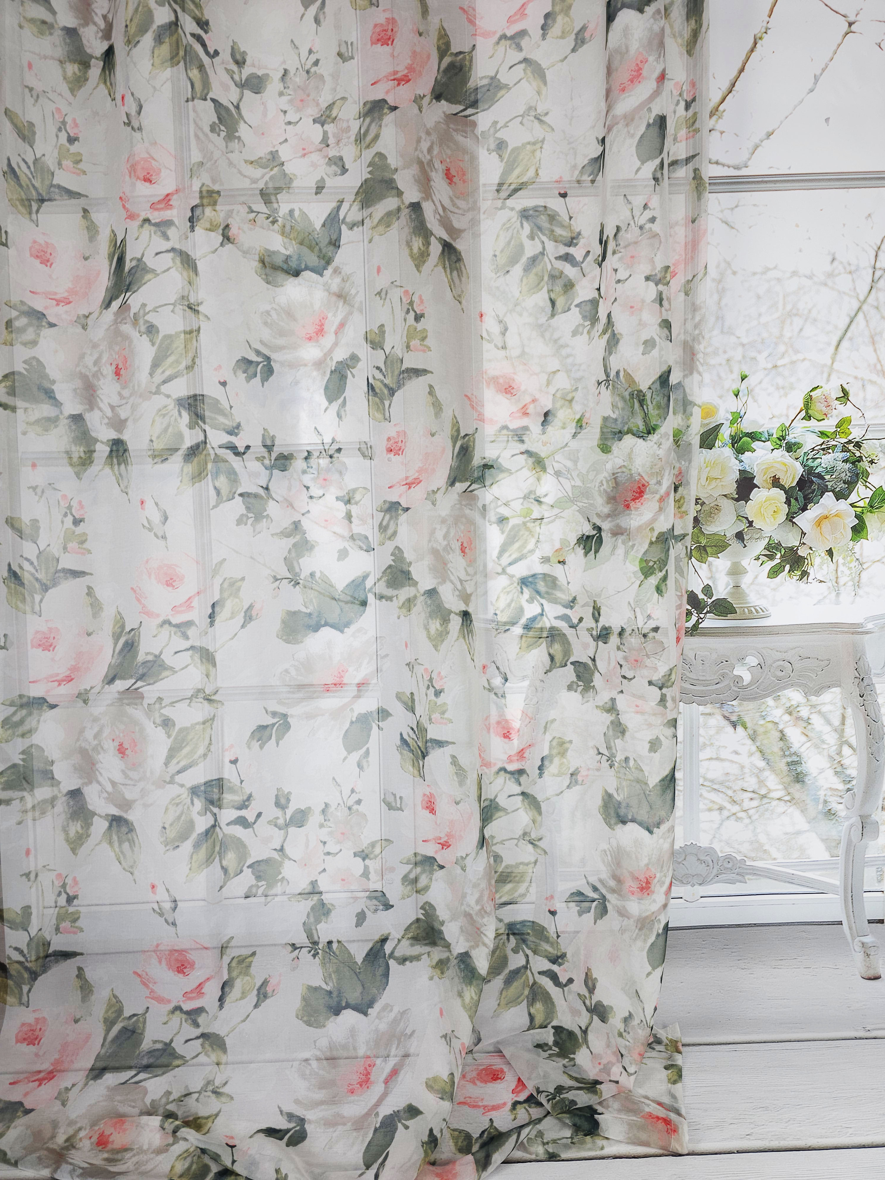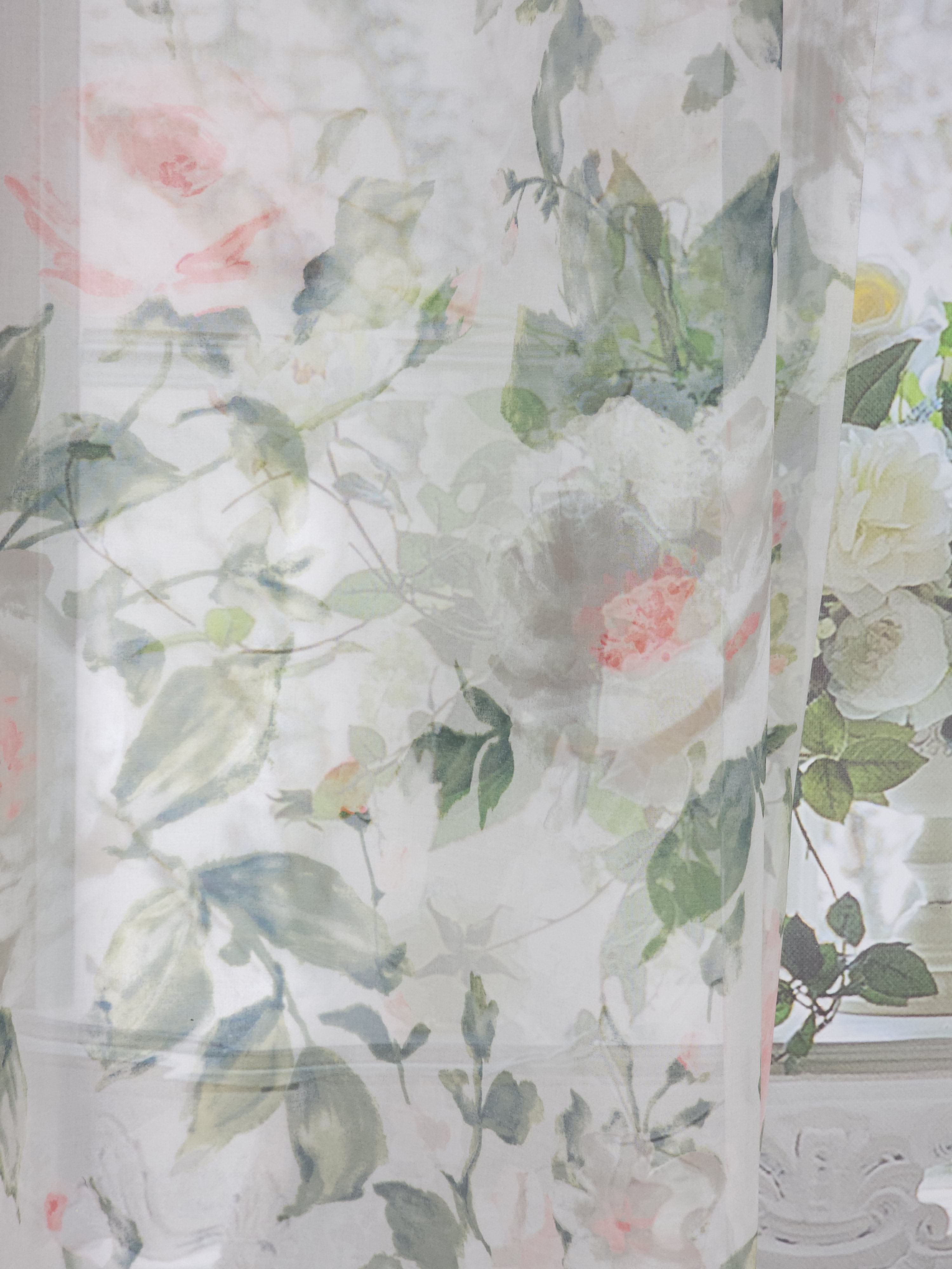 Firana przezroczysta woalowa z kwiatowym nadrukiem.