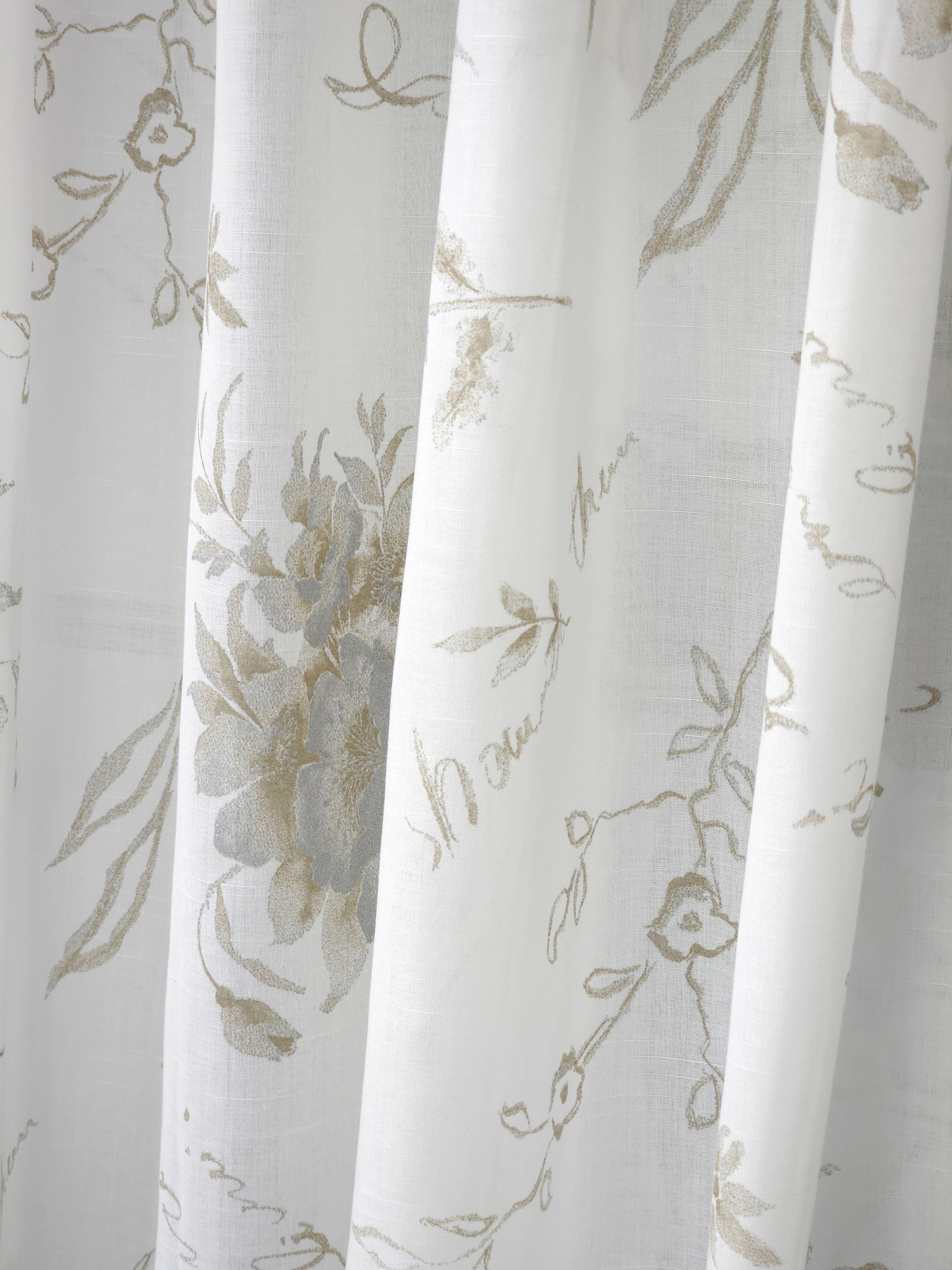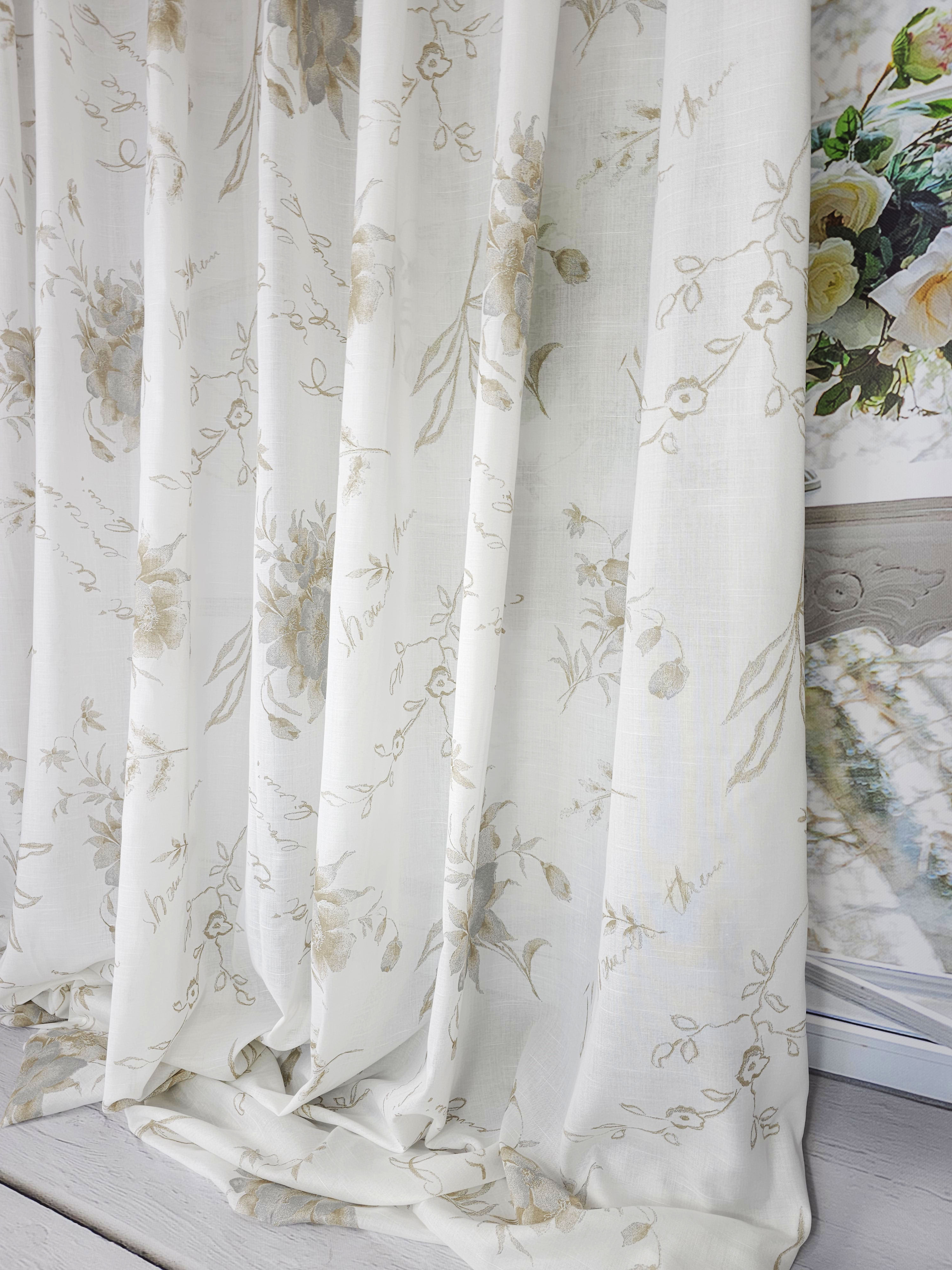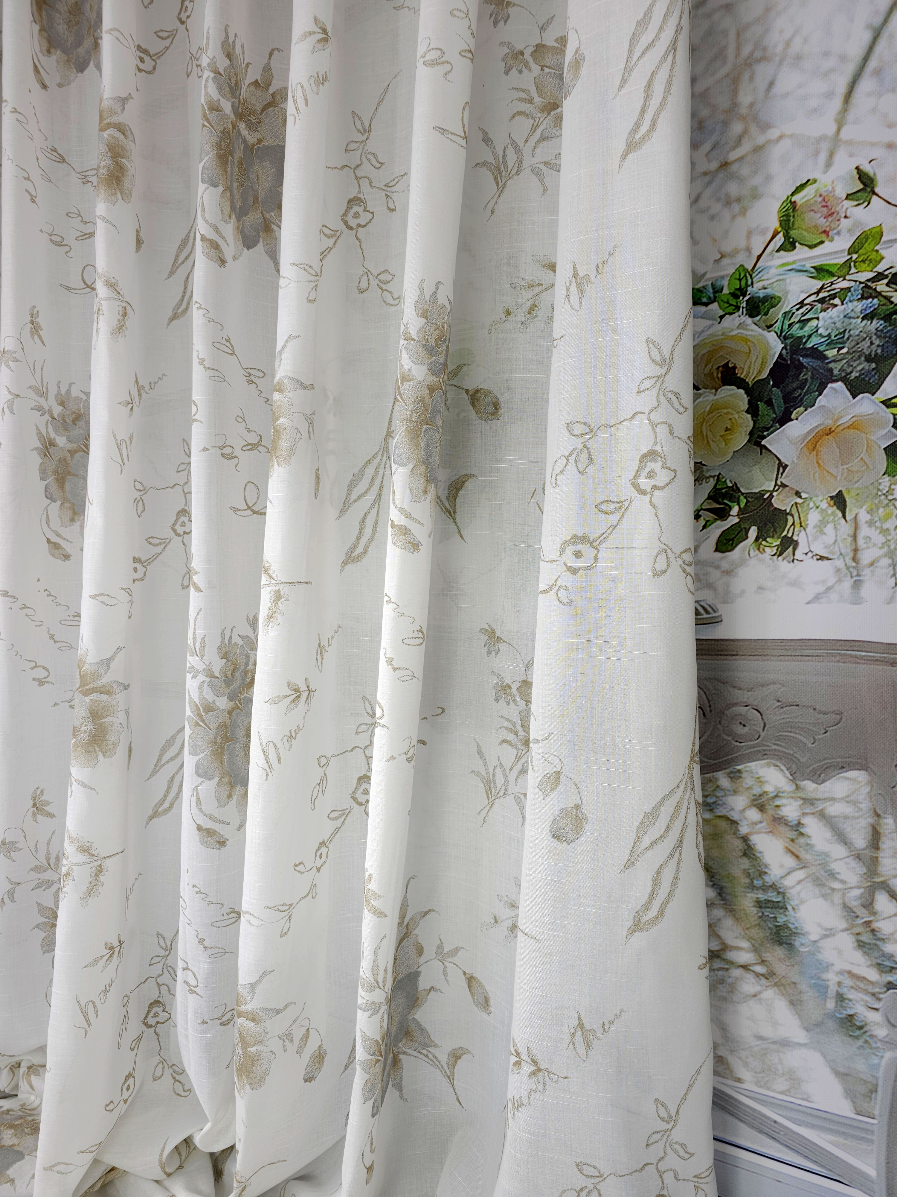 Firana przezroczysta etamina z kwiatowym nadrukiem.