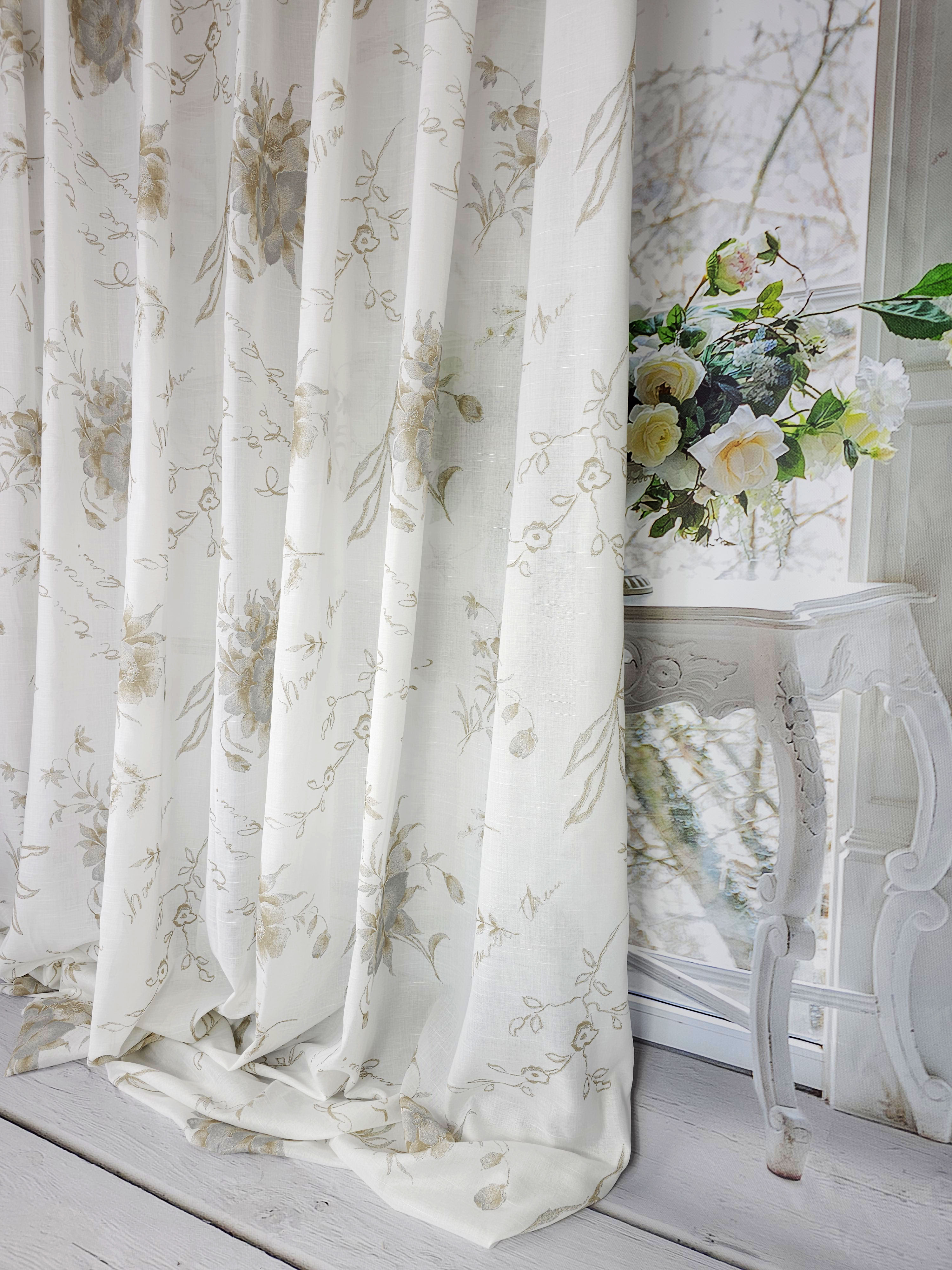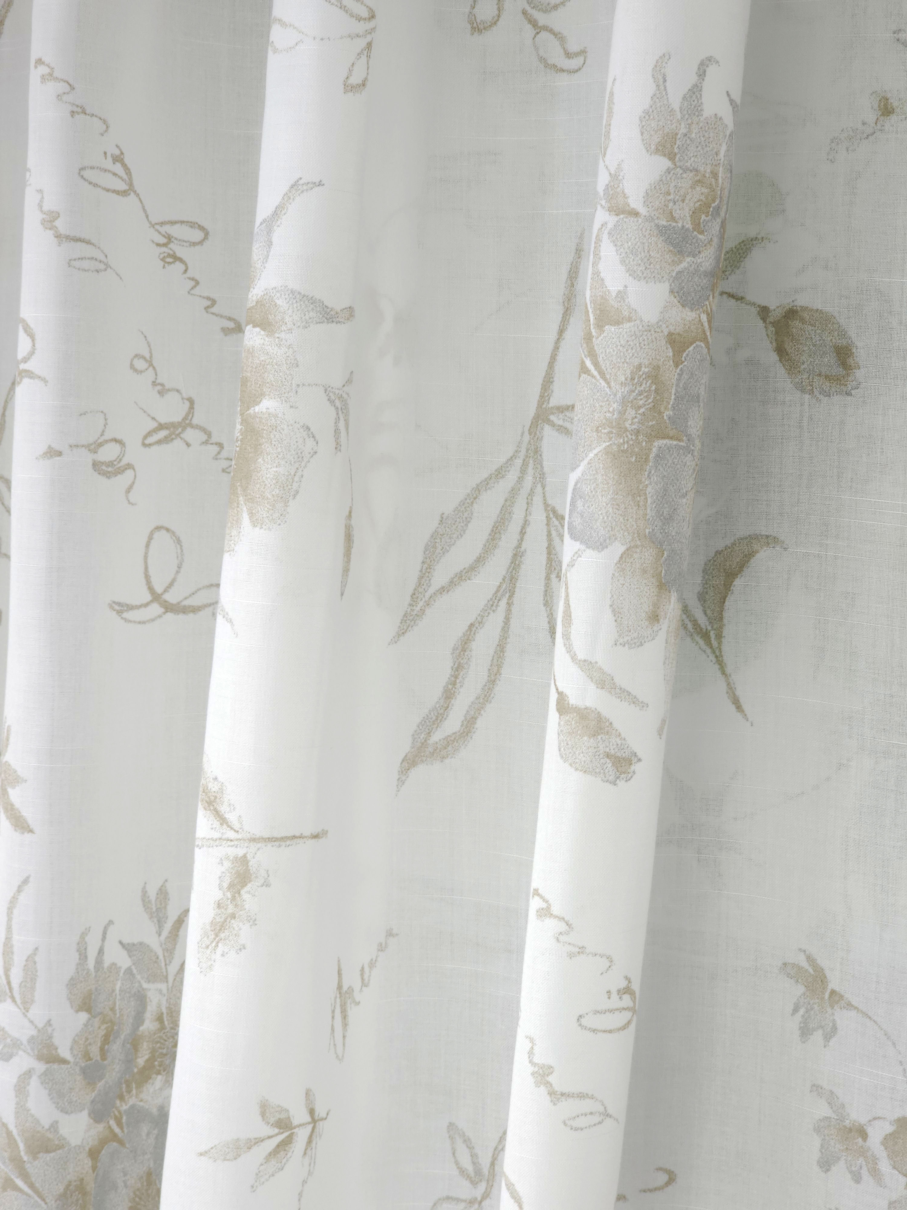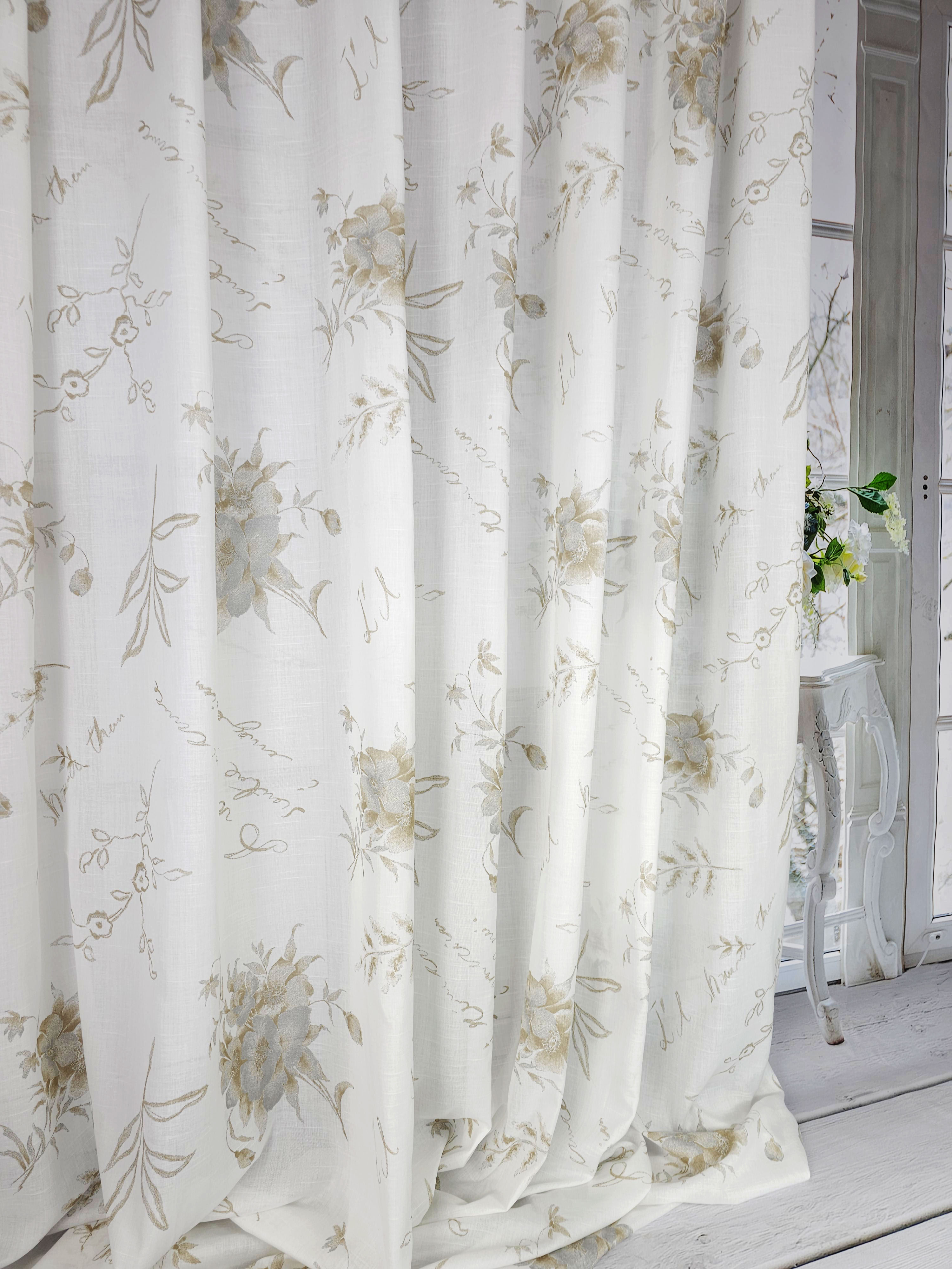 Firana przezroczysta etamina z kwiatowym nadrukiem.