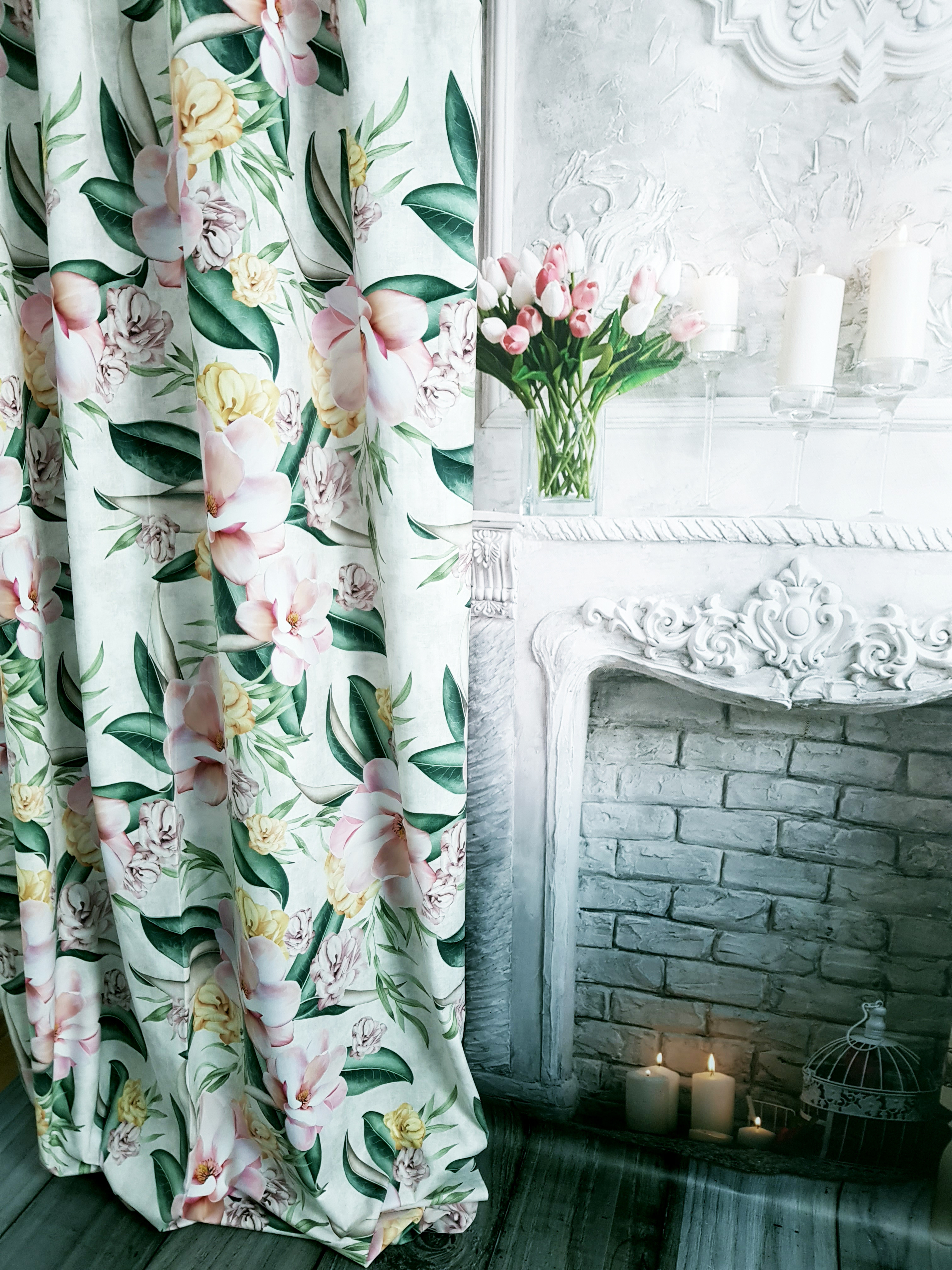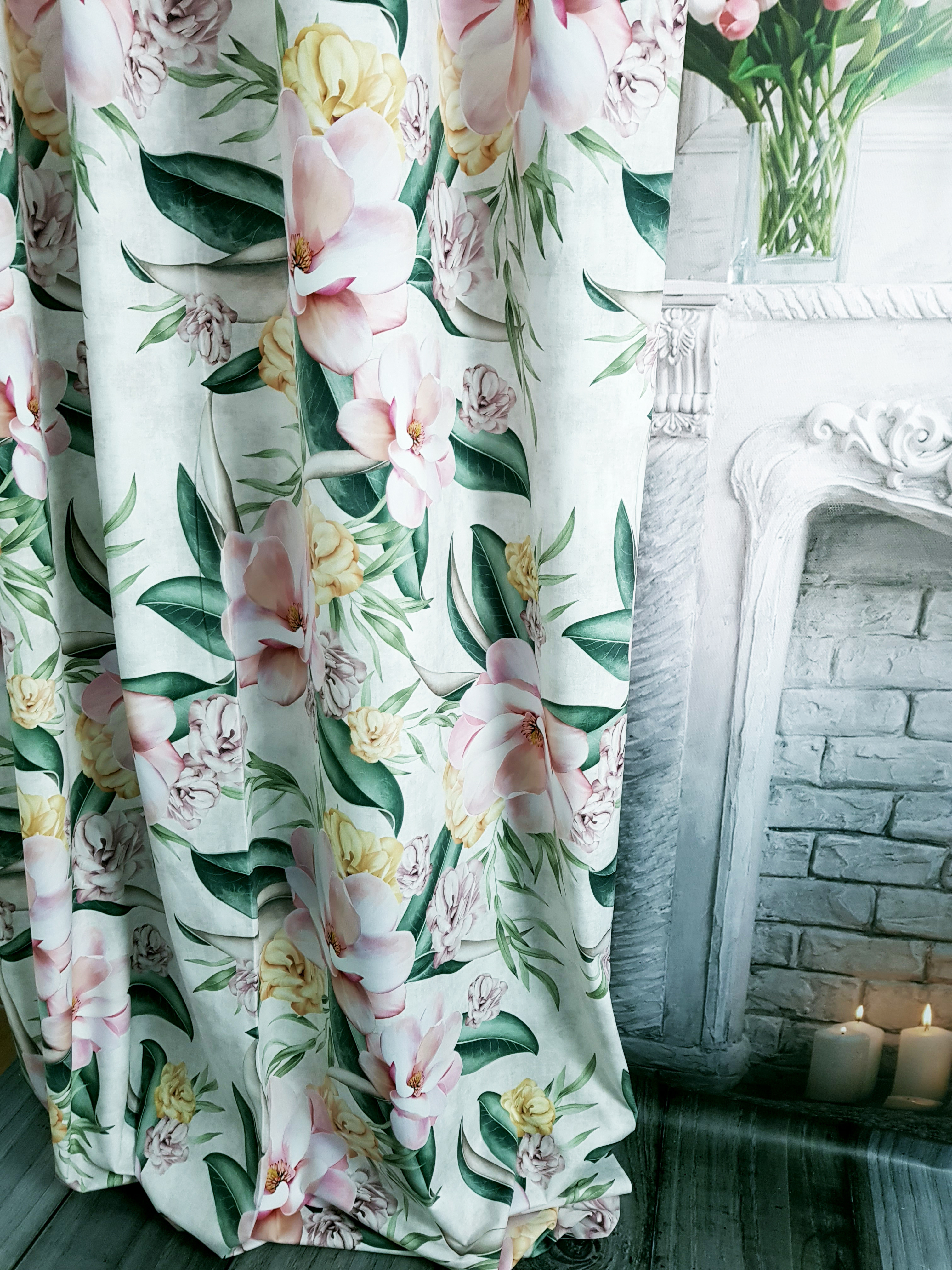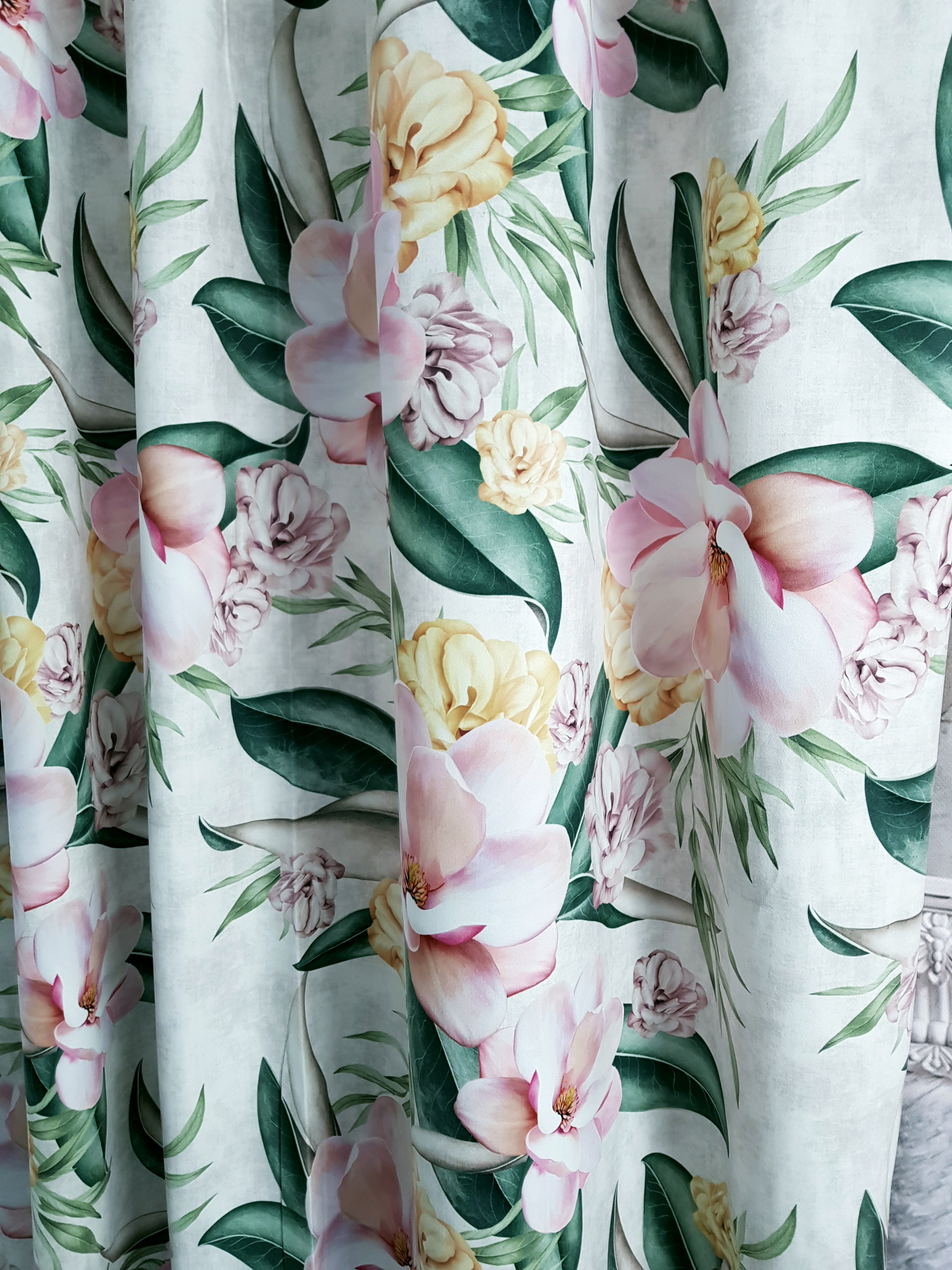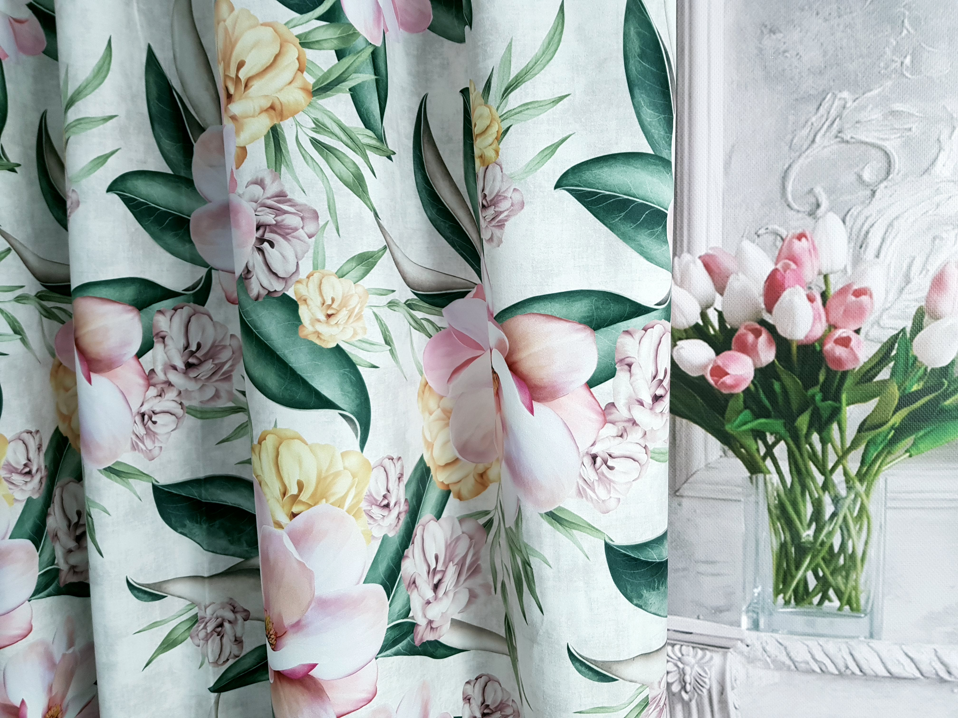 ZASŁONA MAGNOLIE NA MIETOWYM TLE SZER.140cm