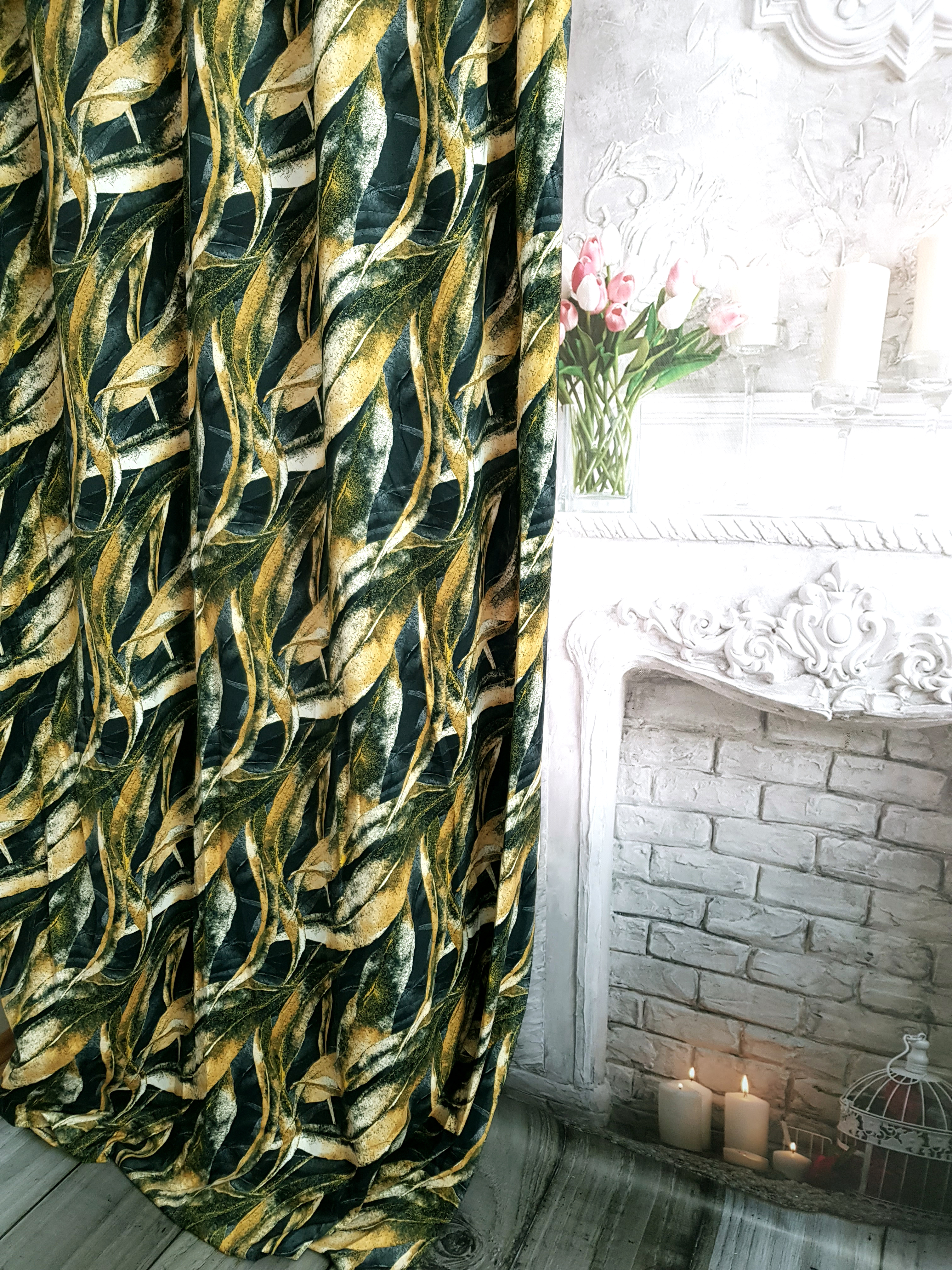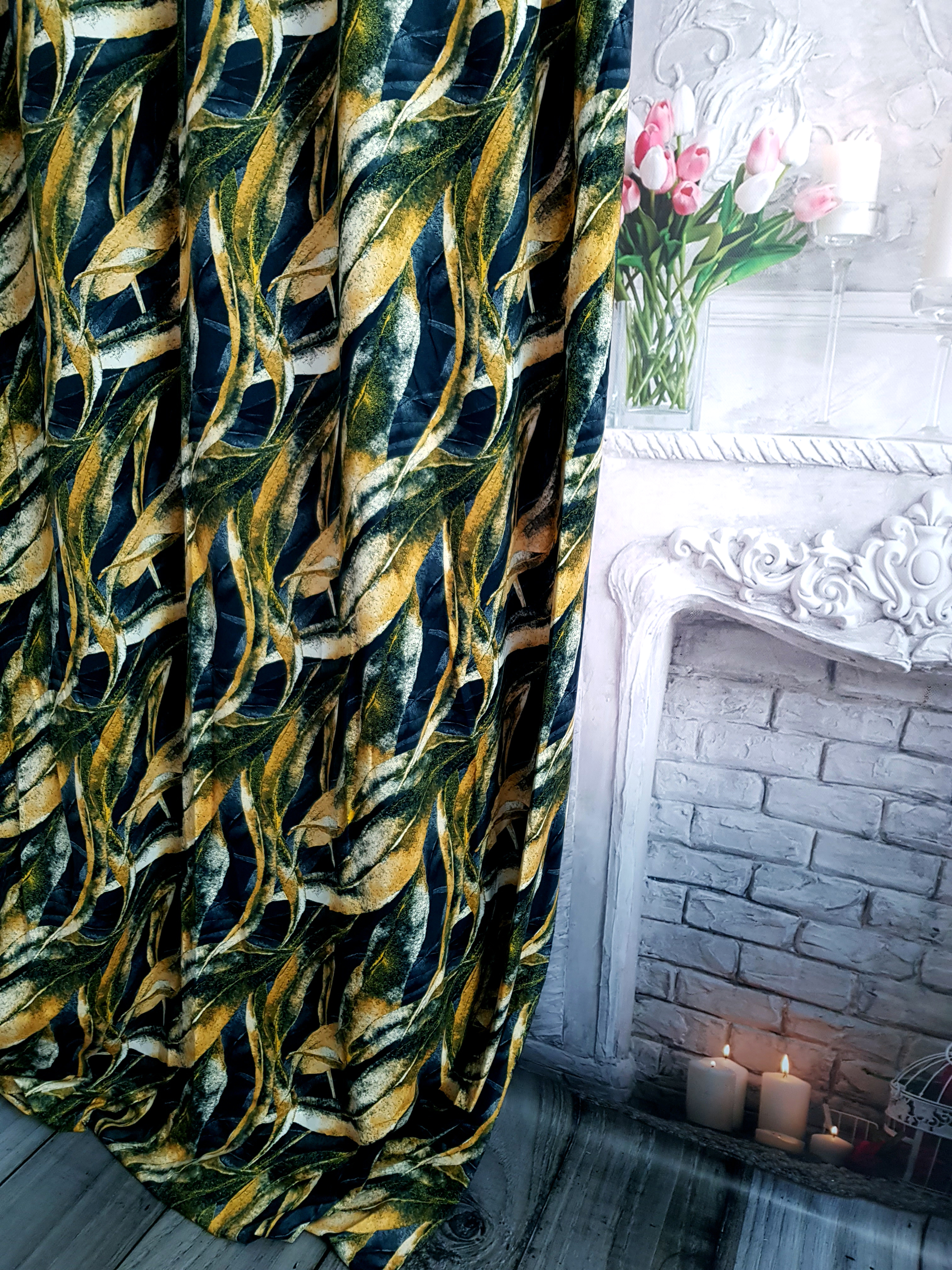 ZASŁONA ZŁOTE LIŚCIE NA CZARNYM TLE SZER.140cm