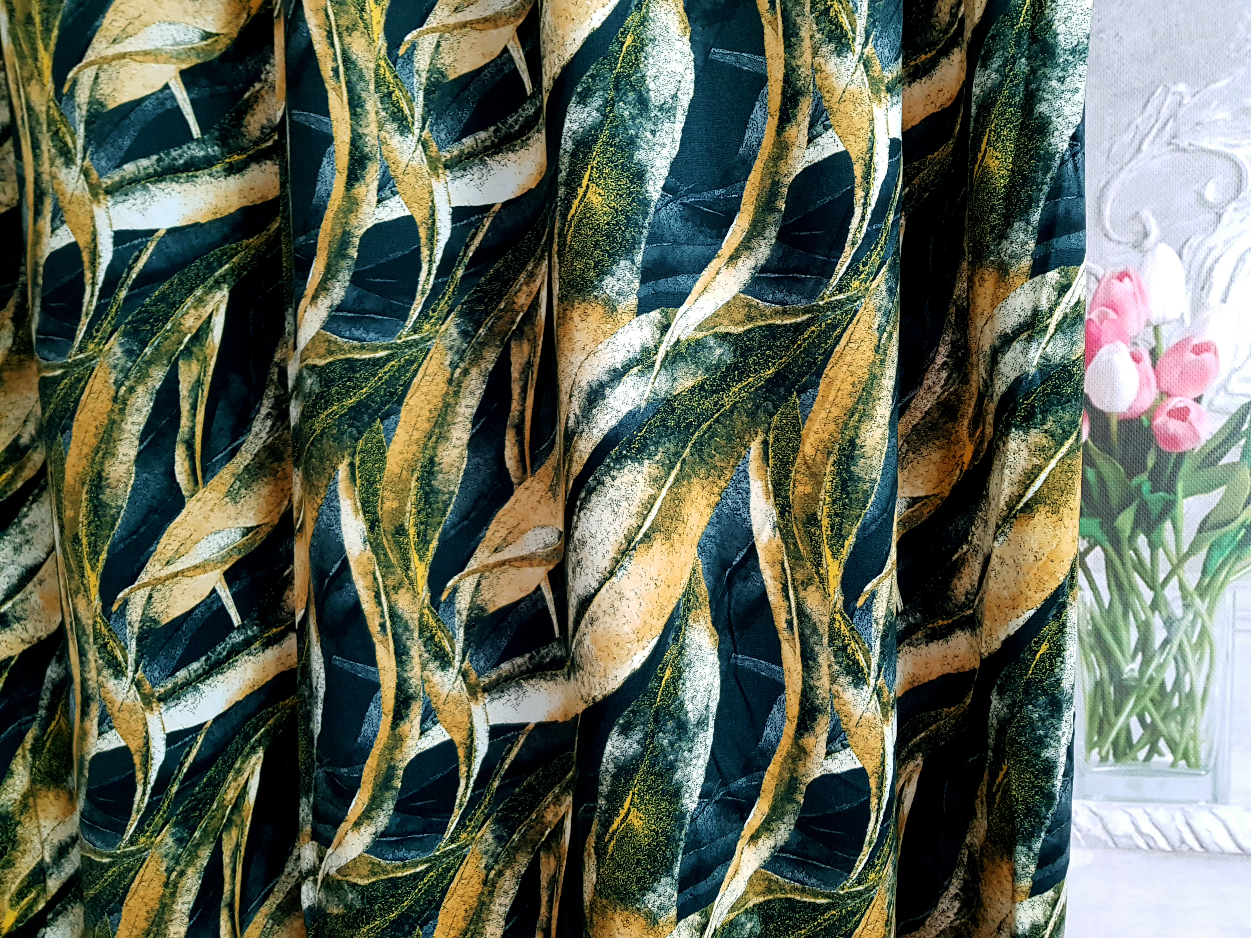 Zasłona z miękkiej tkaniny półzaciemniającej. Tkanina bardzo fajnie się układa.