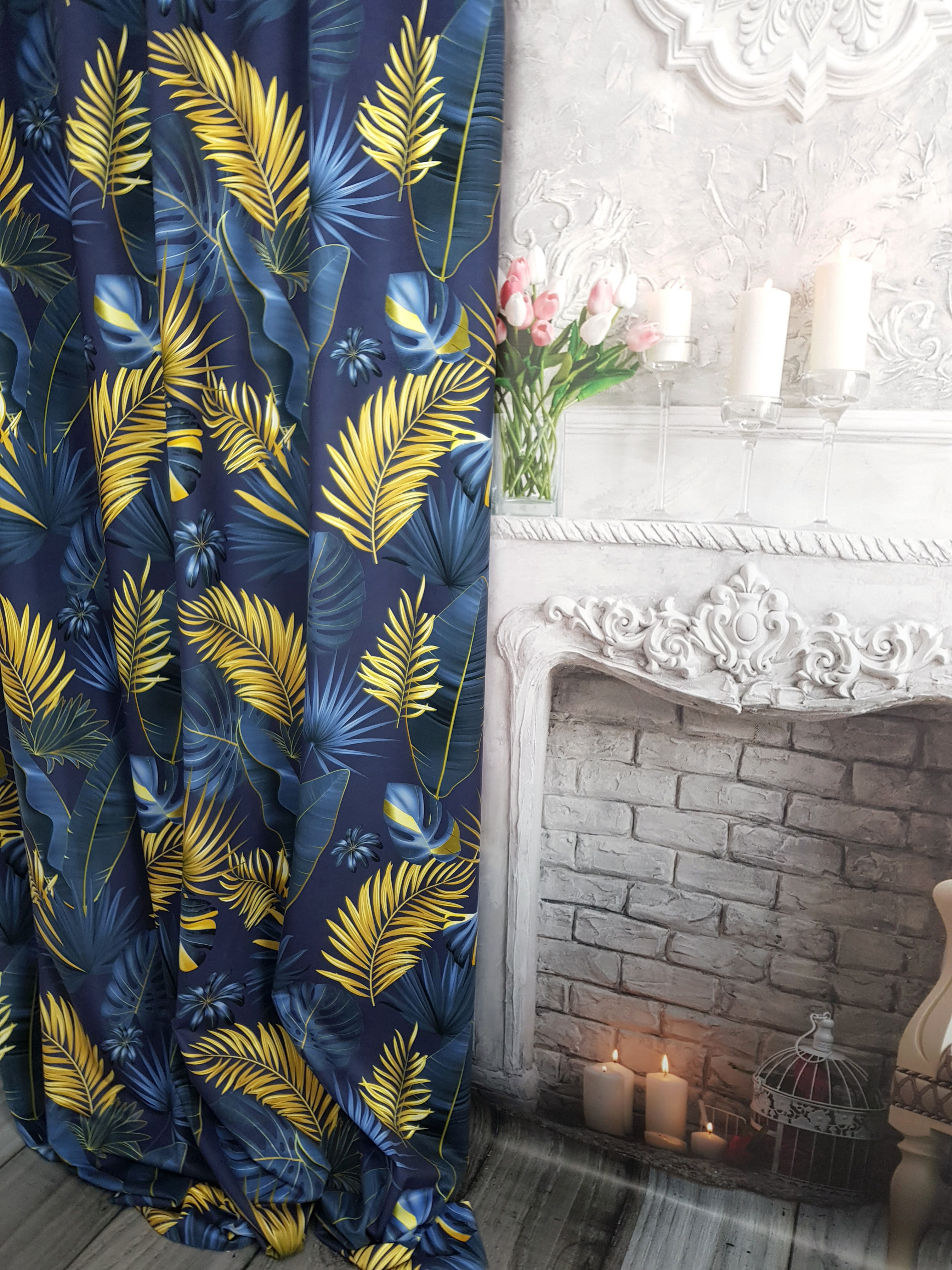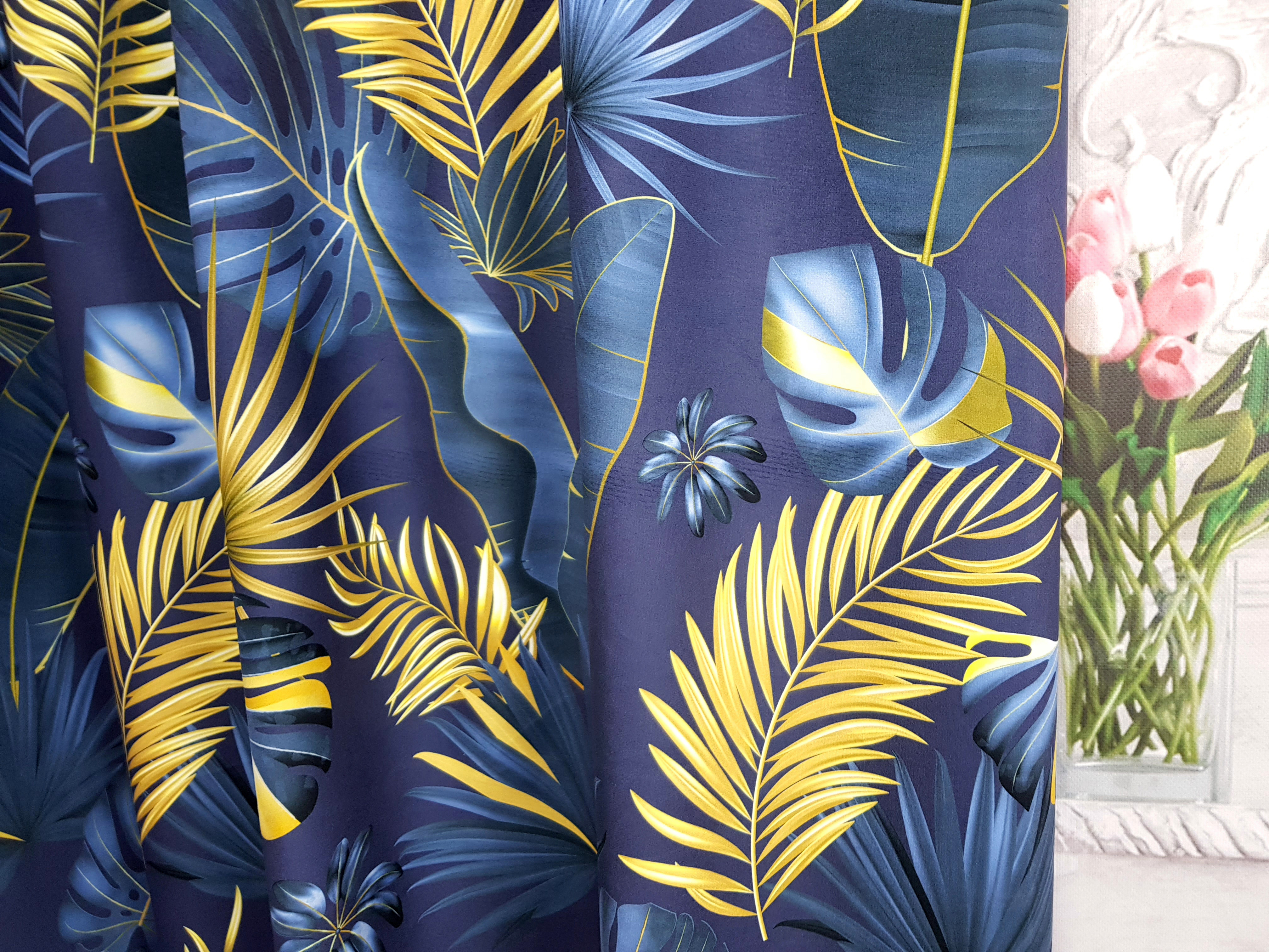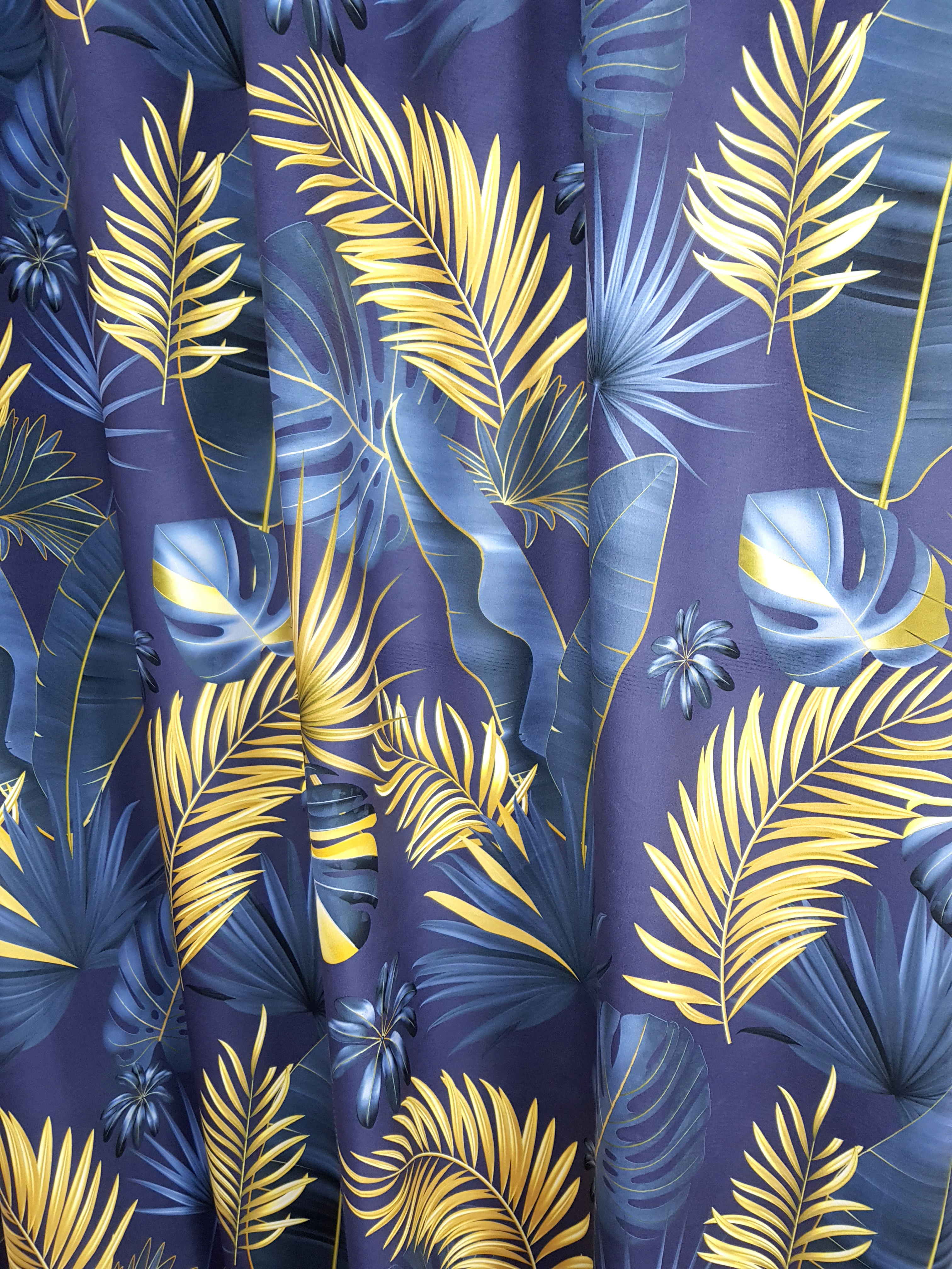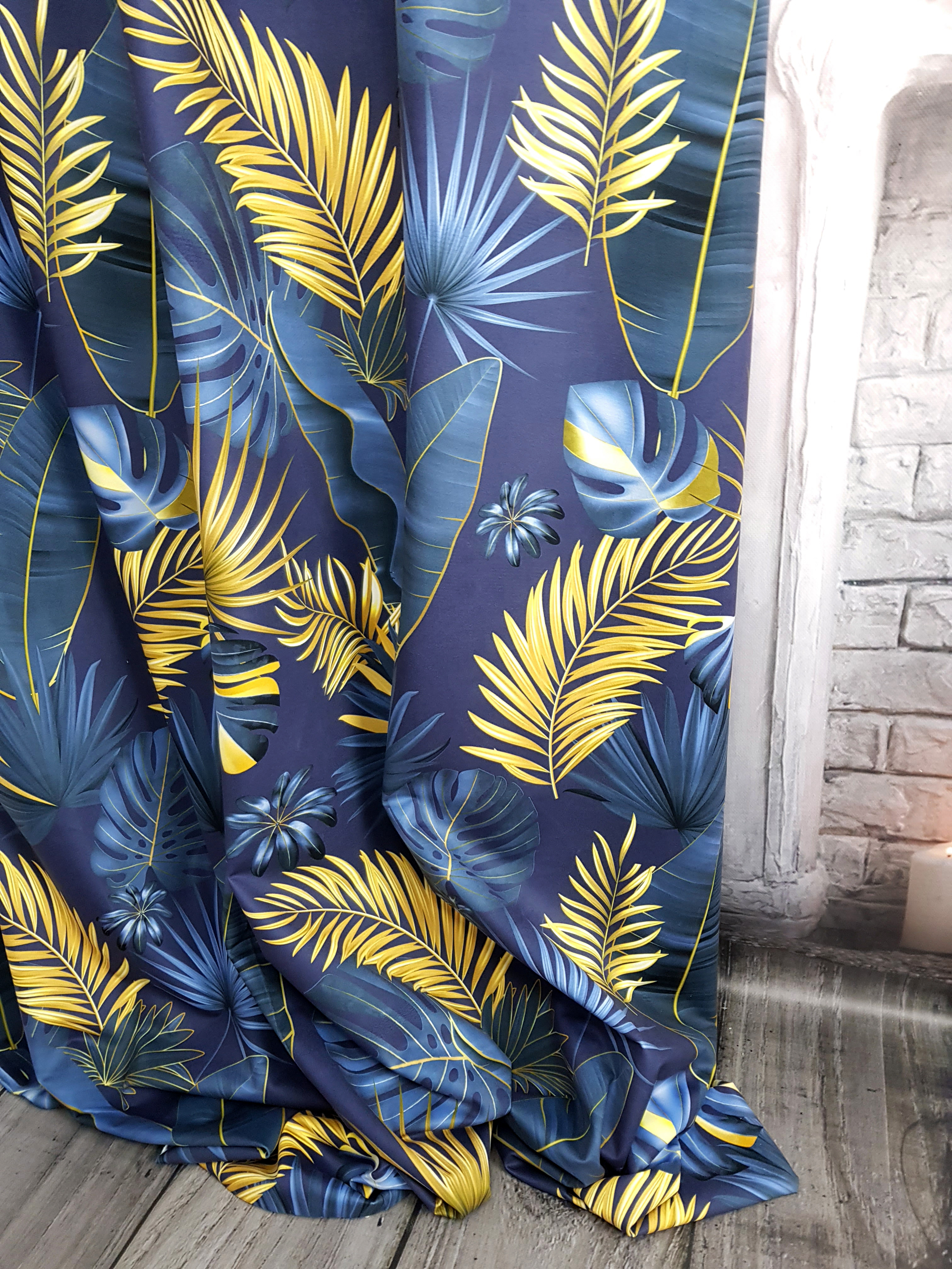 ZASŁONA ZŁOTE LIŚCIE NA NIEBIESKIM TLE SZER.140cm