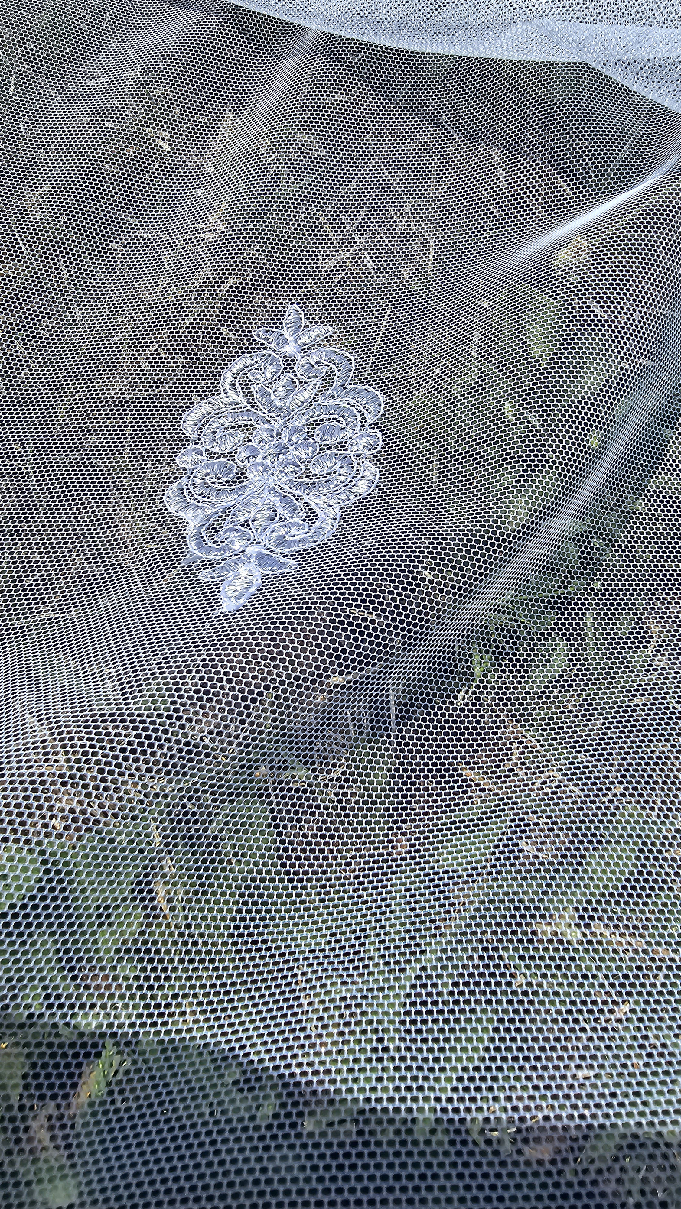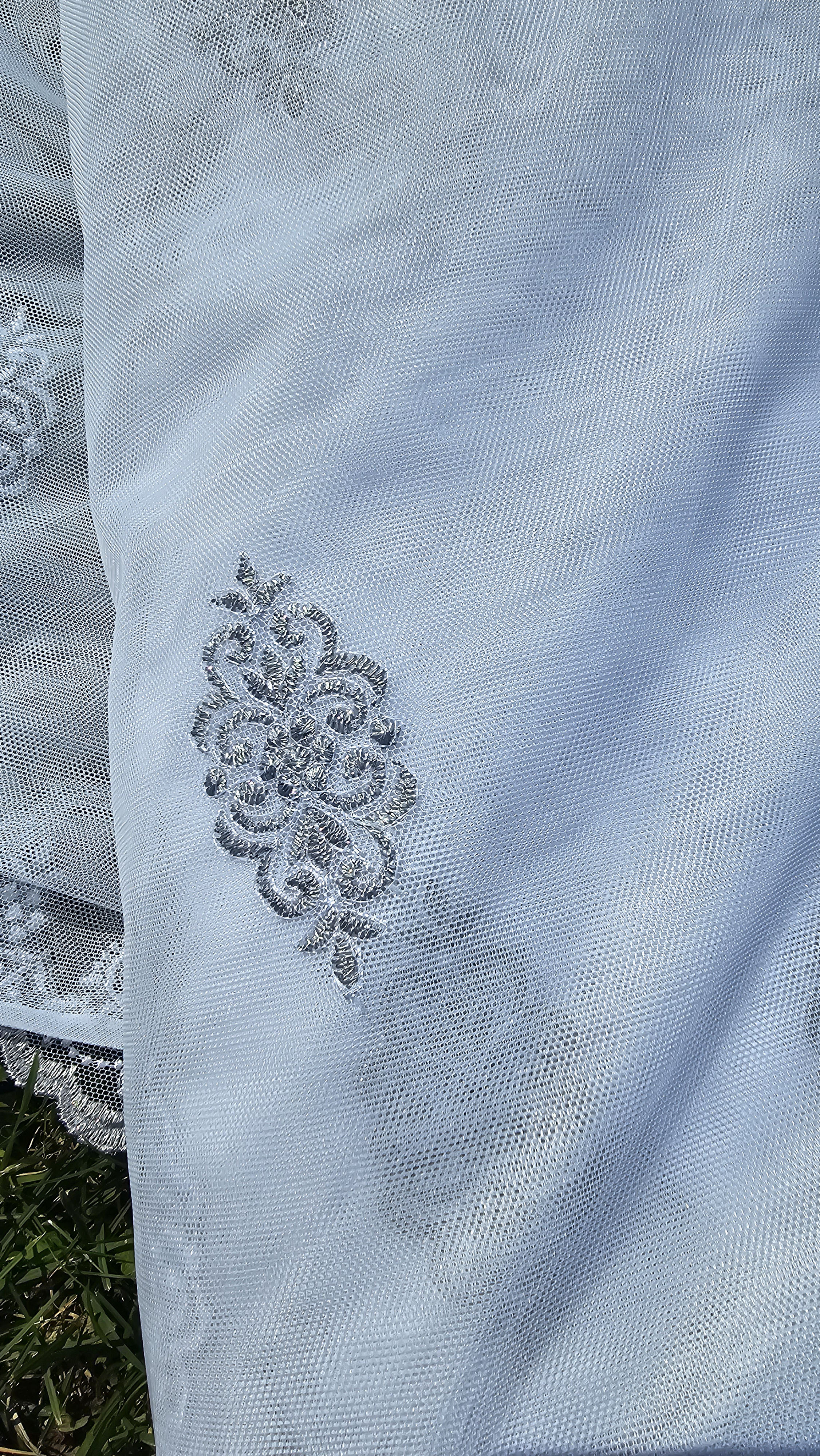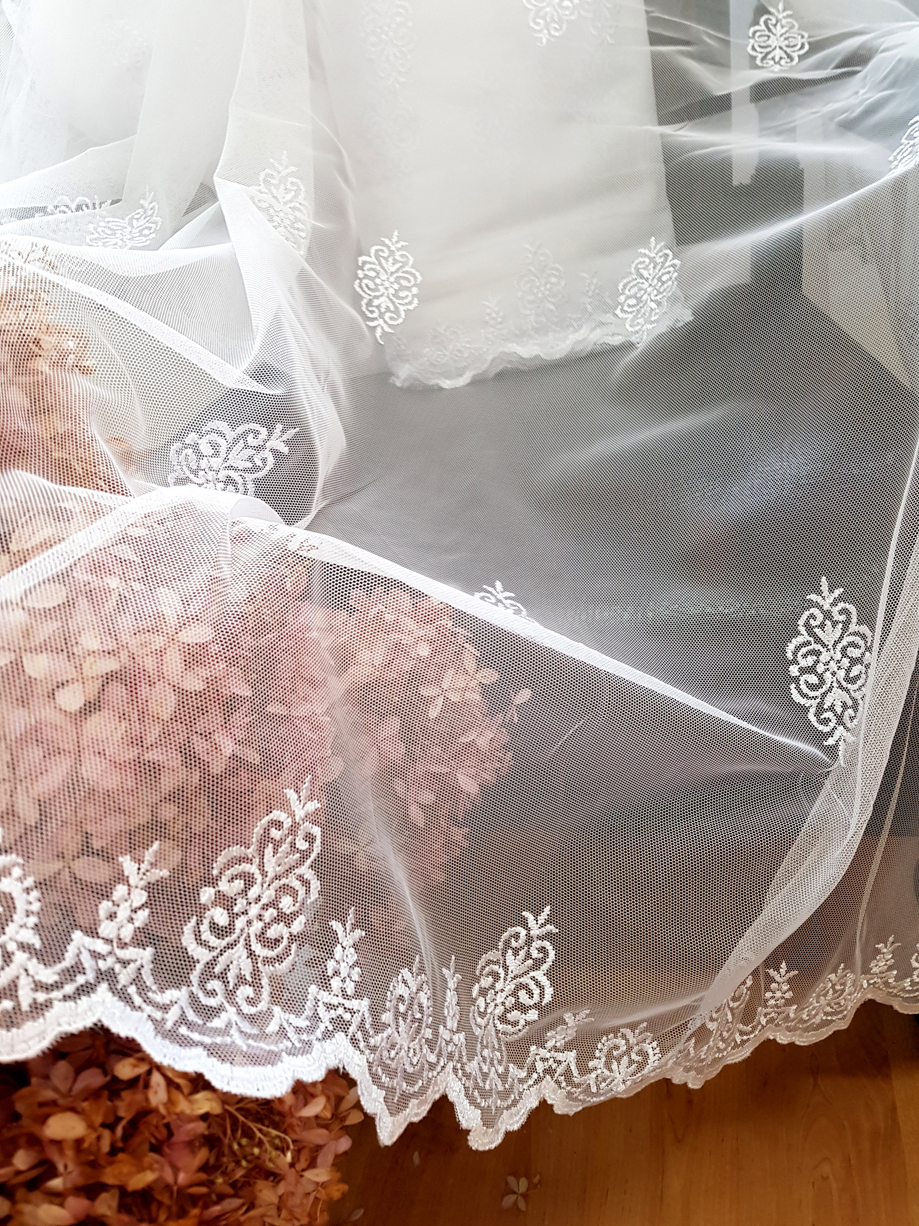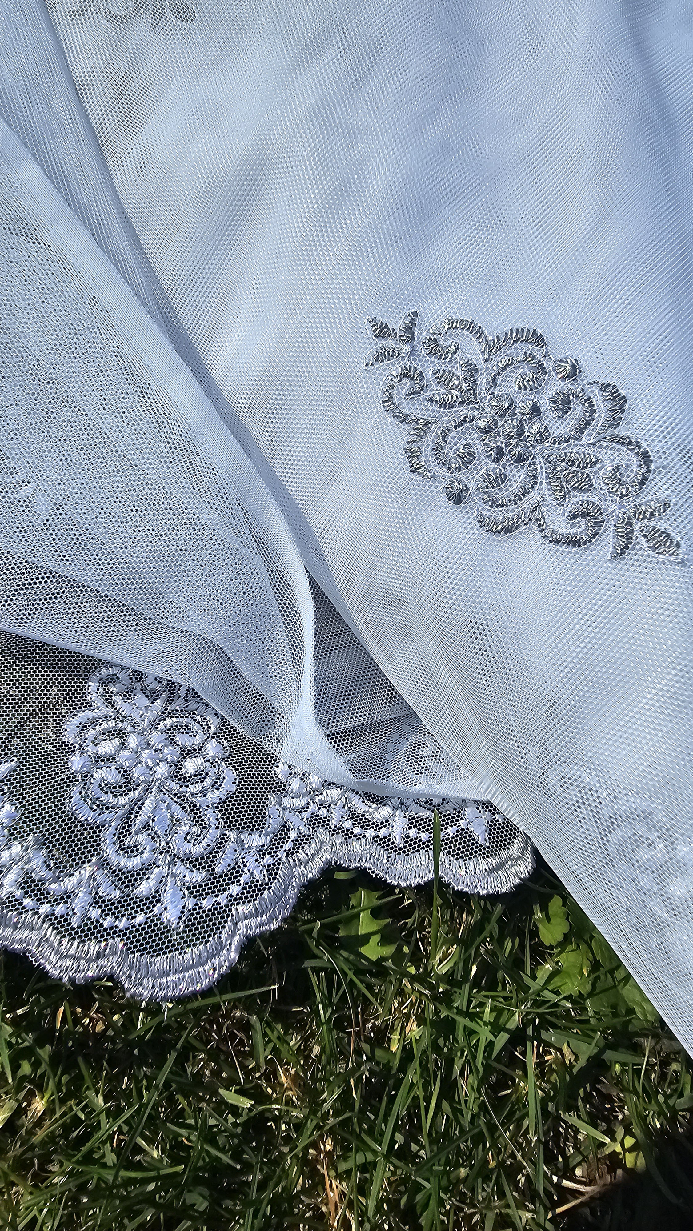 Firana przezroczysta haftowana siatka.