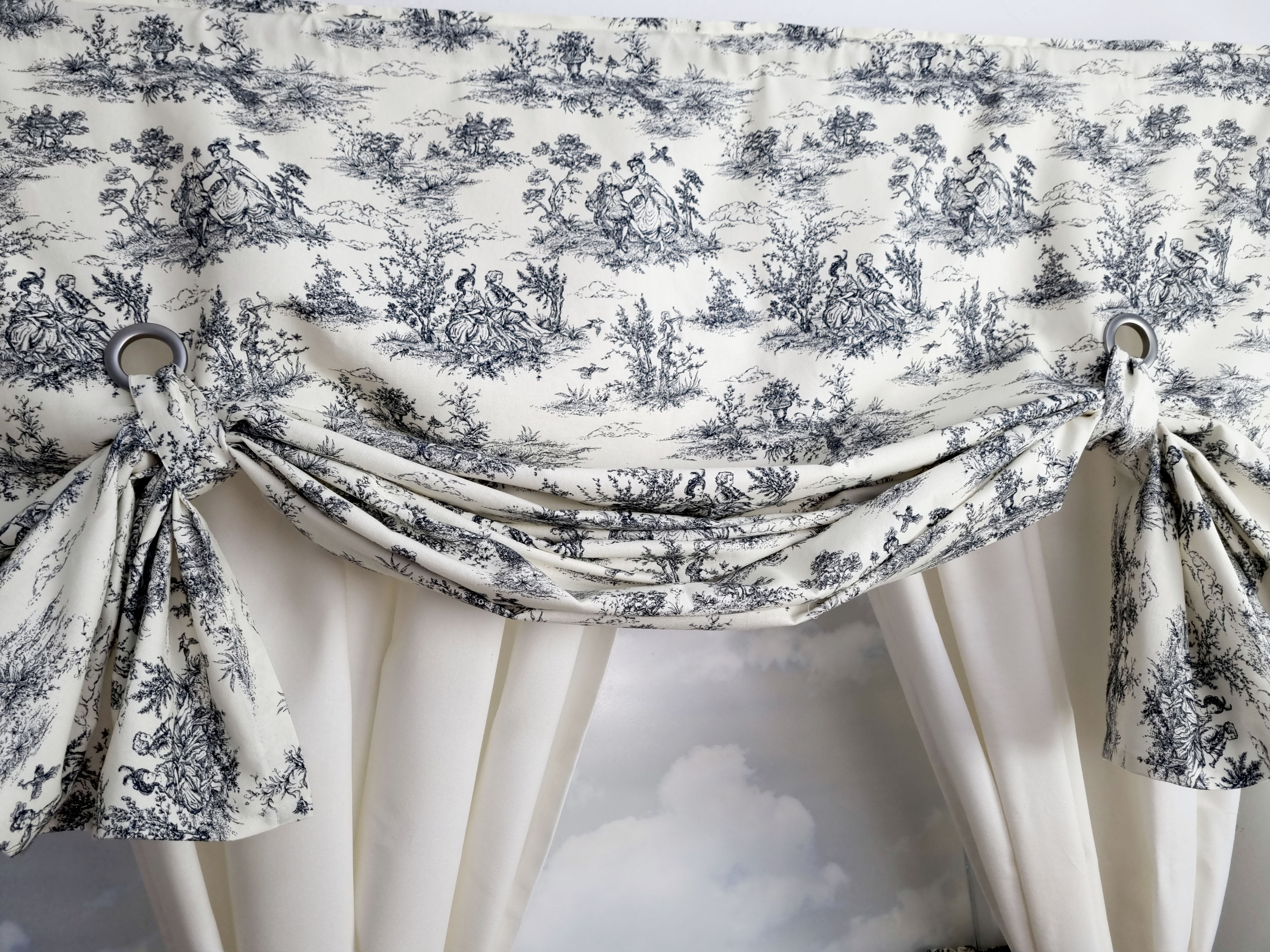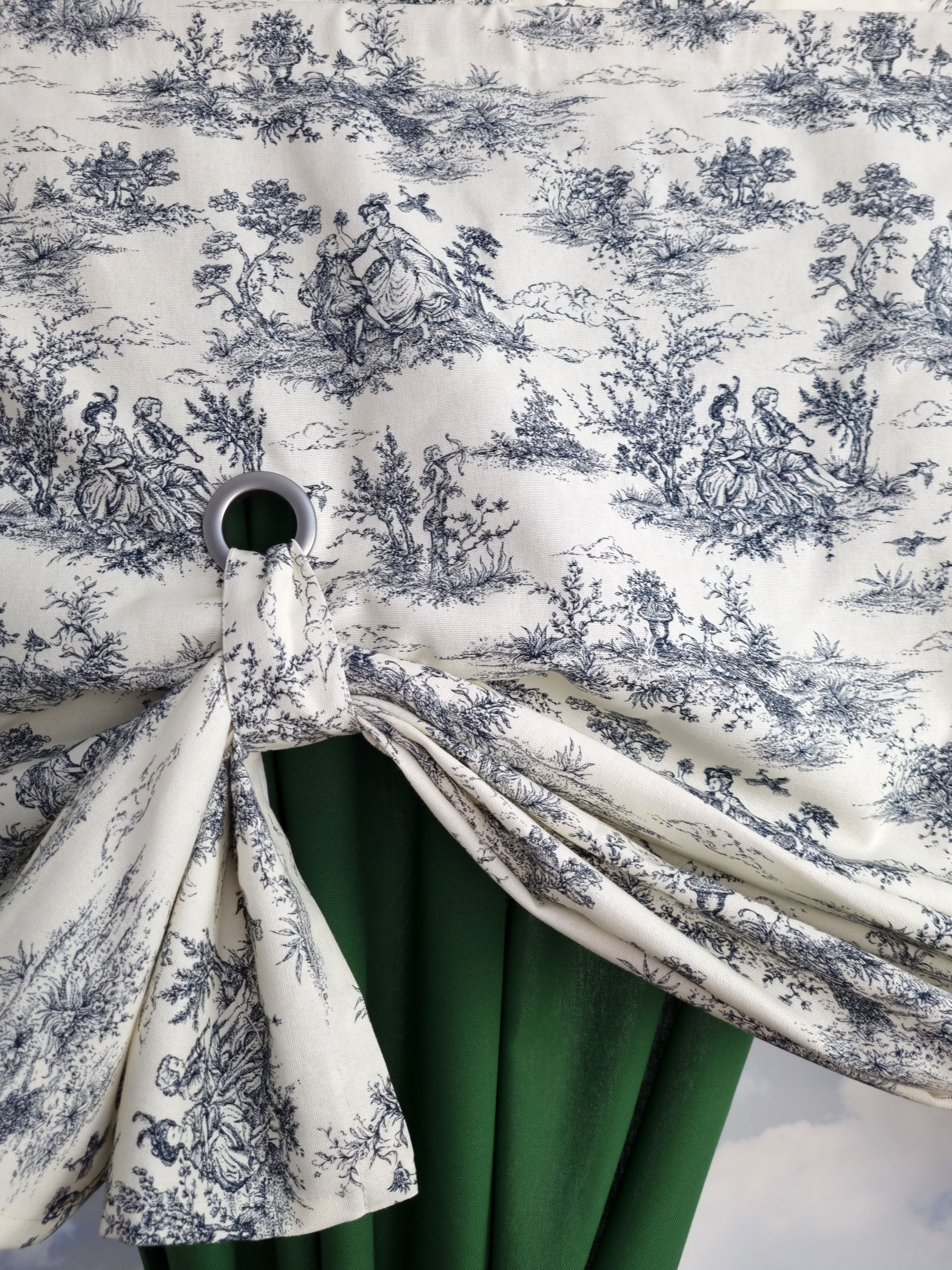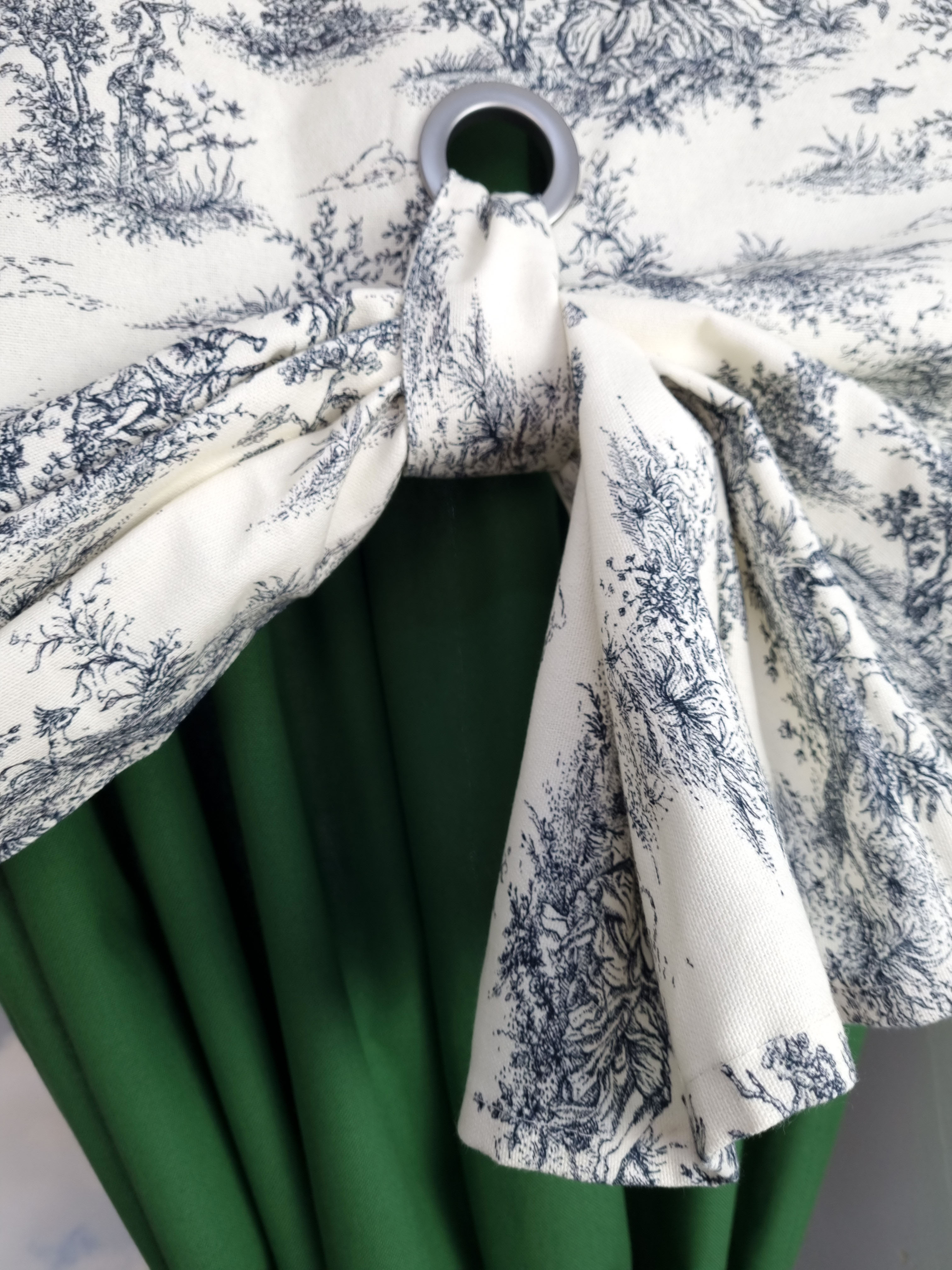Roletę podwija się do wysokości 35cm i podwiązuje paskami do przelotki.