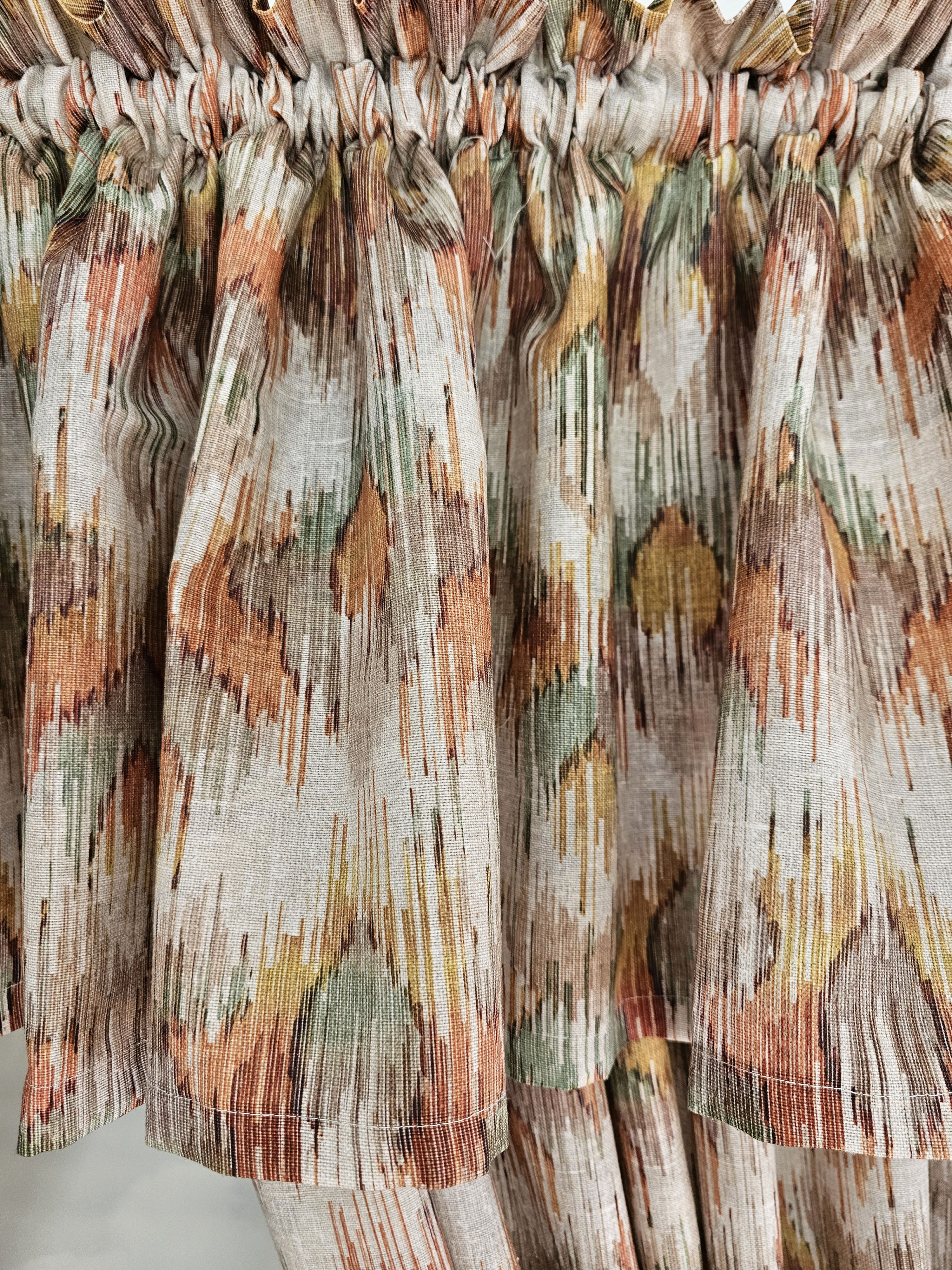 Szerokość: ustal szerokość, zmierz karnisz - okno i dodaj około 100%.