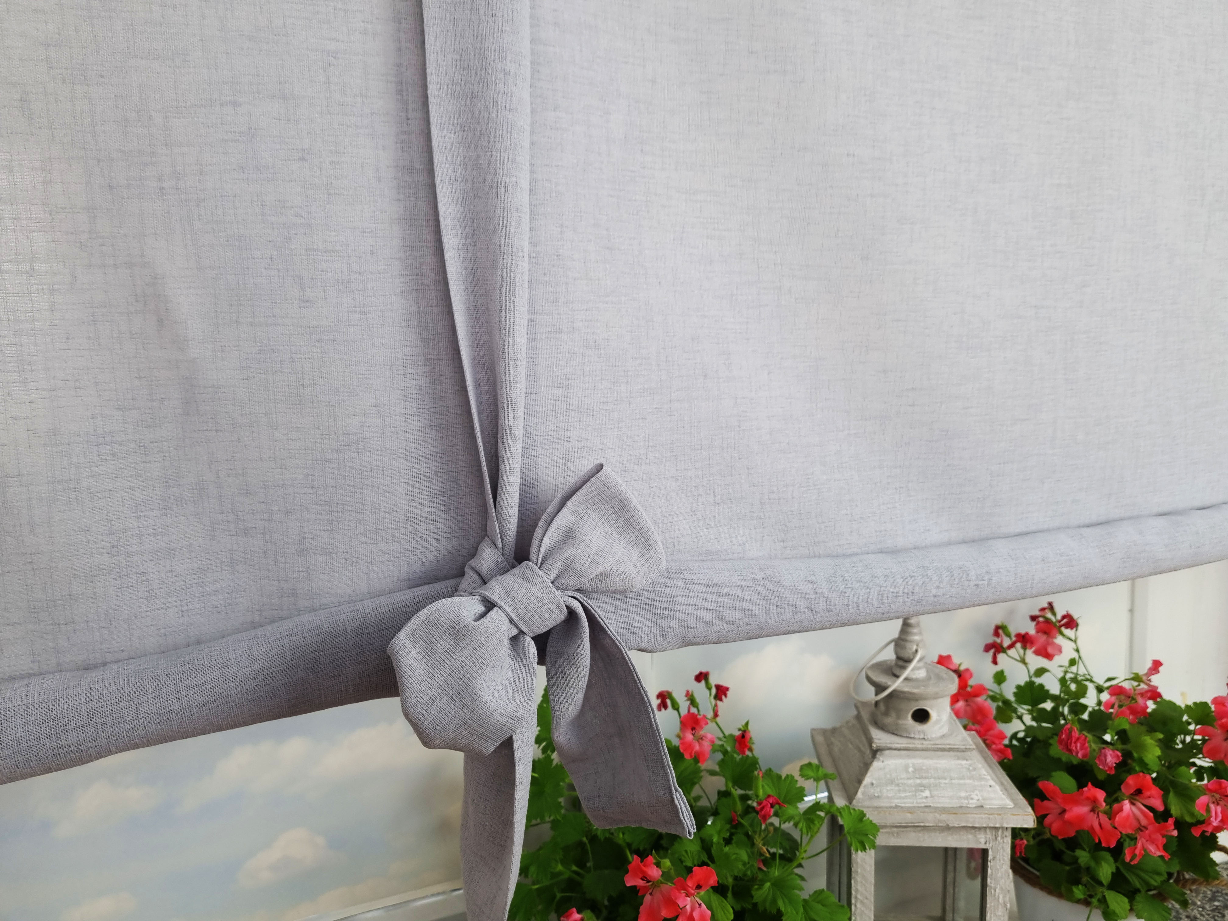 Roletę tubkę podwija się do dowolnej wysokości i podwiązuje paskami. W dolnej części rolety uszyty jest 3,5cm - 4cm tunel w który można włożyć pałąk prostokątny lub okrągły dzięki któremu roleta będzie bardziej sztywna.