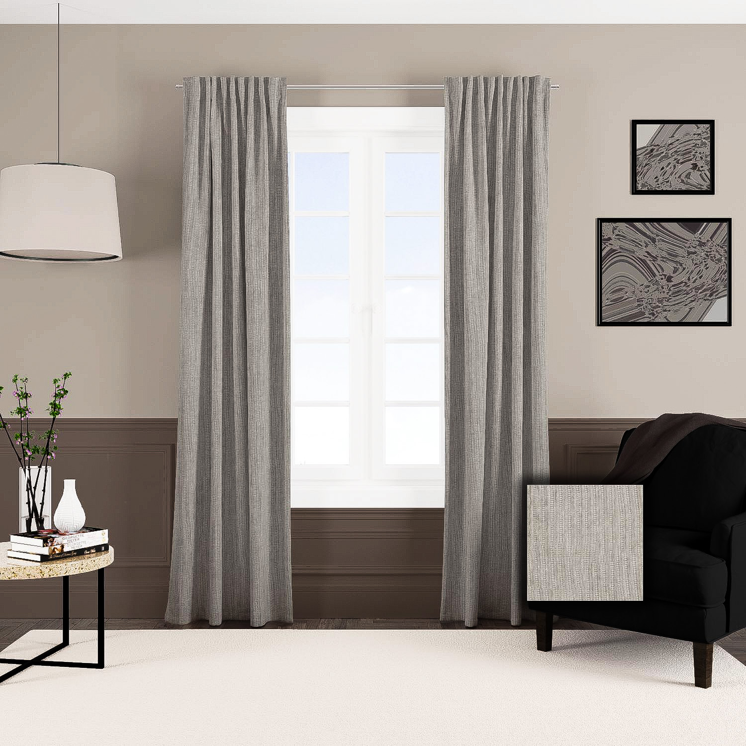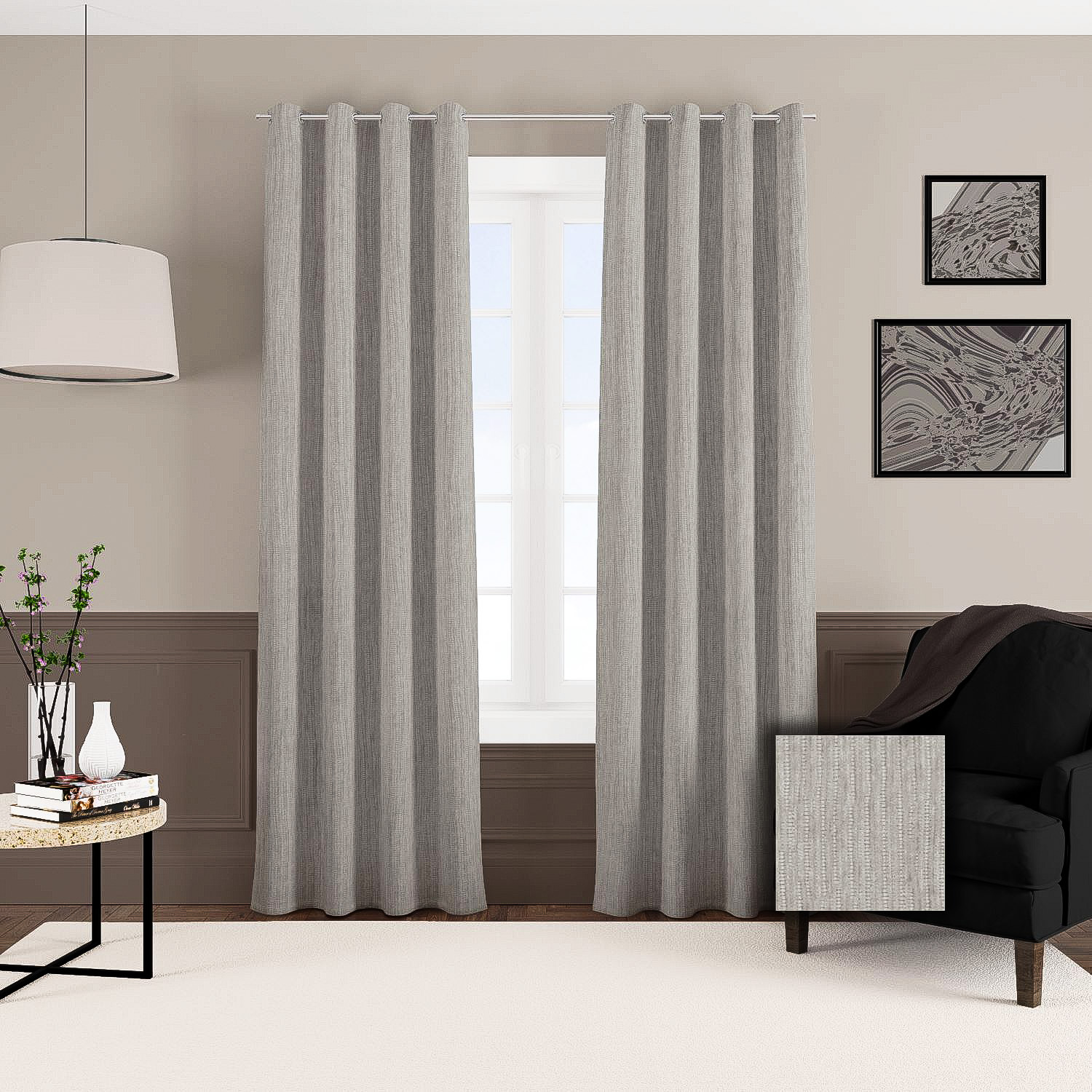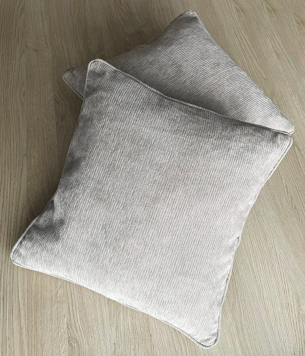 Zasłona z miękkiej tkaniny półzaciemniającej przypominjącej sztruks. Tkanina jest dość ciężka przez co bardzo fajnie się układa, jej dodatkową zaletą jest to że prawie sie nie gniecie. Bardzo przyjemna w dotyku więc nadaje sie też na poszewki i inne dekoracje.
