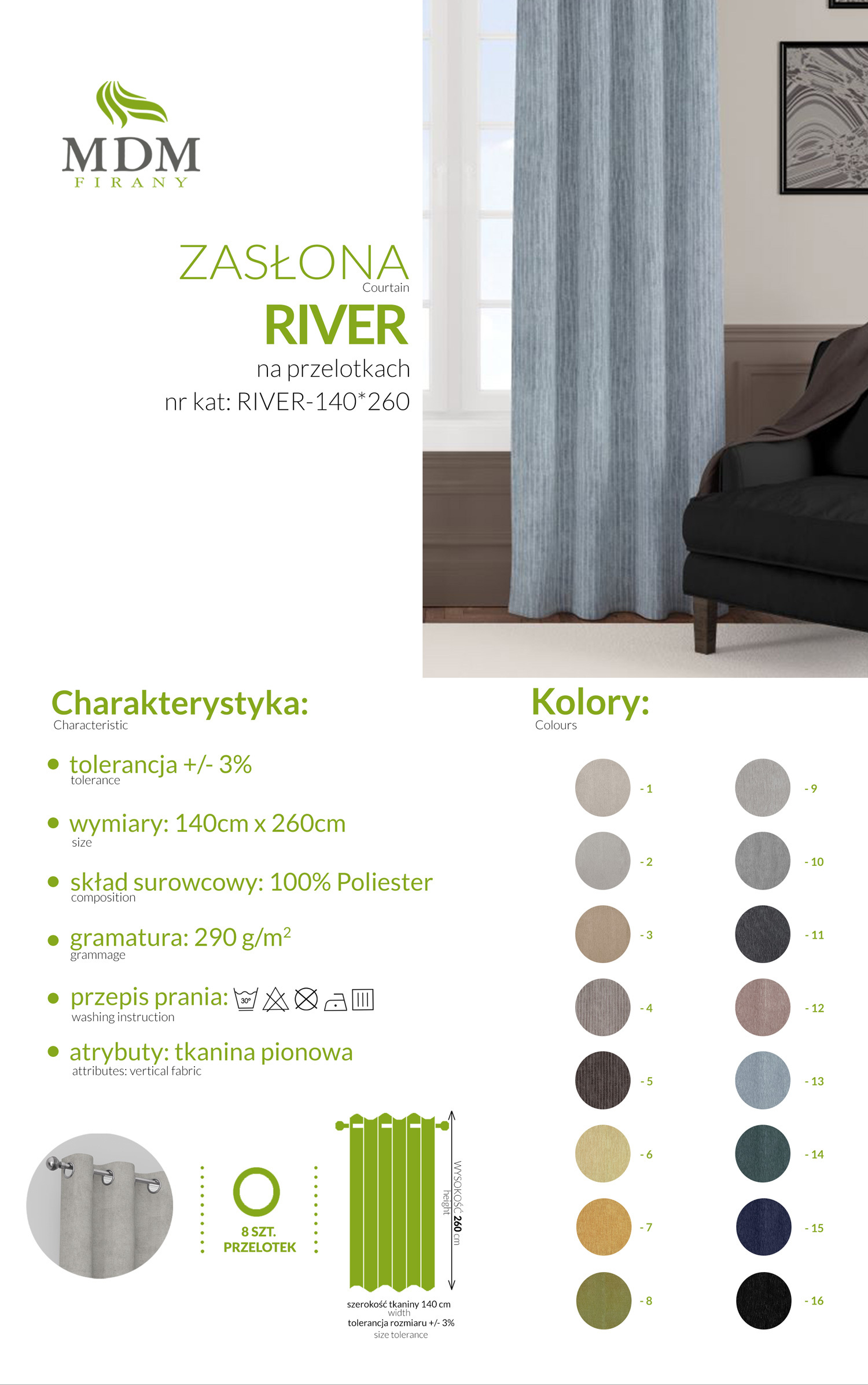 Cena jednej sztuki zasłony w wybranym wymiarze i zawieszeniu.