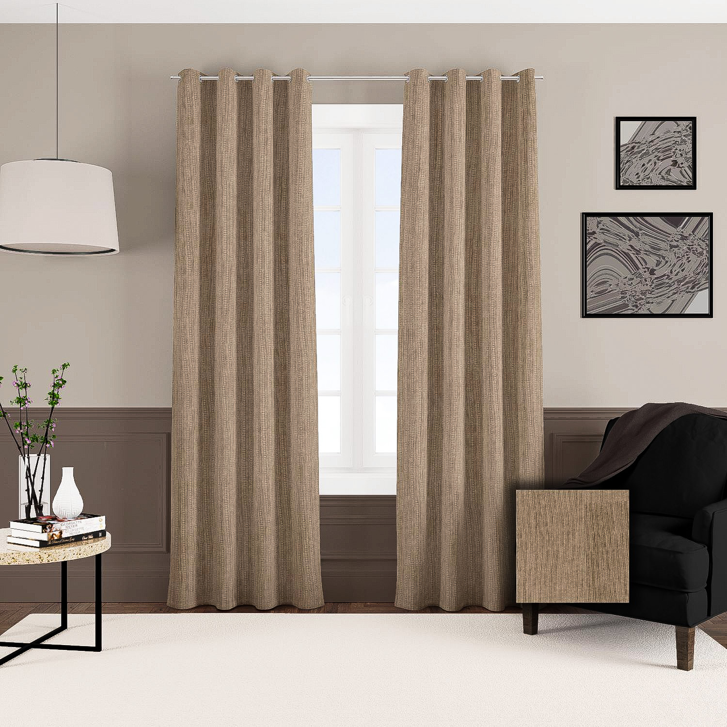 Zasłona z miękkiej tkaniny półzaciemniającej przypominjącej sztruks. Tkanina jest dość ciężka przez co bardzo fajnie się układa, jej dodatkową zaletą jest to że prawie sie nie gniecie. Bardzo przyjemna w dotyku więc nadaje sie też na poszewki i inne dekoracje.