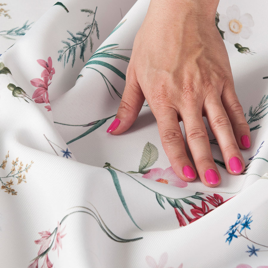 Prasowanie: Tkaninę  prasujemy po lewej stronie materiału z podłożonym ręcznikiem, lekko rozgrzanym żelazkiem z użyciem pary.