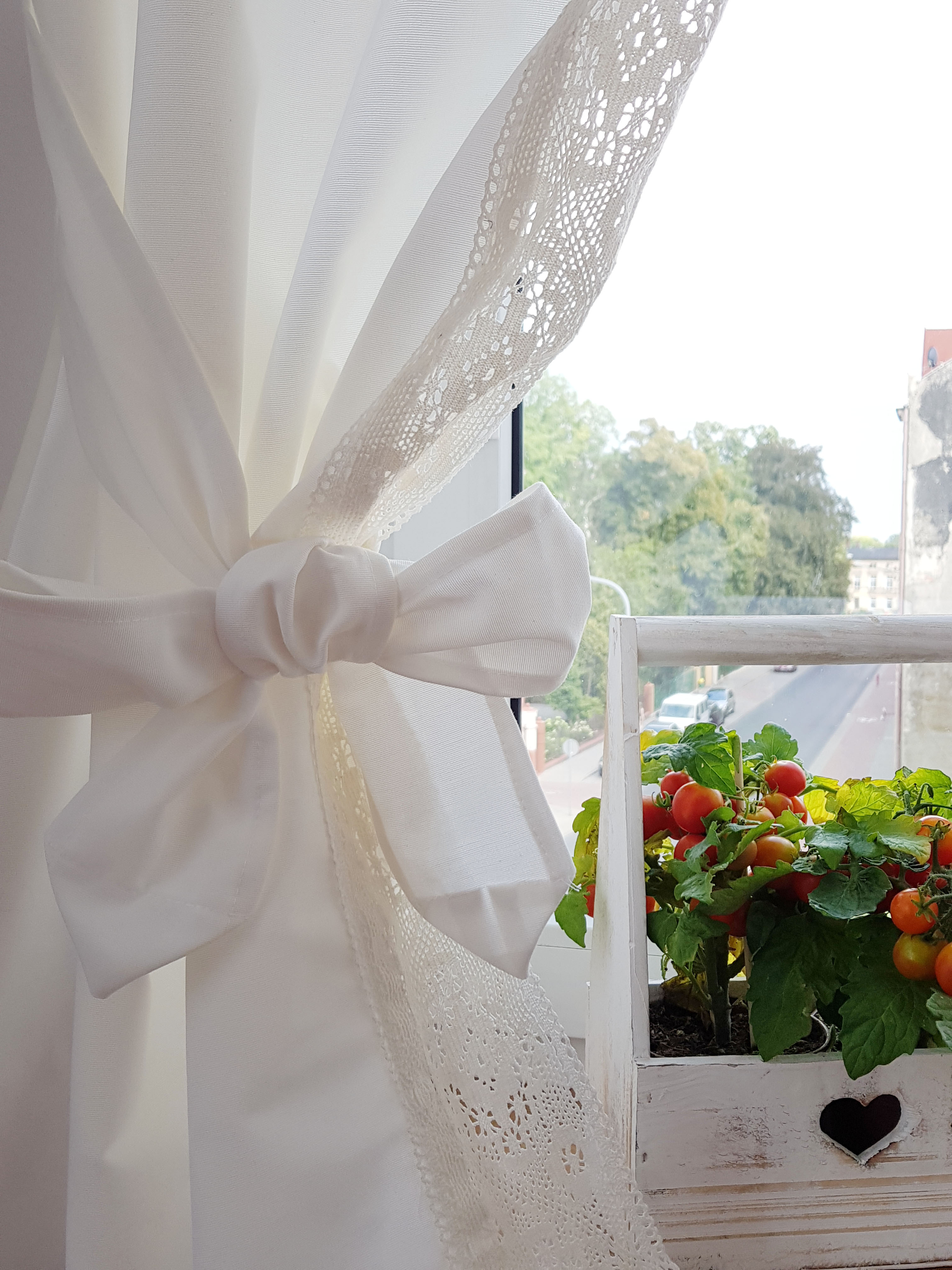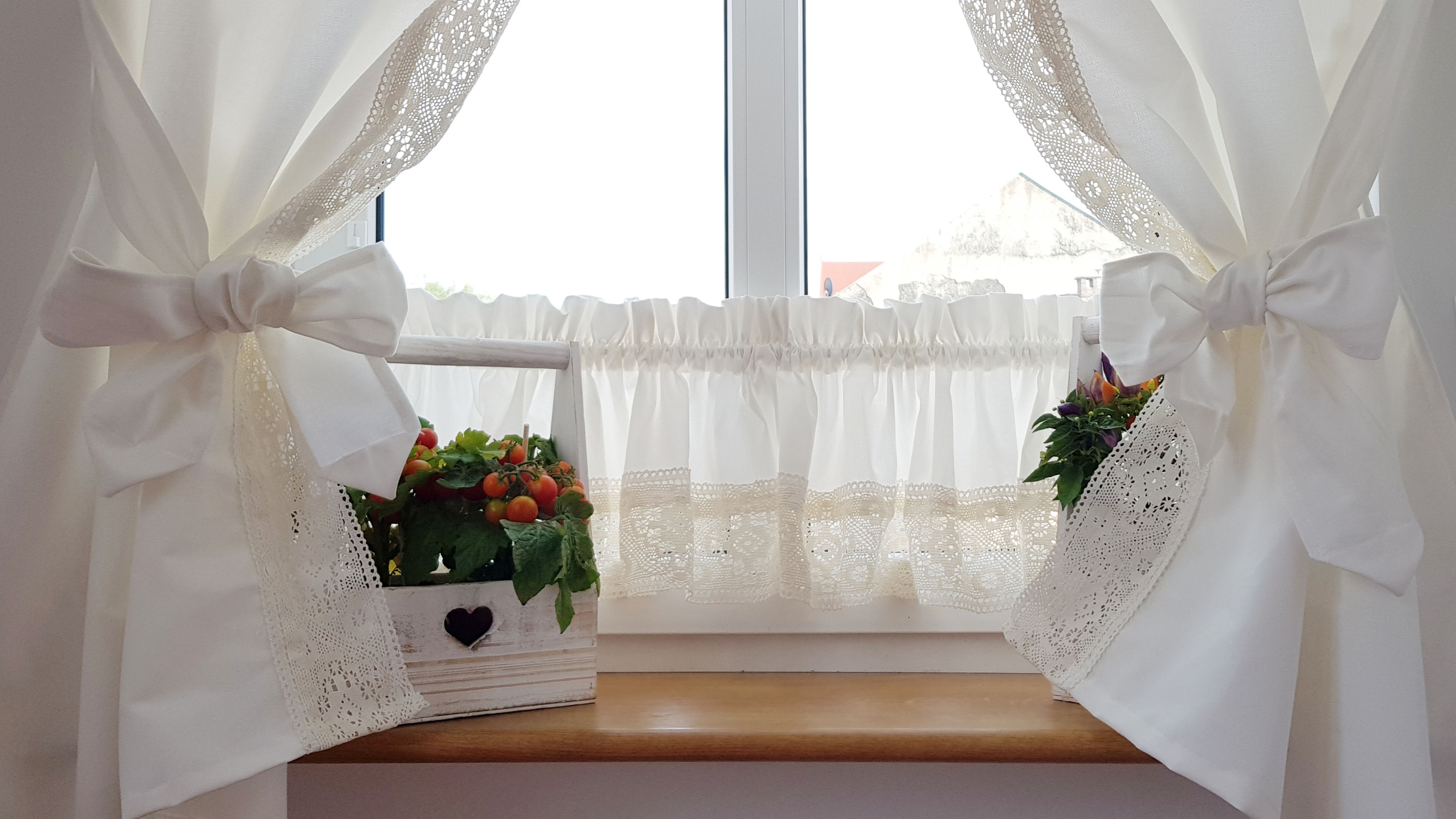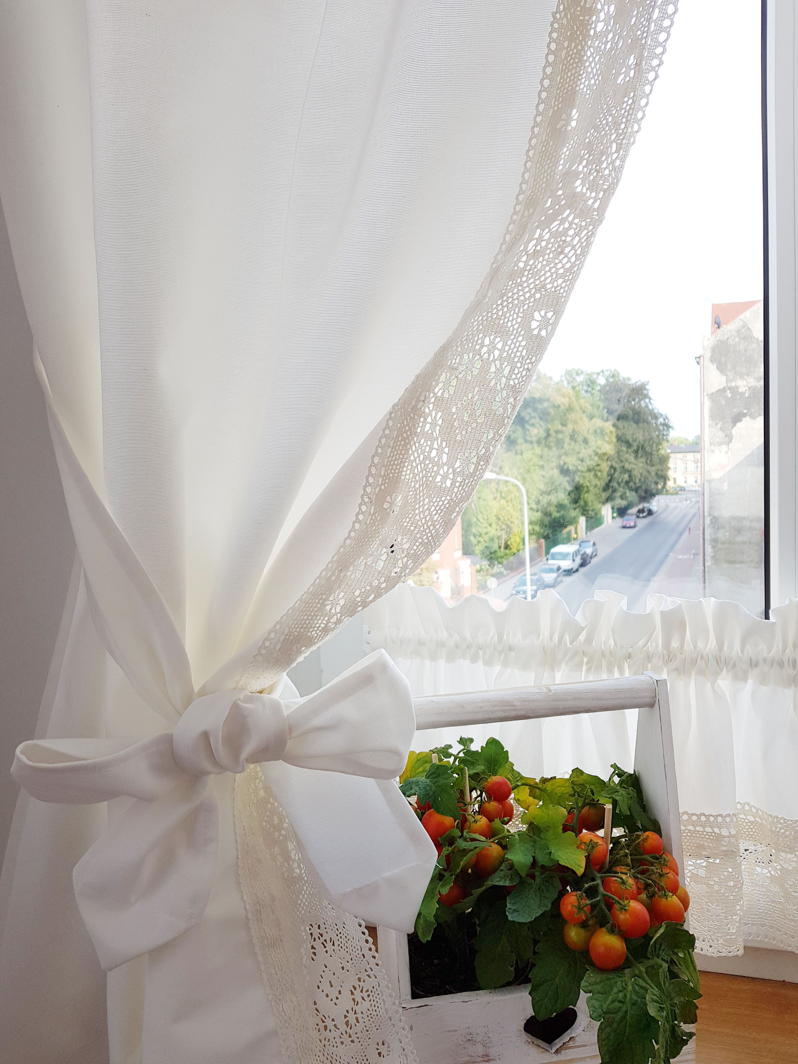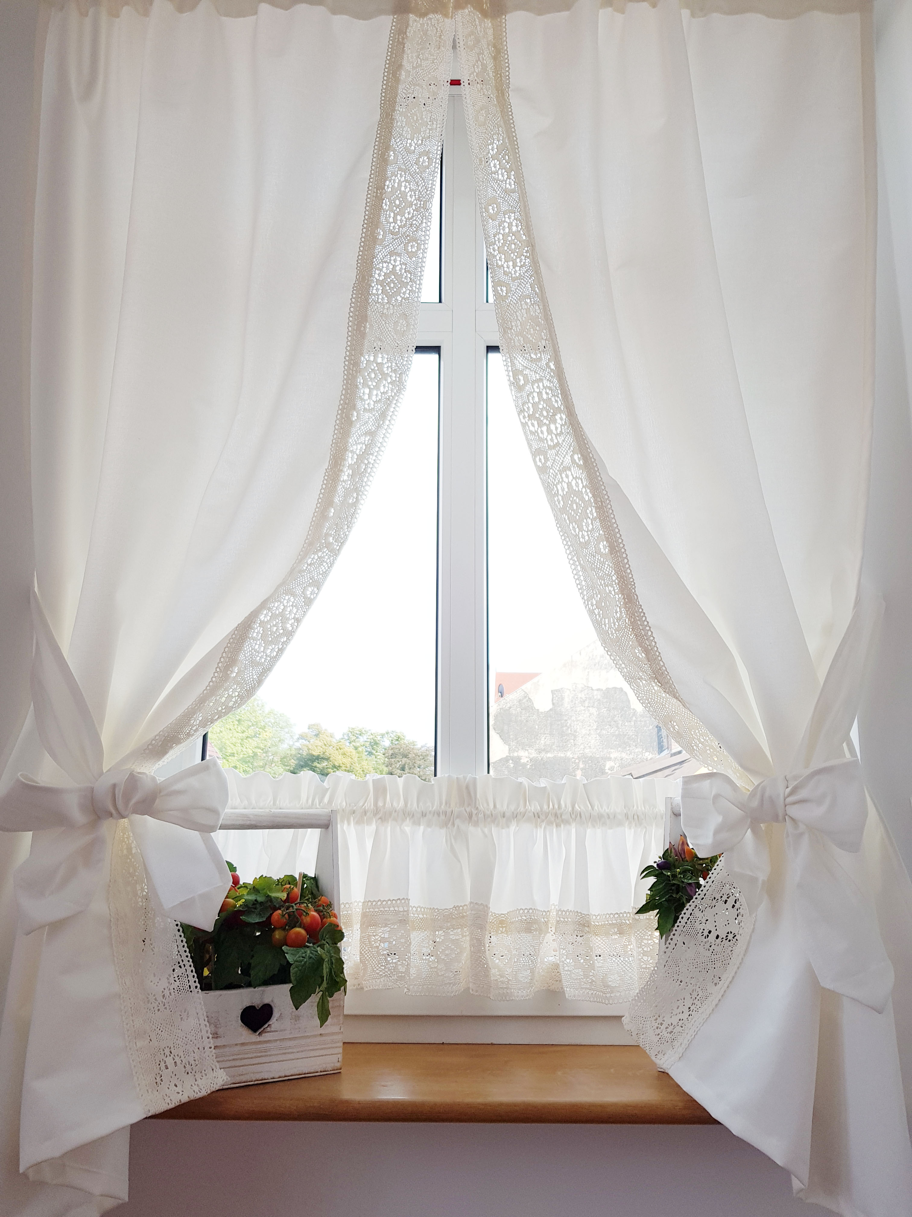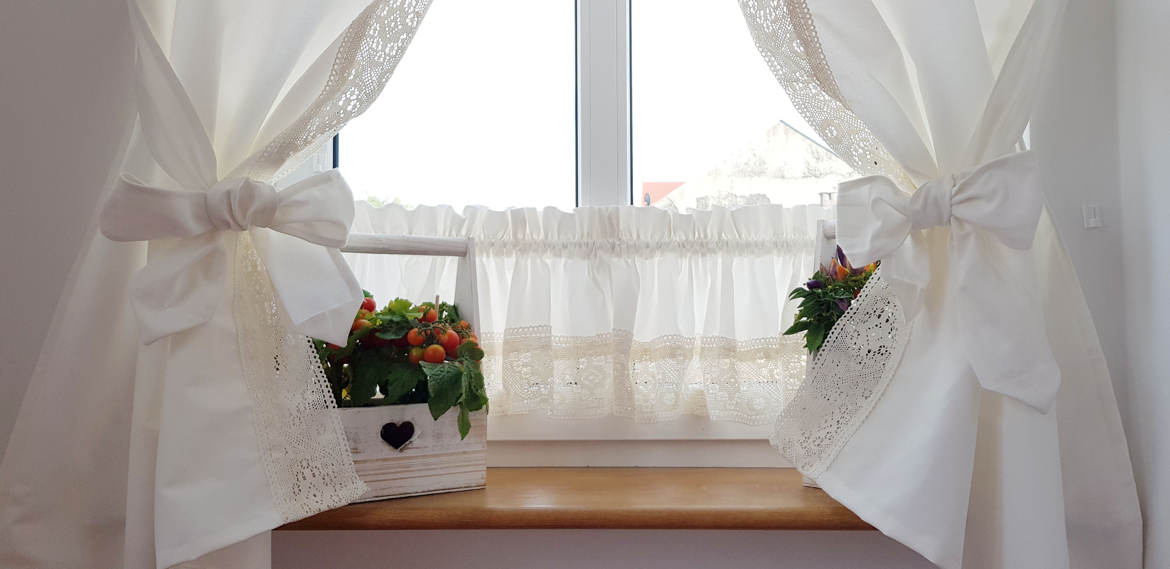 Zestaw zasłon+zazdrostka shabby chic mleczna biel