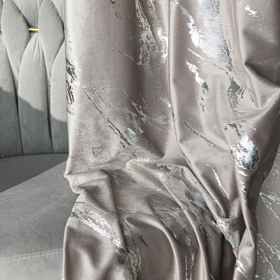 ZASŁONA MARMA NADRUK SREBRO/SZAROBEŻOWY DO 300CM
