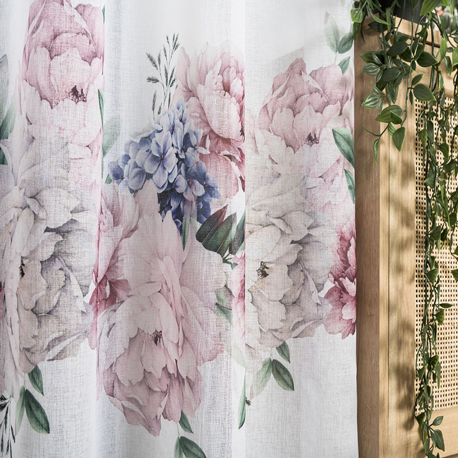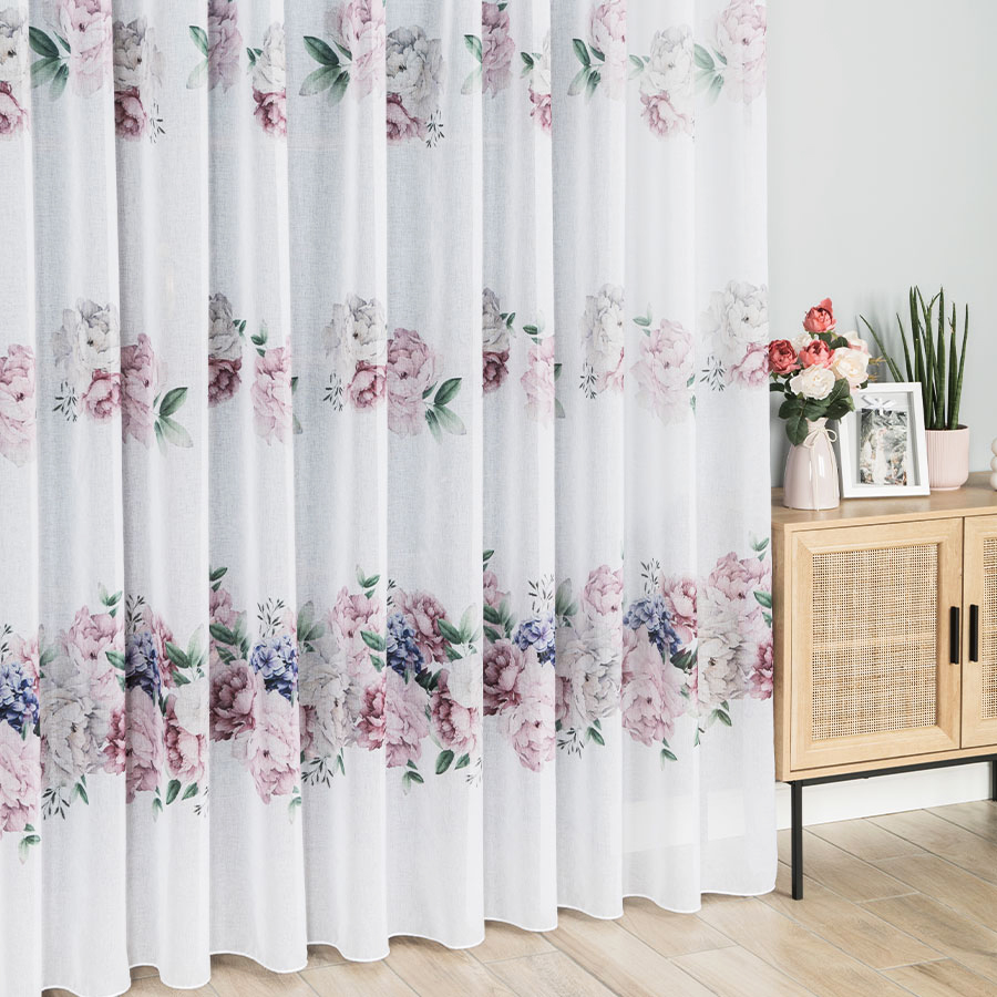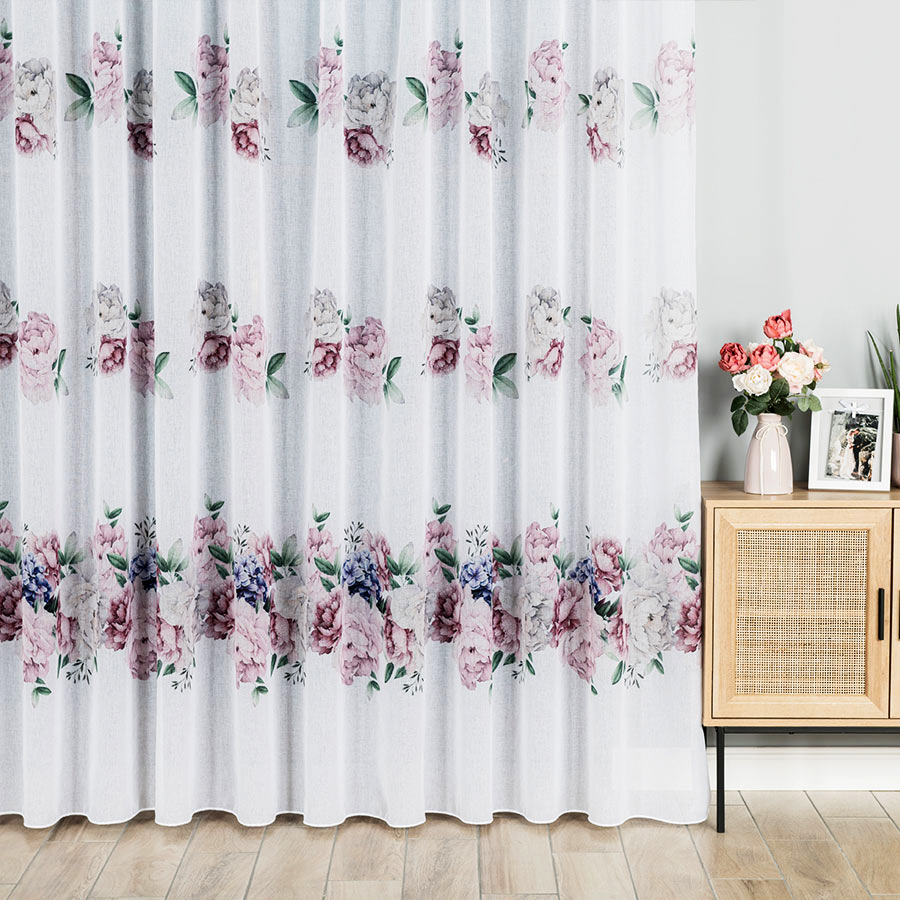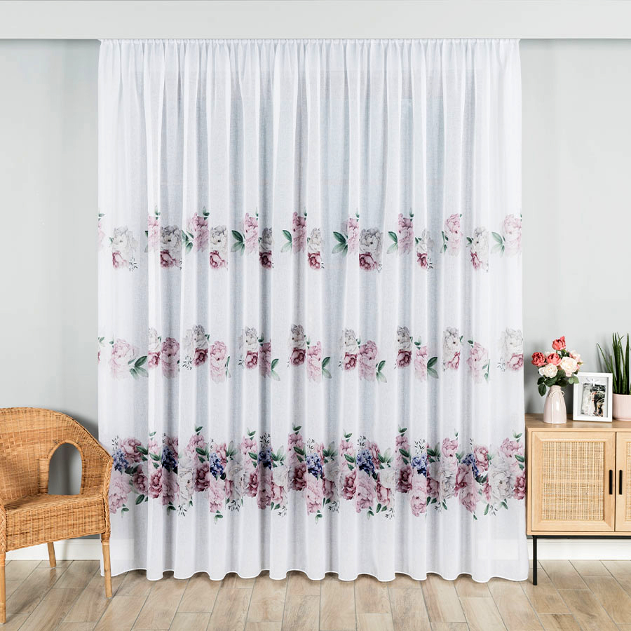 Firana przezroczysta etamina z kolorowym wzorem na dole.