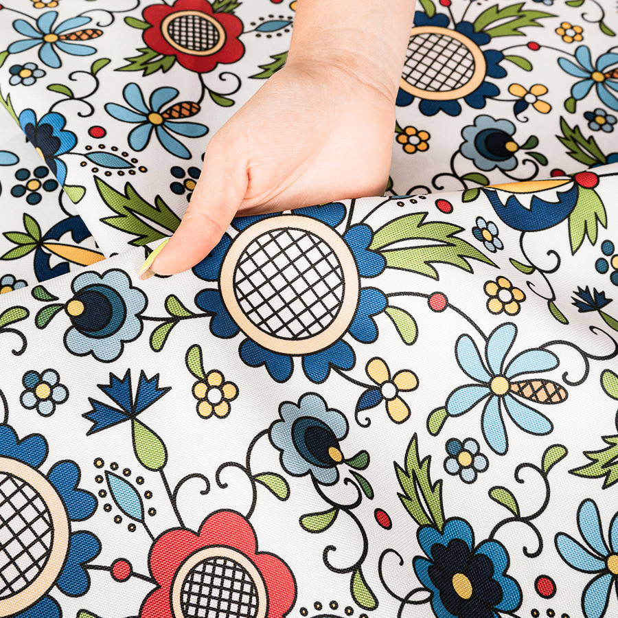 Prasowanie: Tkaninę prasujemy po lewej stronie materiału z podłożonym ręcznikiem, lekko rozgrzanym żelazkiem z użyciem pary.