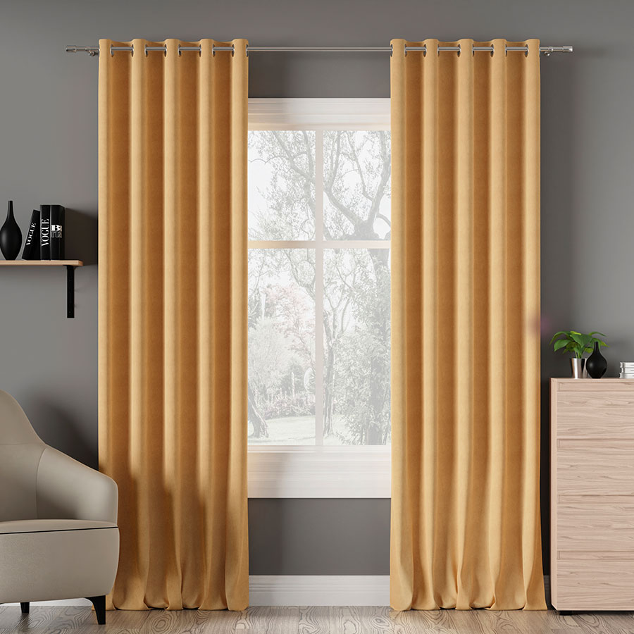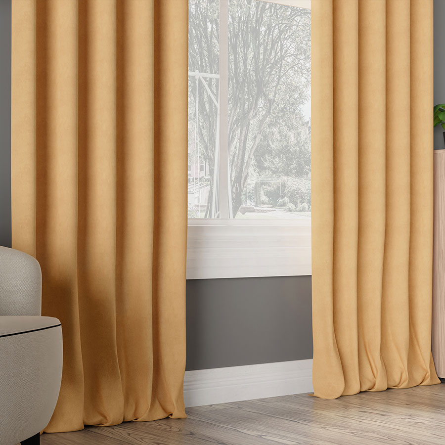 Zasłona z miękkiej tkaniny półzaciemniającej. Tkanina jest dość ciężka przez co bardzo fajnie się układa, jej dodatkową zaletą jest to że prawie sie nie gniecie. Bardzo przyjemna w dotyku więc nadaje sie też na poszewki i inne dekoracje.