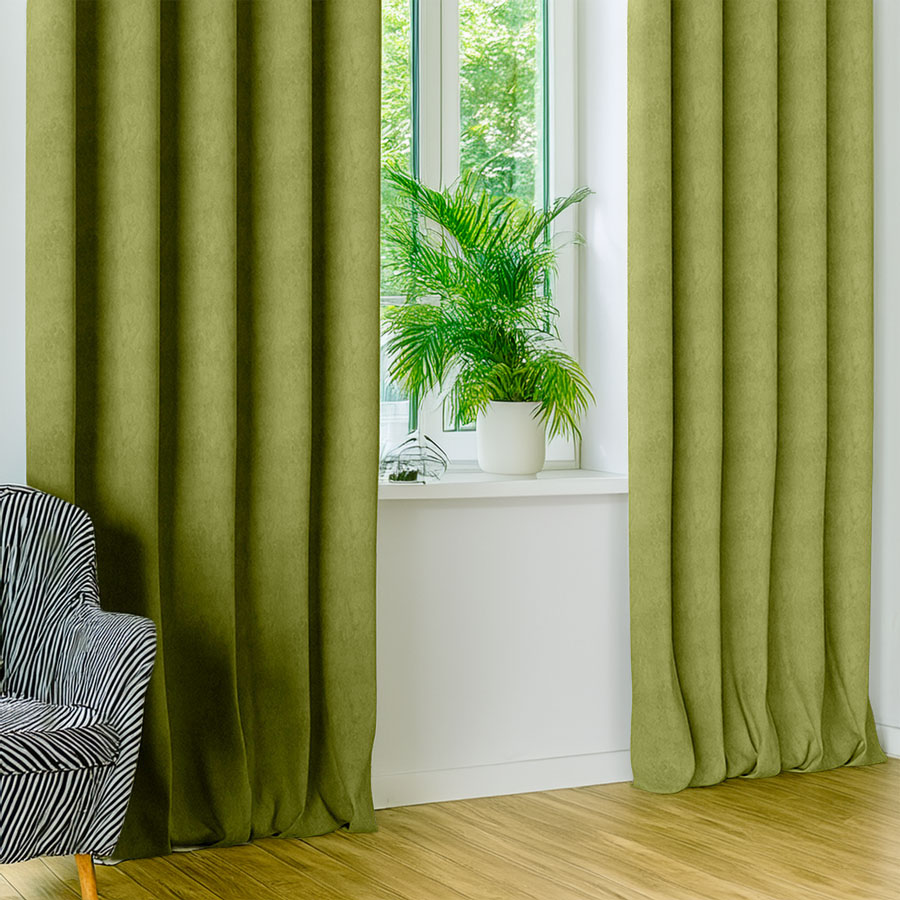 Zasłona z miękkiej tkaniny półzaciemniającej. Tkanina jest dość ciężka przez co bardzo fajnie się układa, jej dodatkową zaletą jest to że prawie sie nie gniecie. Bardzo przyjemna w dotyku więc nadaje sie też na poszewki i inne dekoracje.