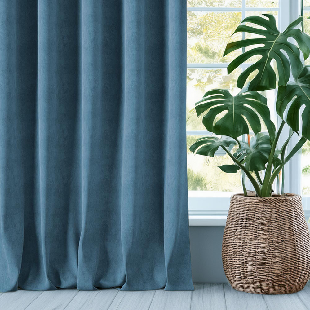 Zasłona z miękkiej tkaniny półzaciemniającej. Tkanina jest dość ciężka przez co bardzo fajnie się układa, jej dodatkową zaletą jest to że prawie sie nie gniecie. Bardzo przyjemna w dotyku więc nadaje sie też na poszewki i inne dekoracje.