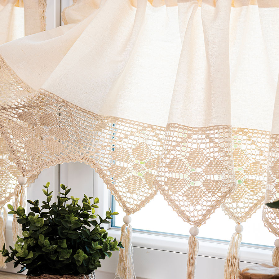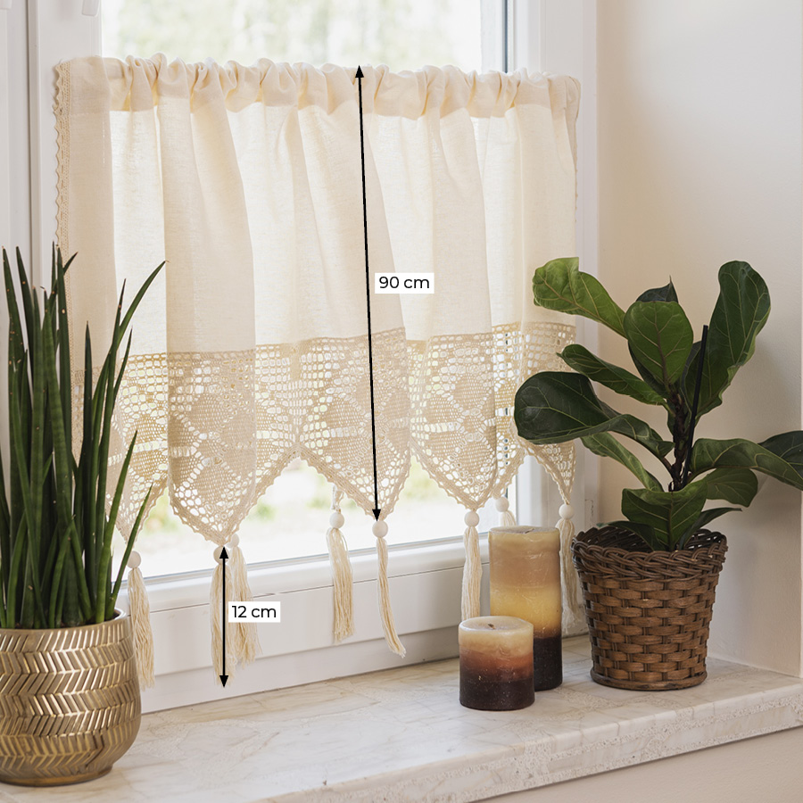 Zazdrostka kuchenna z ażurem doskonale sprawdzi się jako ozdoba okna w kuchni. Delikatna koroneczka z chwostem wprowadzi do kuchni nutę romantyzmu i przytulności, tworząc klimat.