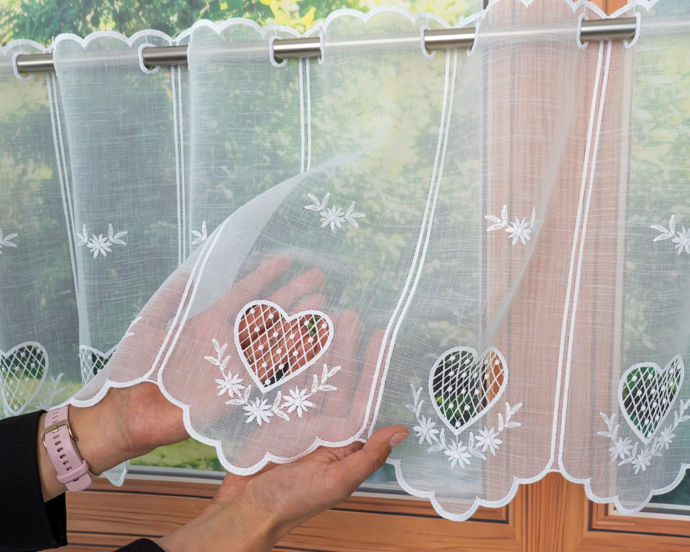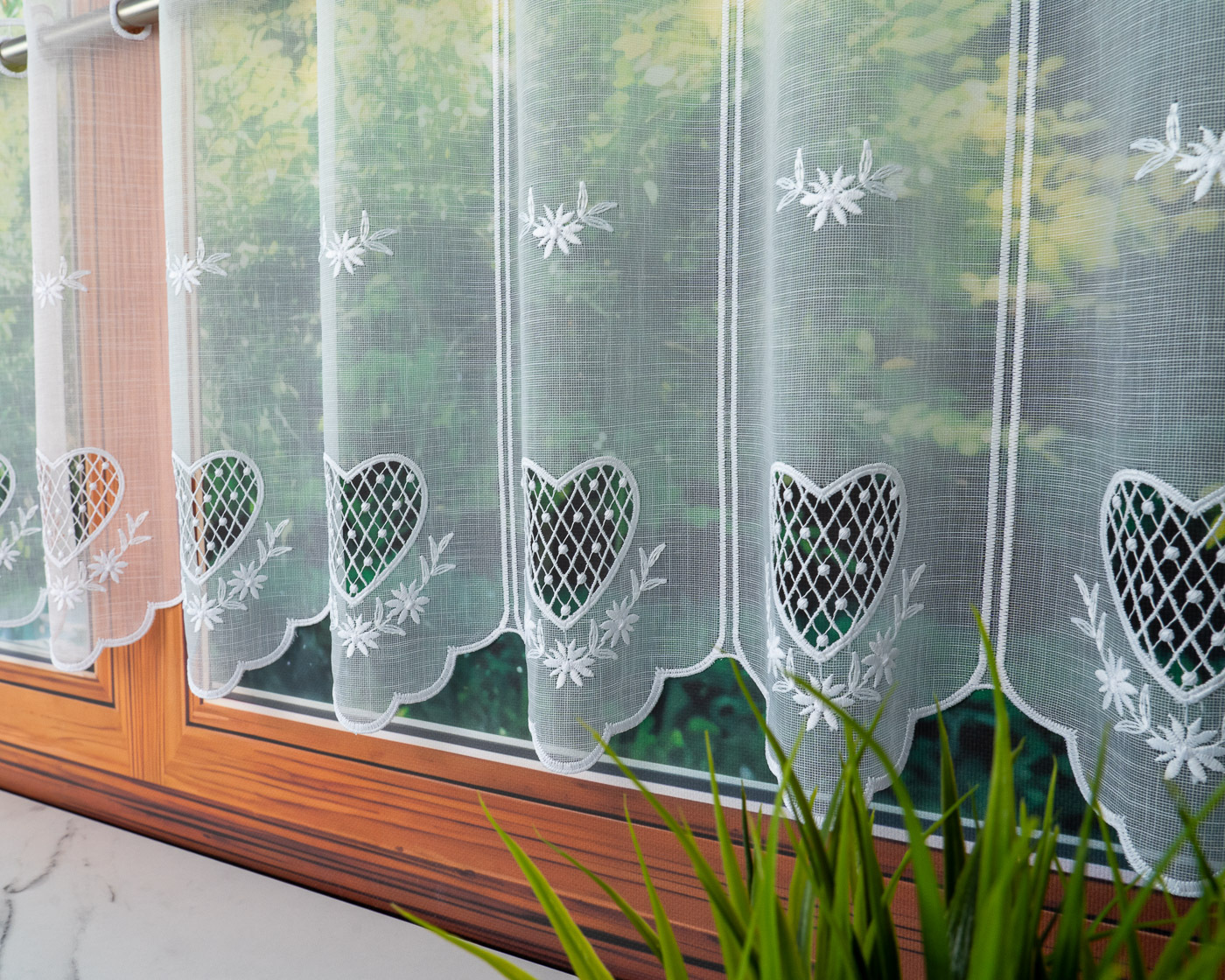 Zazdrostka kuchenna z ażurem doskonale sprawdzi się jako ozdoba okna w kuchni. Delikatna koroneczka z chwostem wprowadzi do kuchni nutę romantyzmu i przytulności, tworząc klimat.