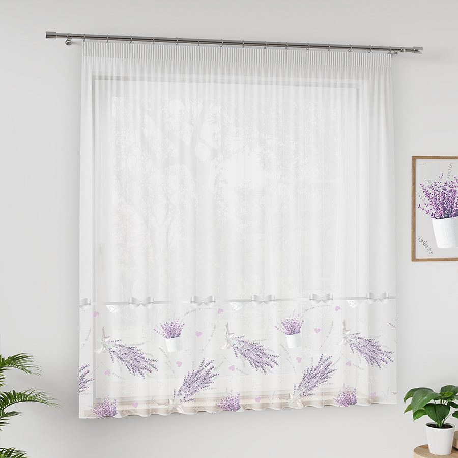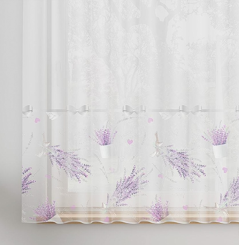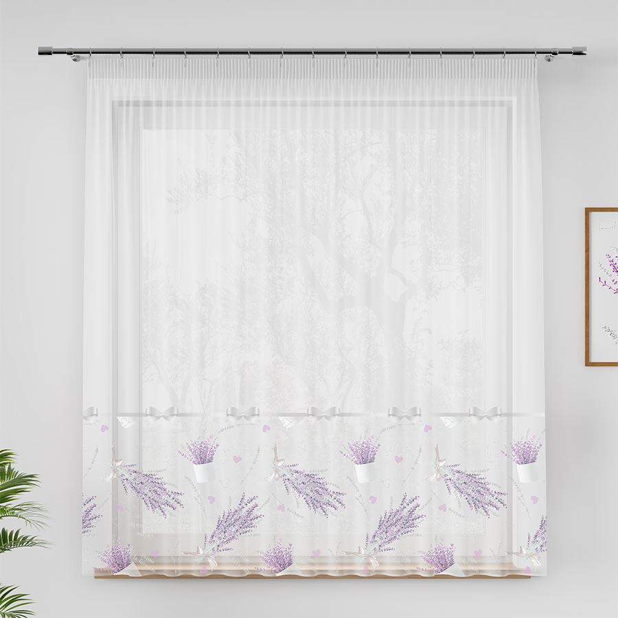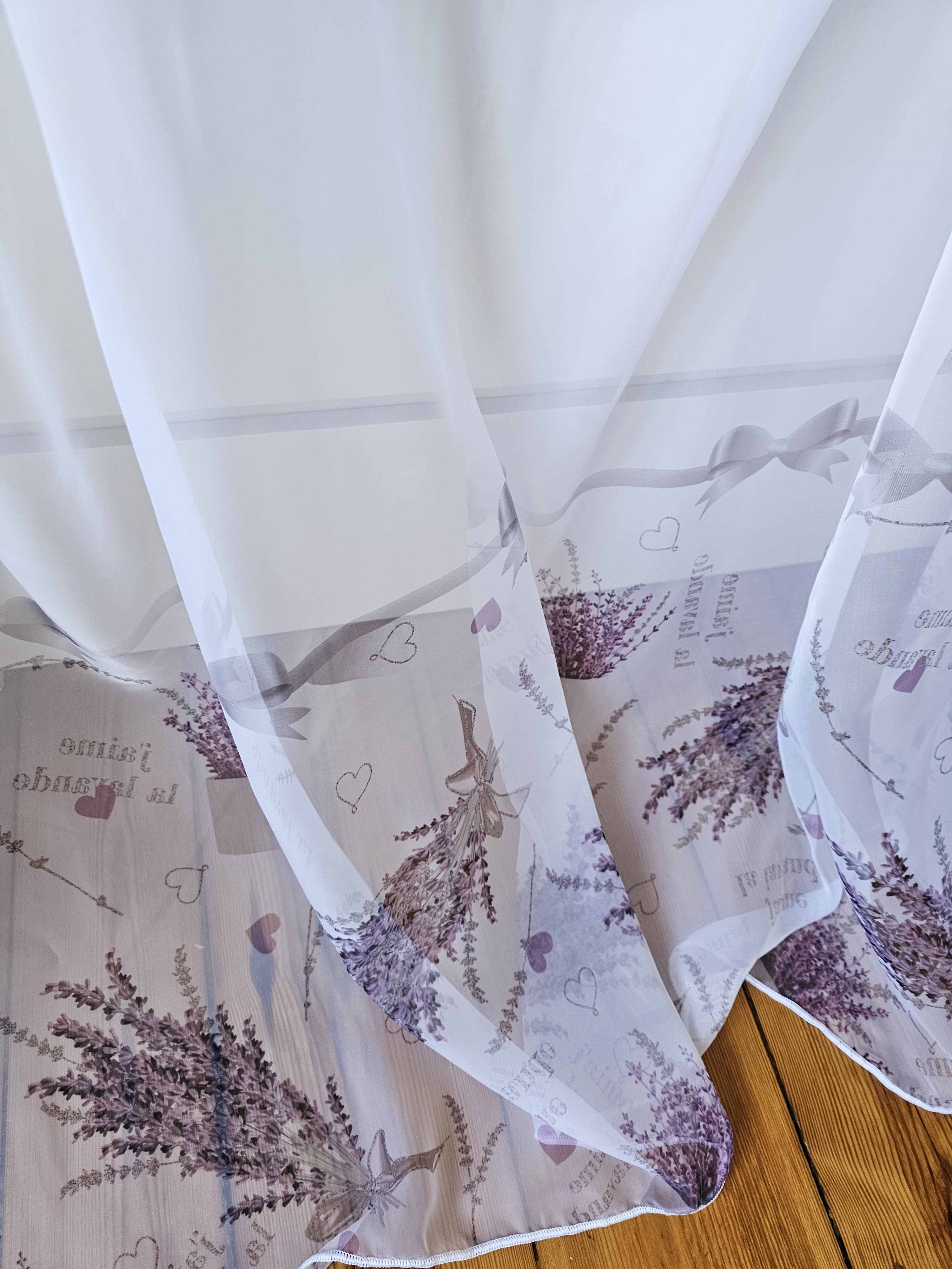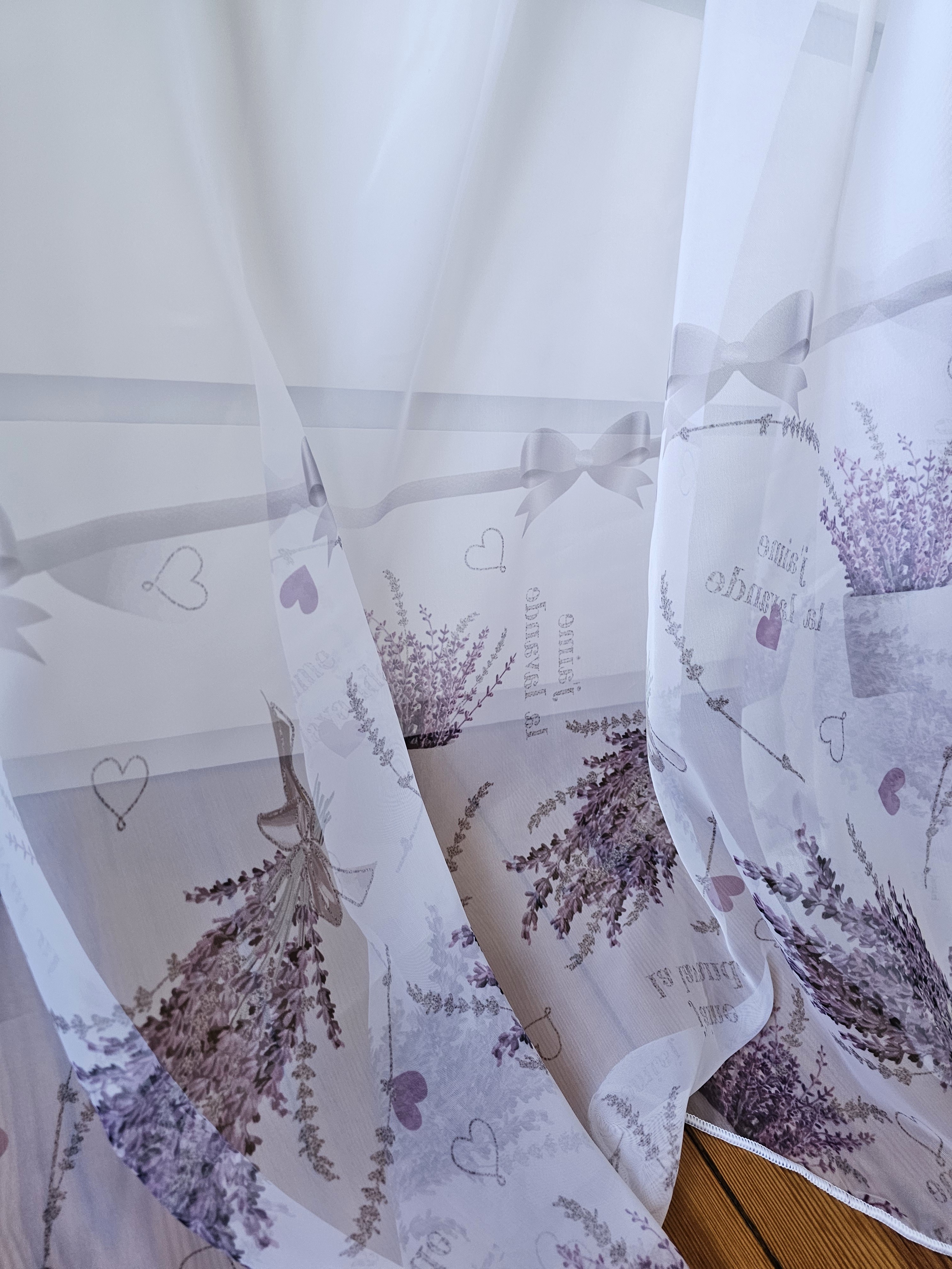 Firana przezroczysta woalowa z kwiatowym nadrukiem.