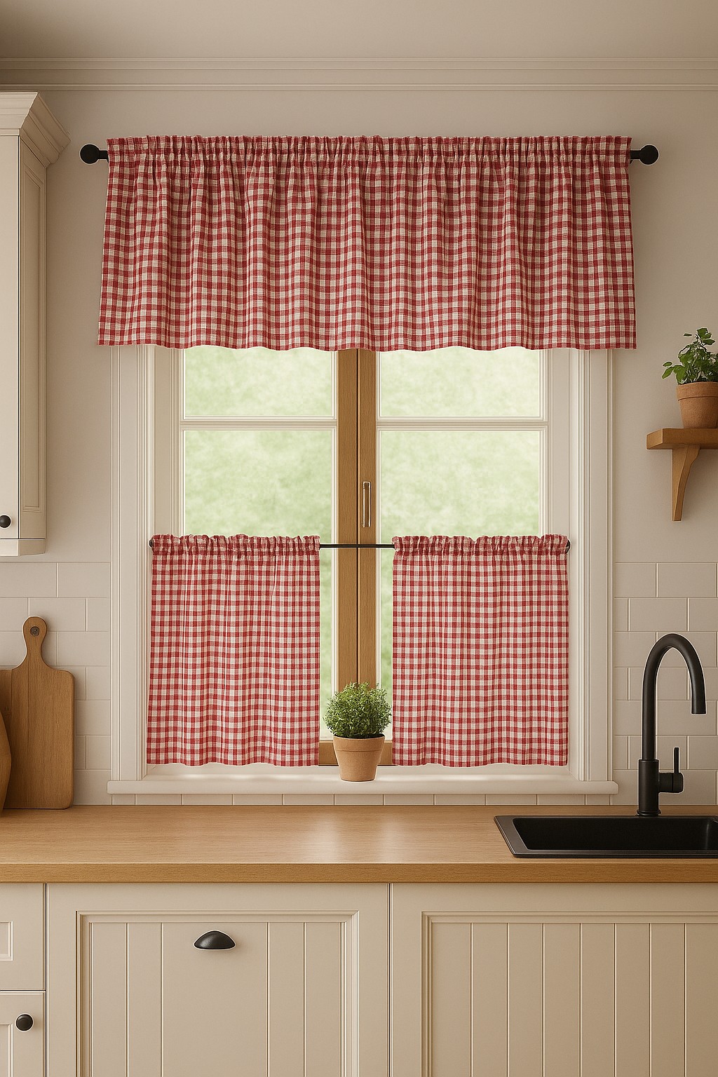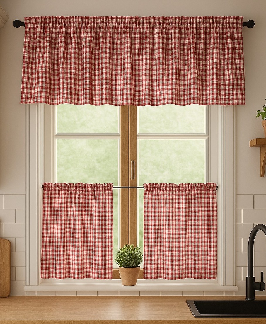 Zestaw lambrekin + zazdrostka czerwona krata vichy rustyka