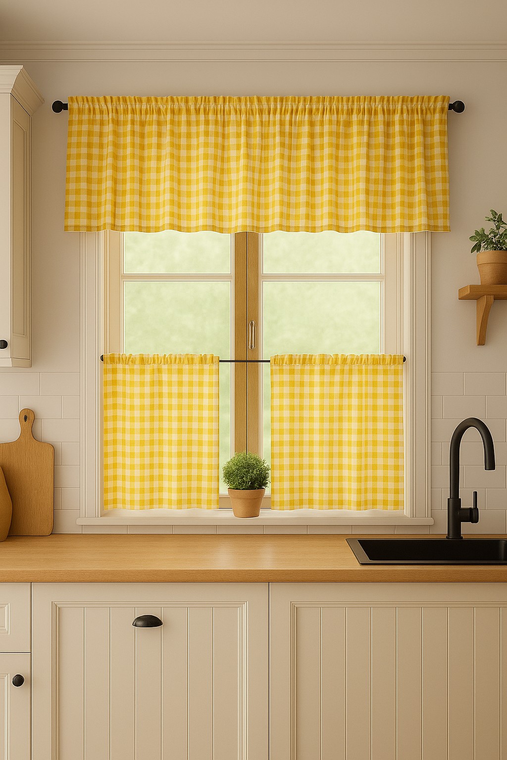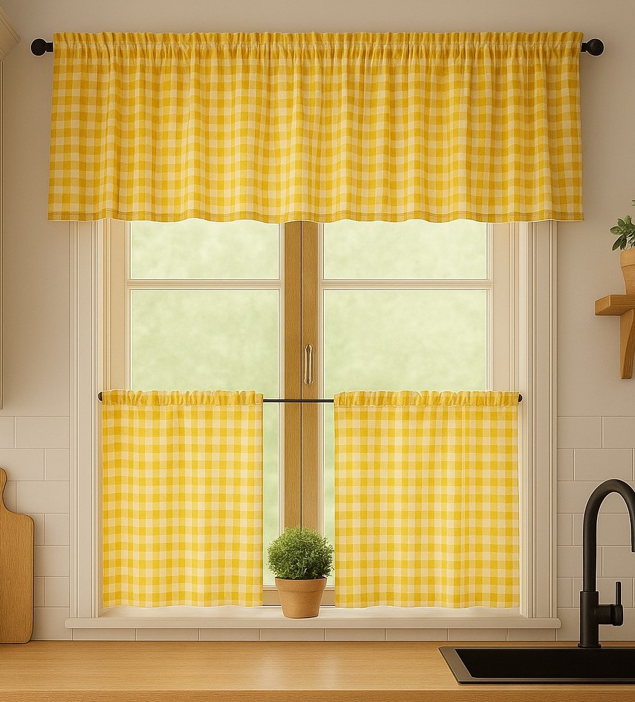 Zestaw lambrekin + zazdrostka żółta krata rustyka