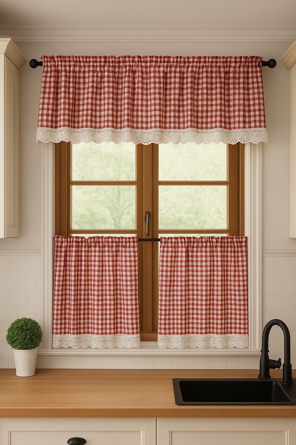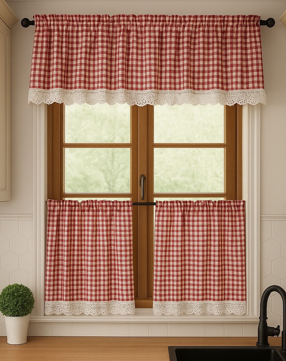 Zestaw lambrekin + zazdrostka czerwona krata rustyka koronka