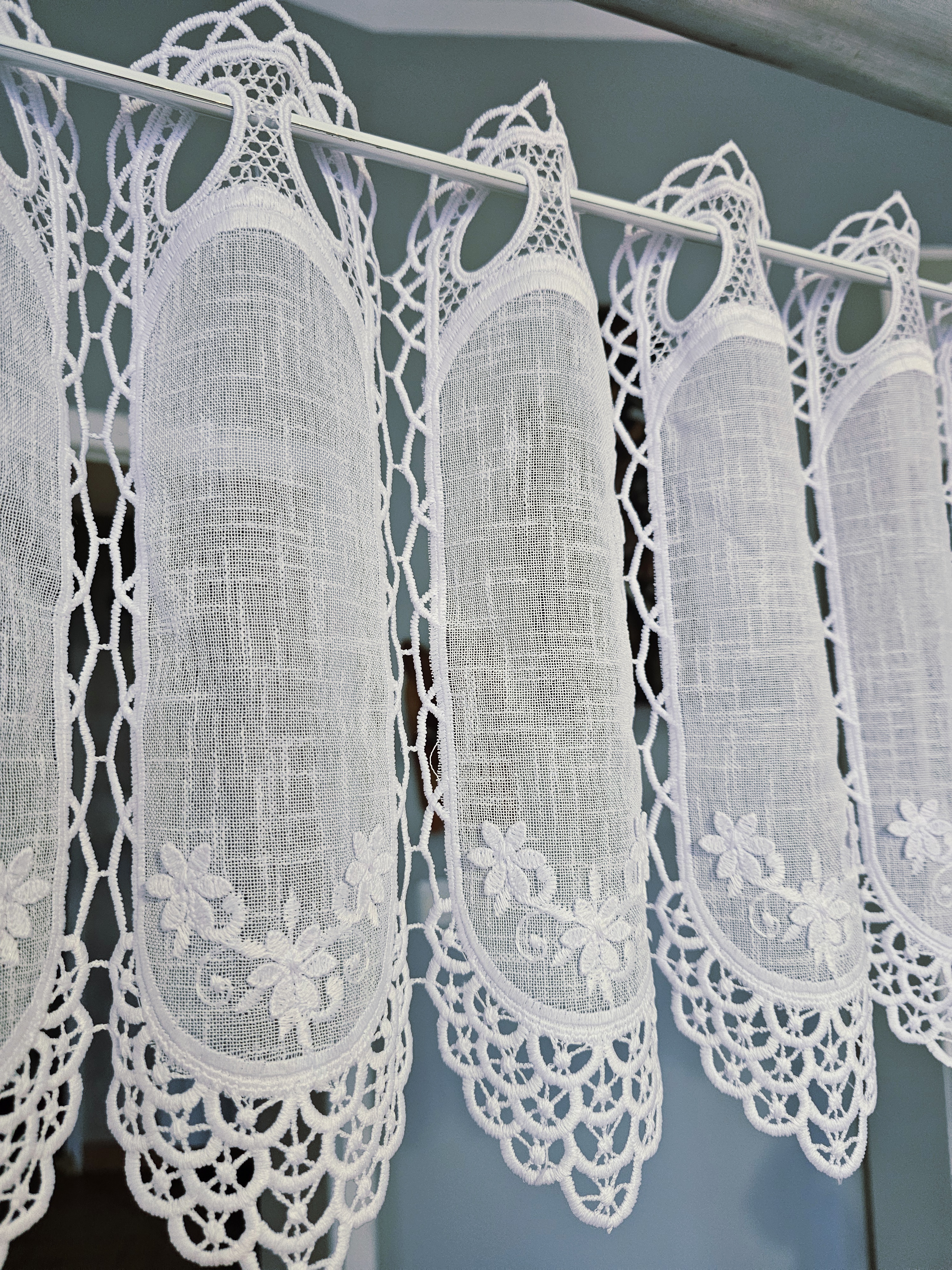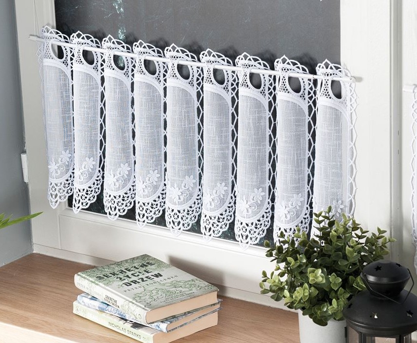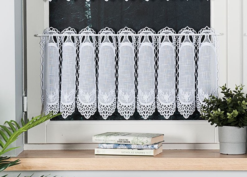 Zazdrostka kuchenna z ażurem doskonale sprawdzi się jako ozdoba okna w kuchni. Delikatna koroneczka z chwostem wprowadzi do kuchni nutę romantyzmu i przytulności, tworząc klimat.